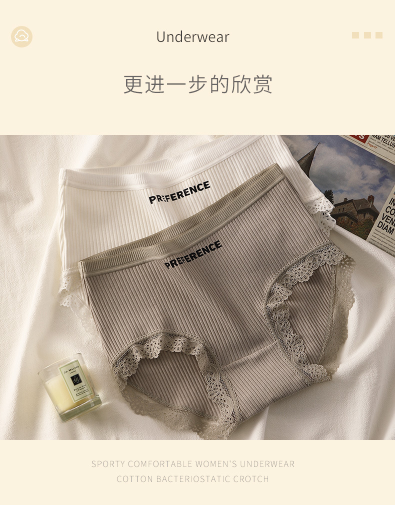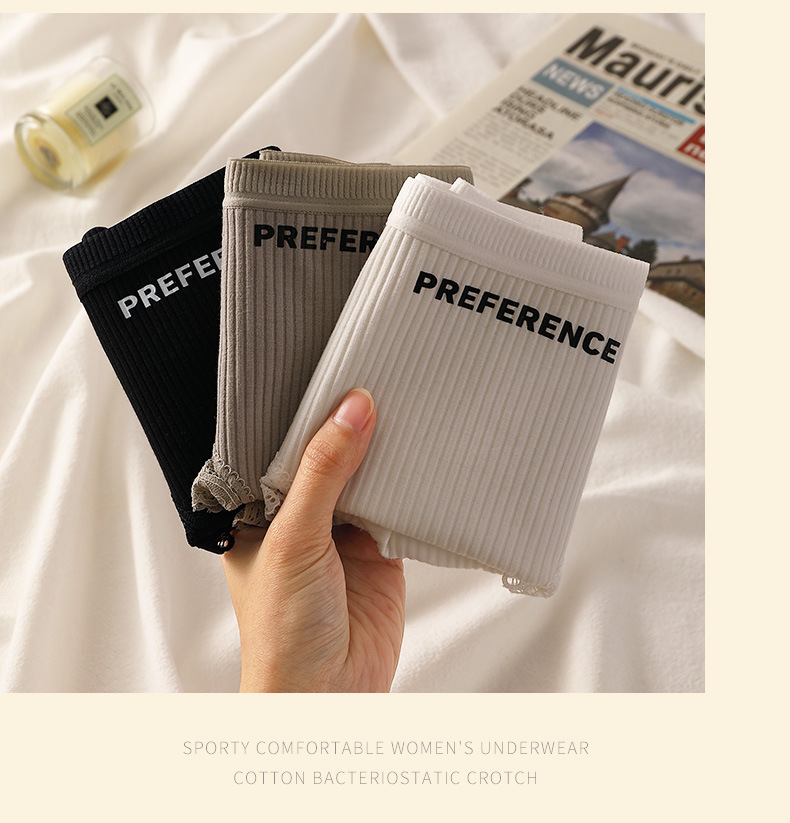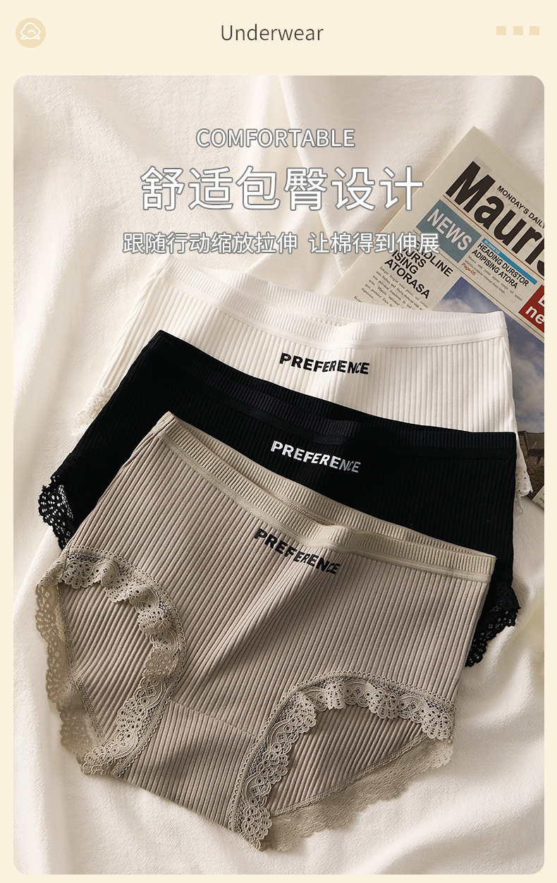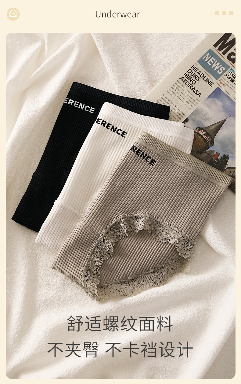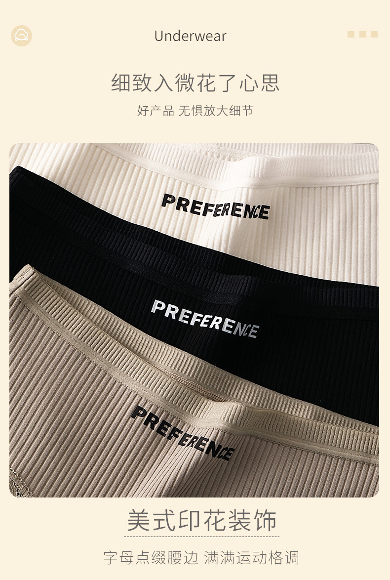 纯棉女士内裤条纹全棉裆透气少女纯色中高腰无痕短裤
