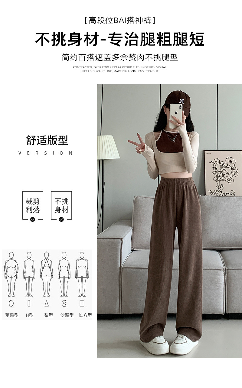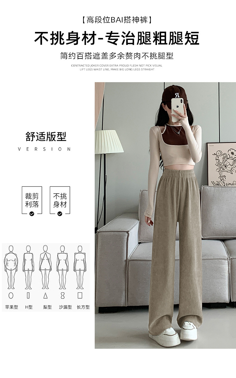 欧棉绒高克重雪尼尔阔腿裤女秋冬裤子显瘦女装垂感拖地休闲直筒裤