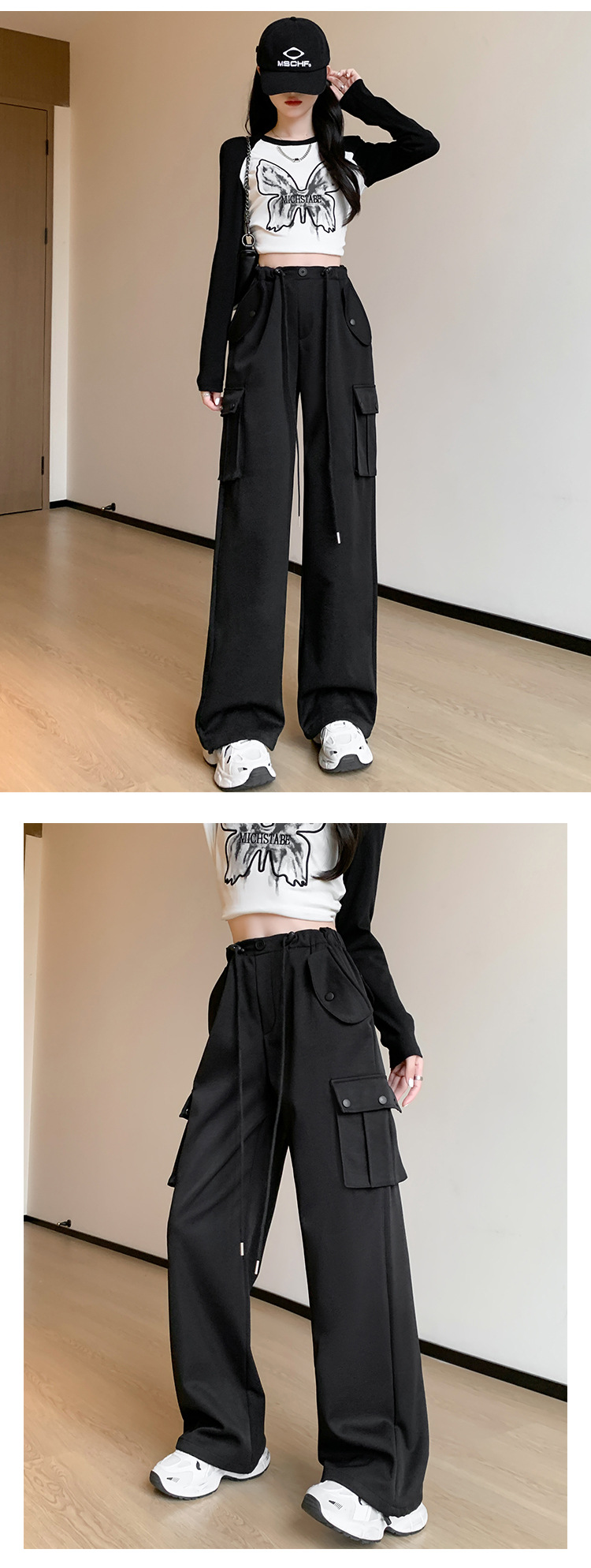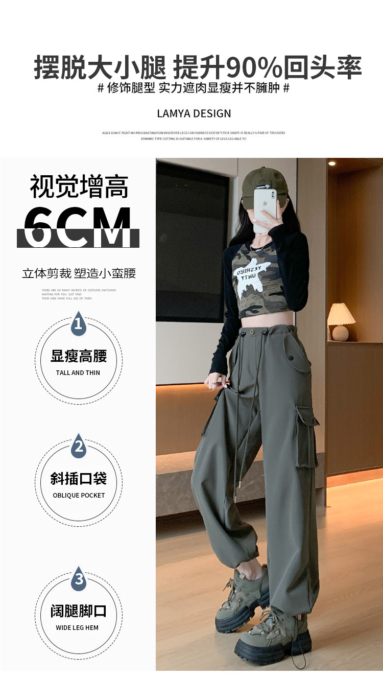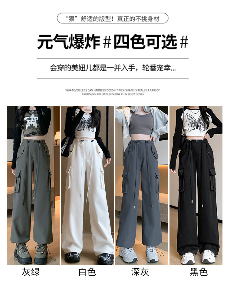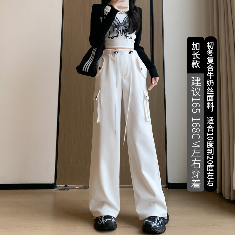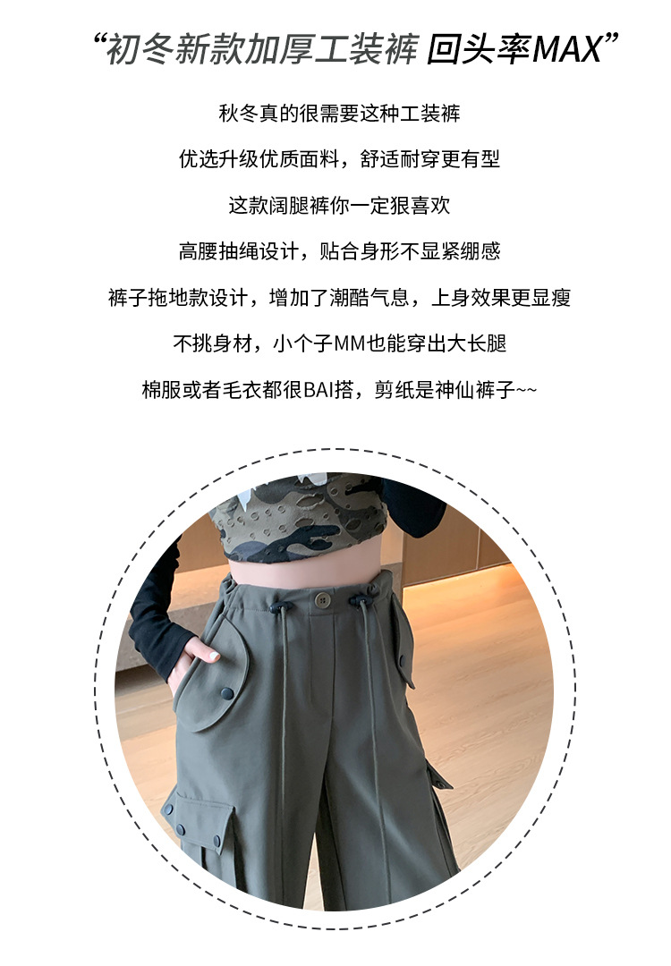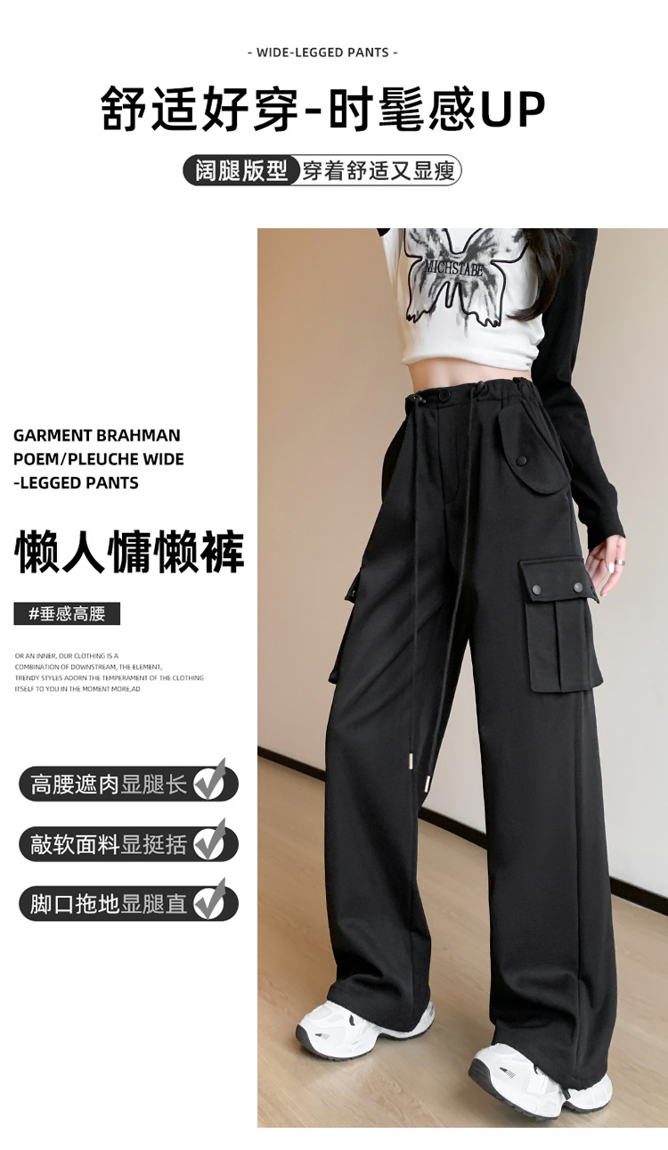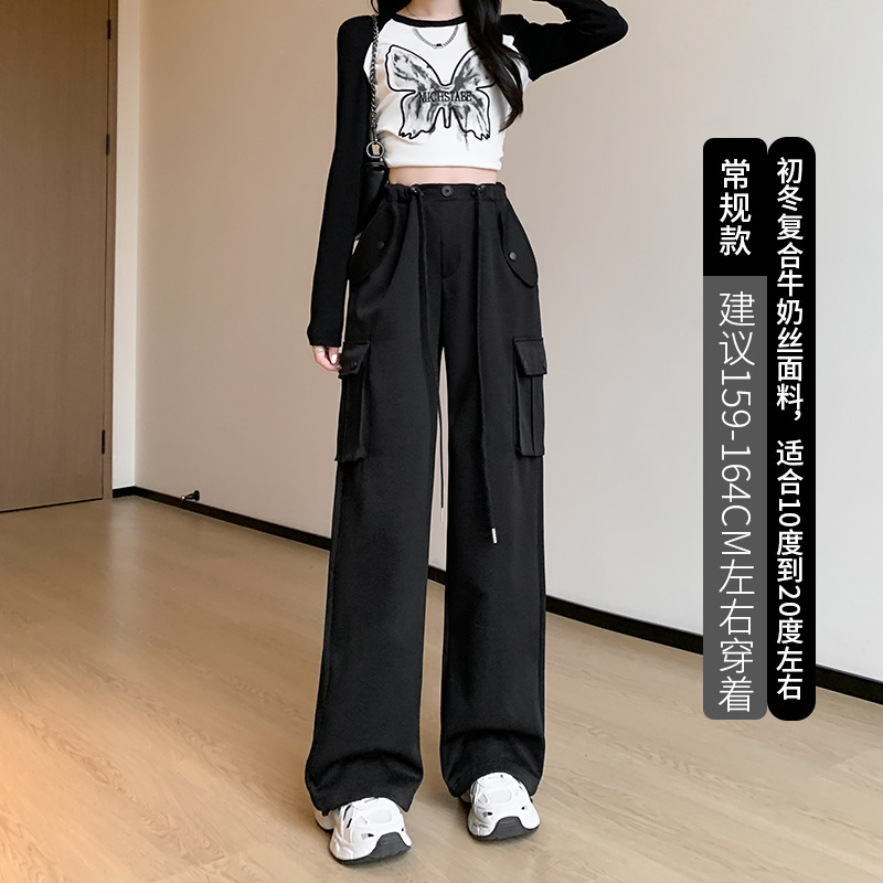 美式工装裤女裤子女款秋冬新款显瘦垂感阔腿裤卫裤直筒加厚运动裤