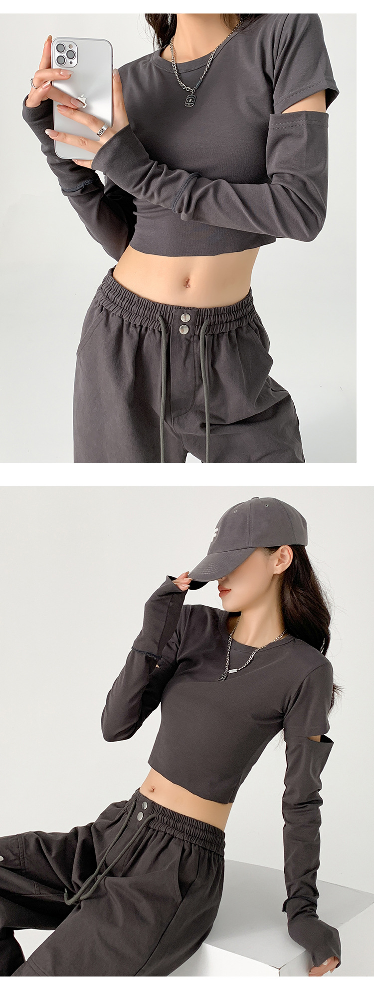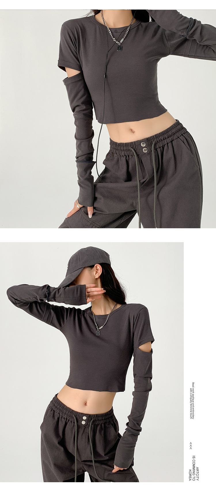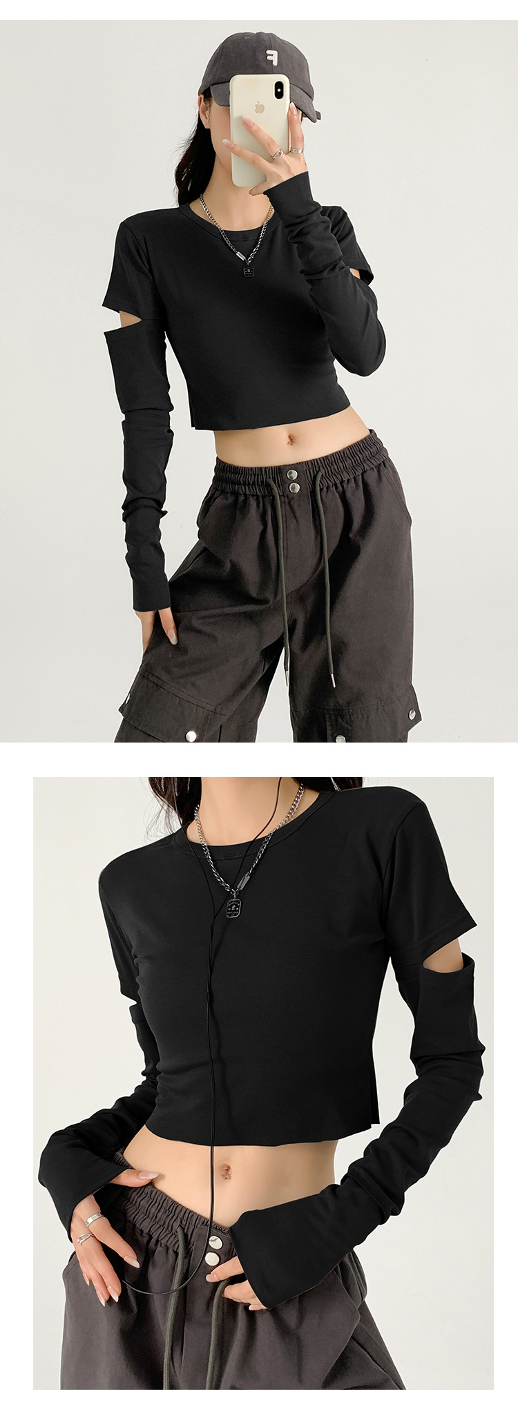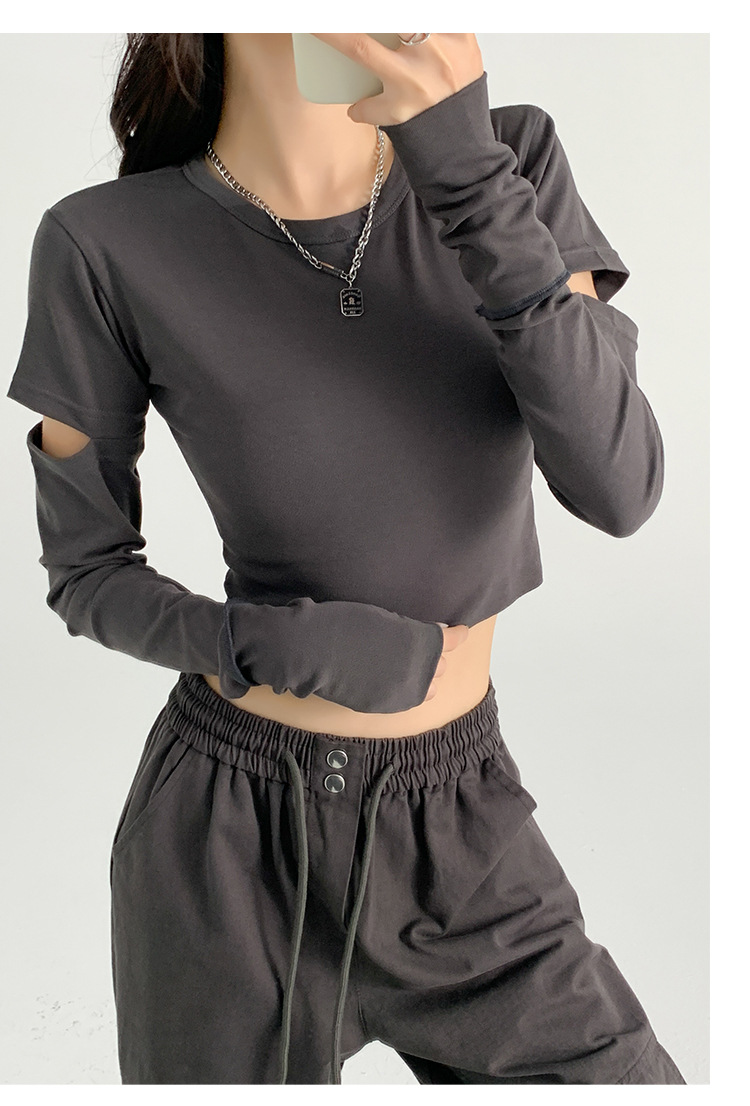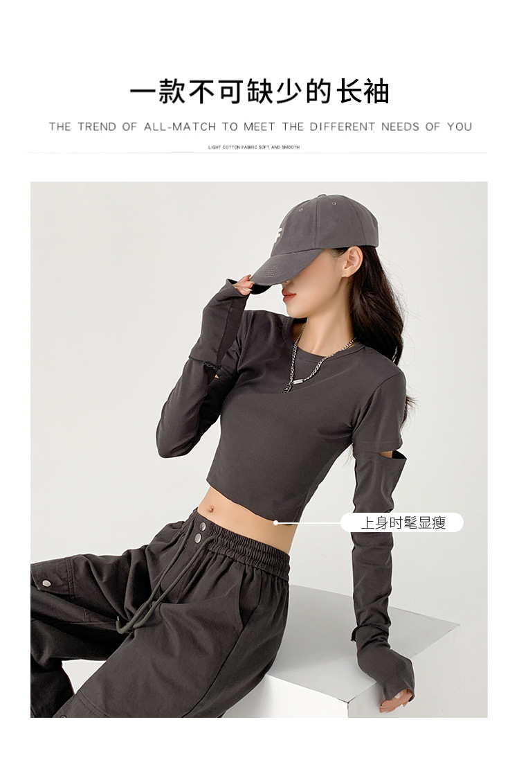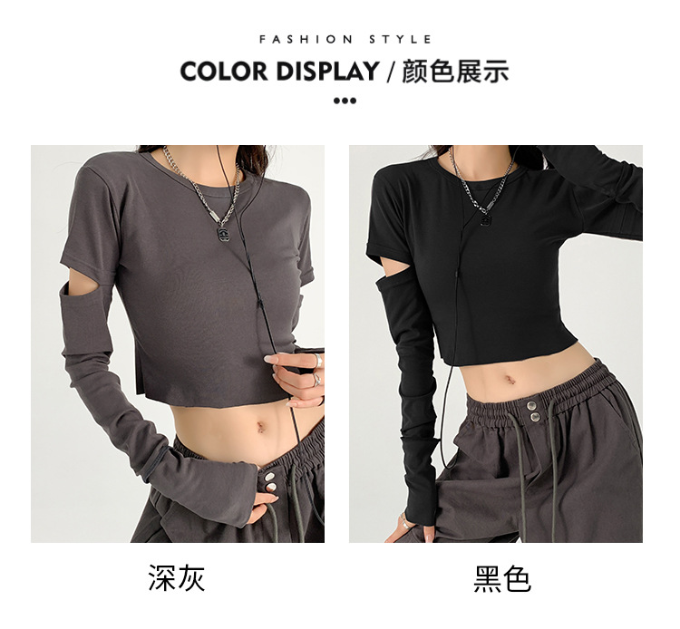 纯棉割破长袖t恤女内搭秋季新款修身辣妹打底衫外穿短款显瘦上衣
