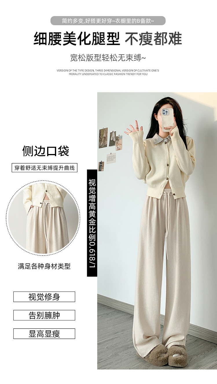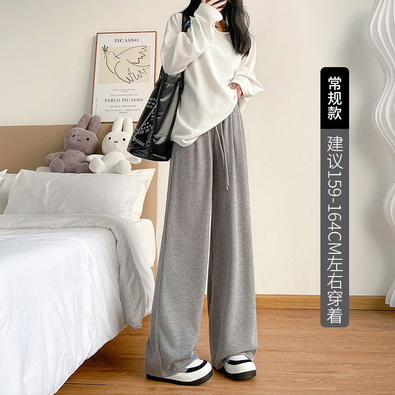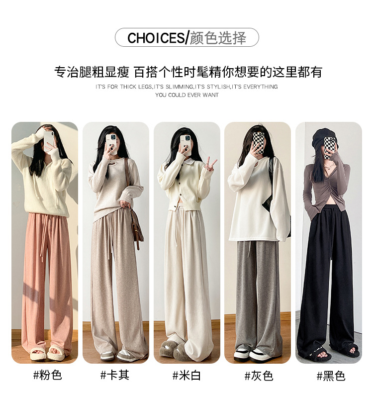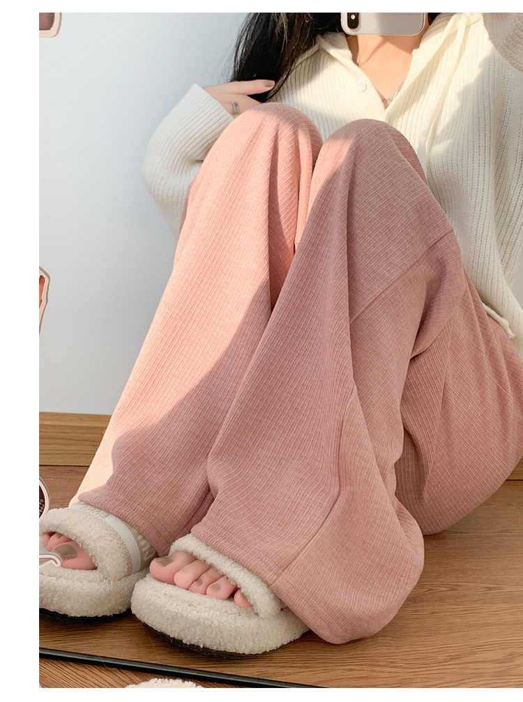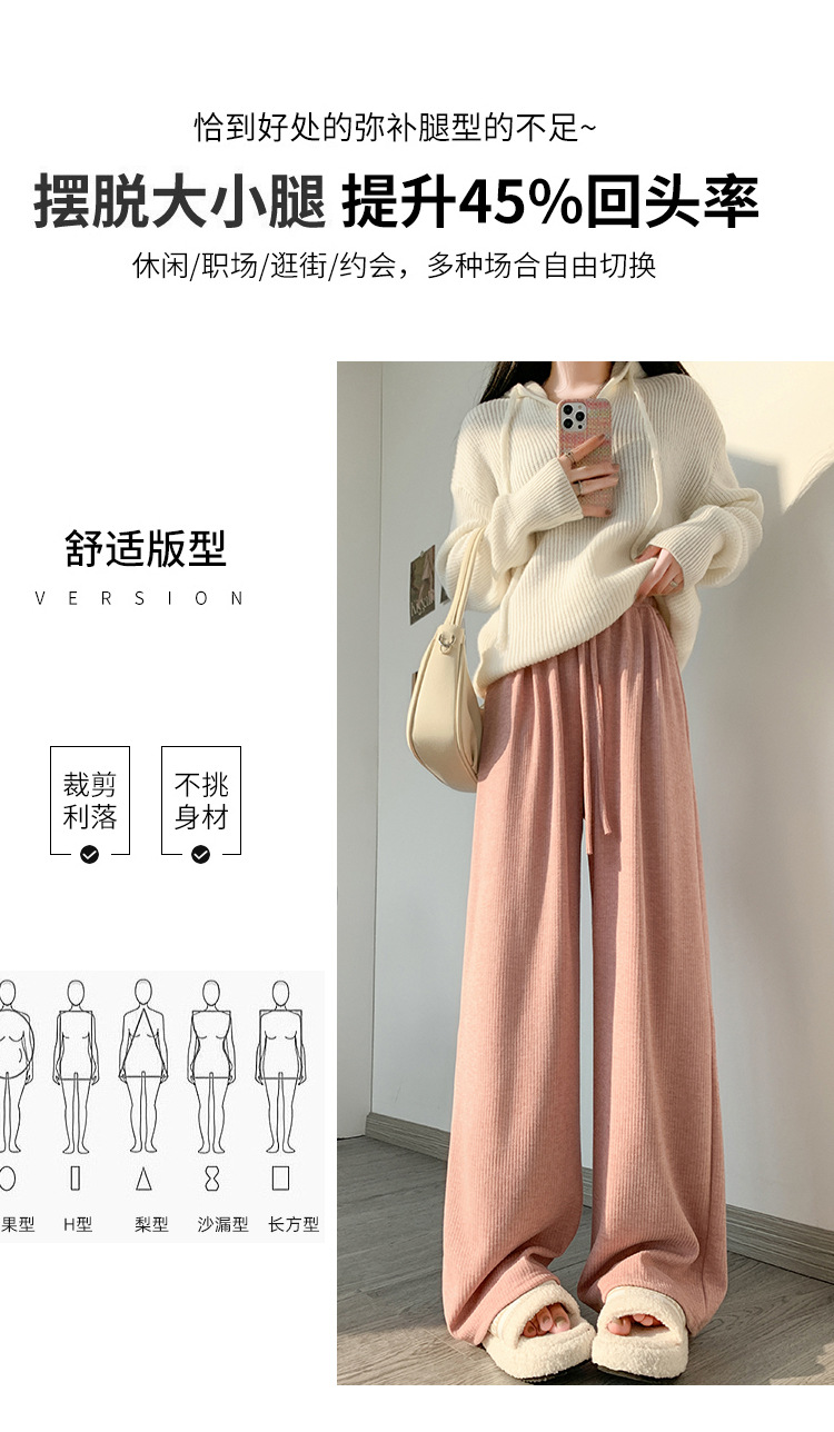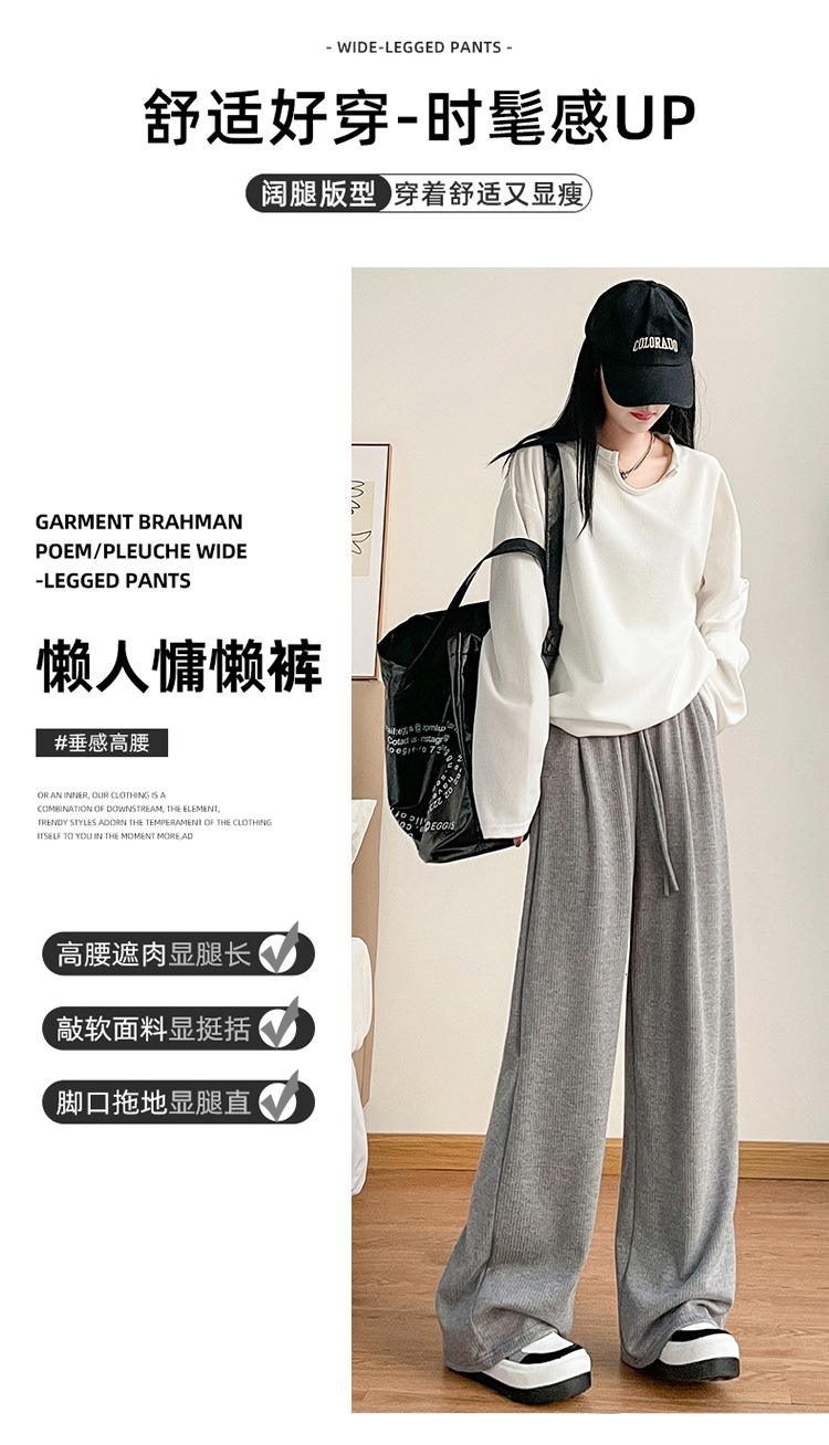 字母条兔毛绒阔腿裤女裤春秋高腰垂感直筒裤显瘦女装拖地休闲裤子