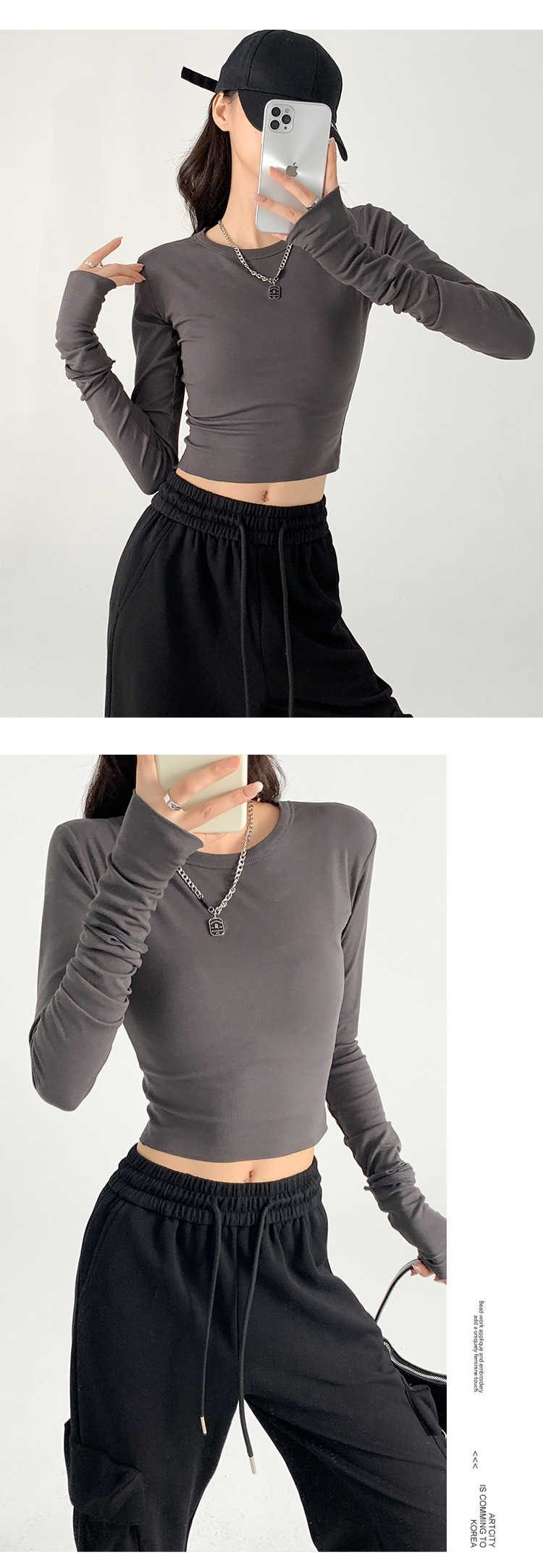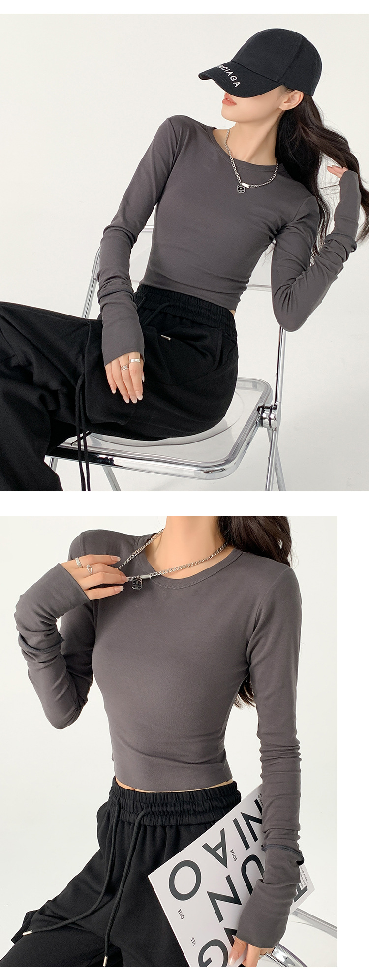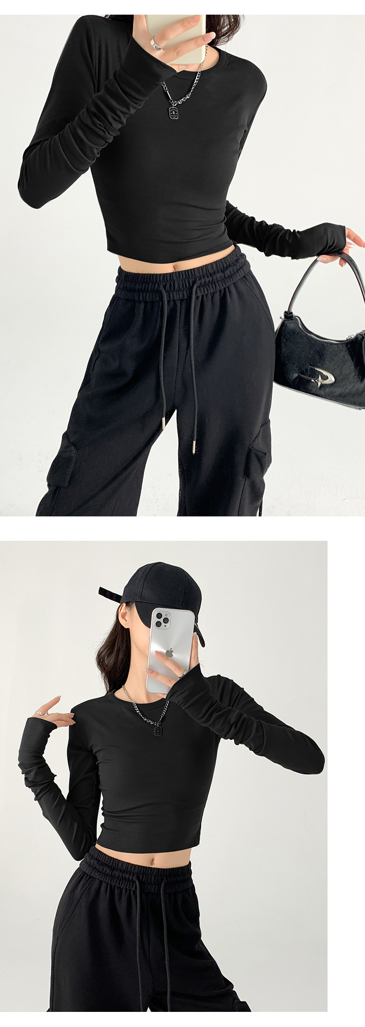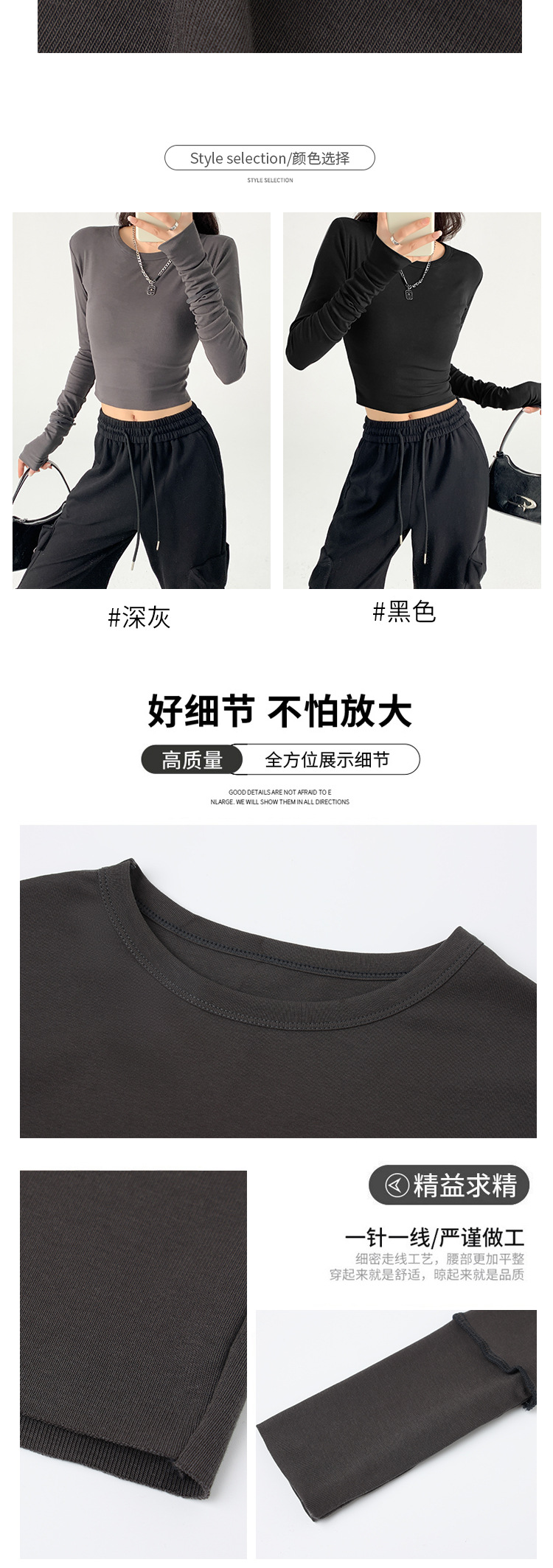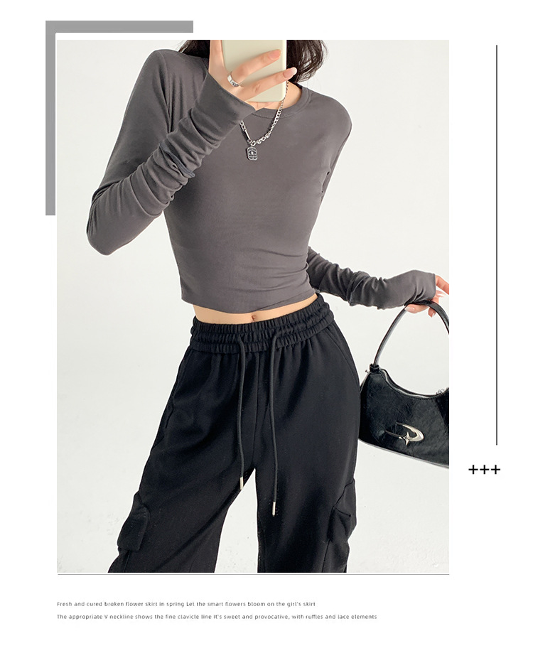 纯棉长袖上衣女内搭秋季新款欧美风修身T恤辣妹百搭纯欲风打底衫