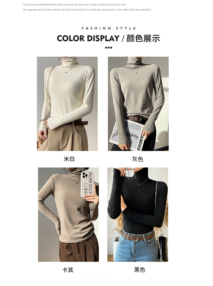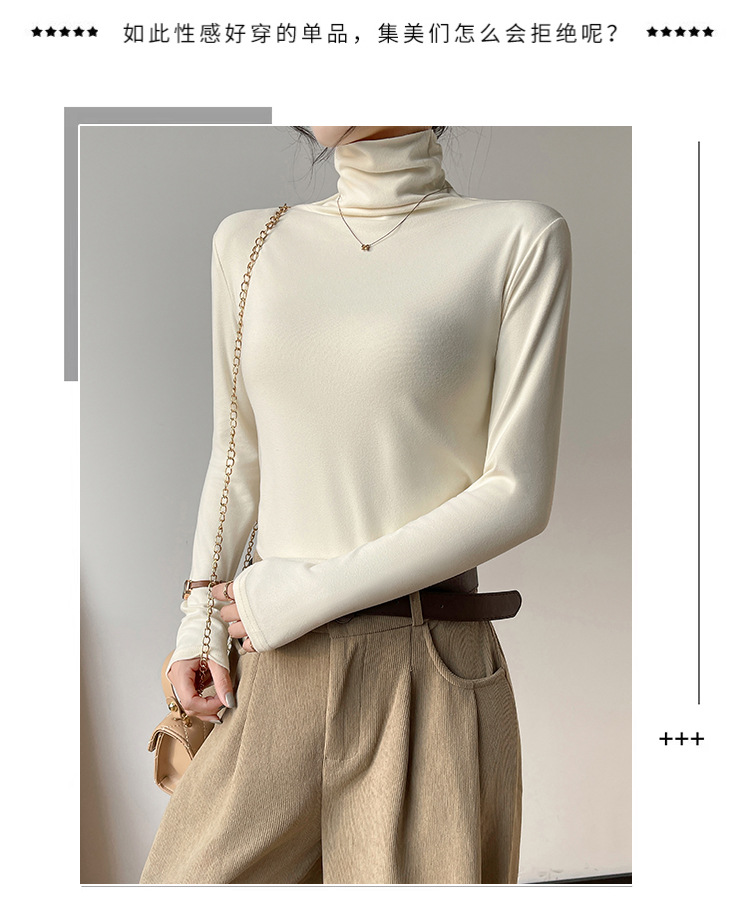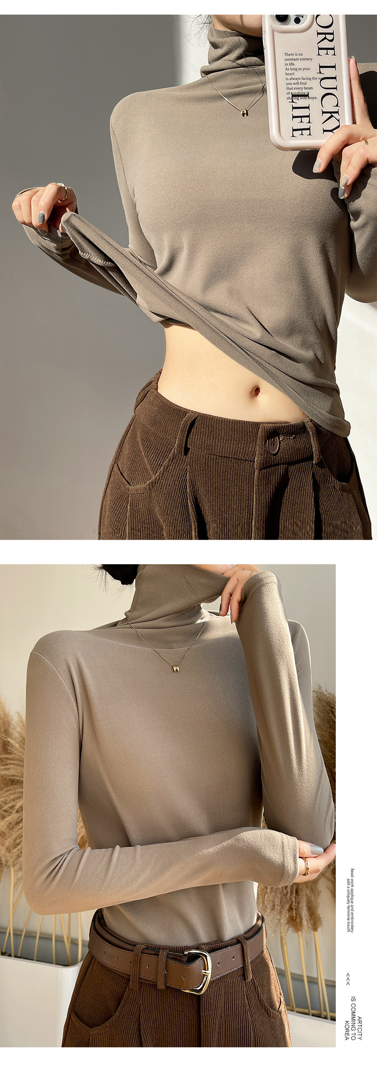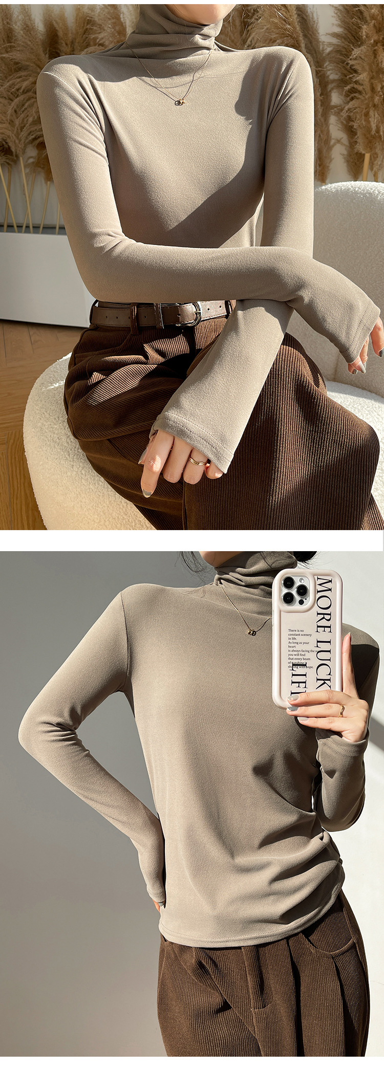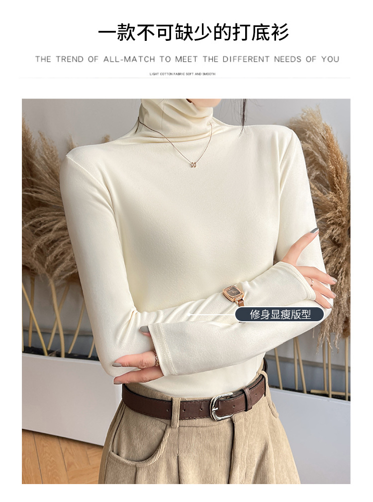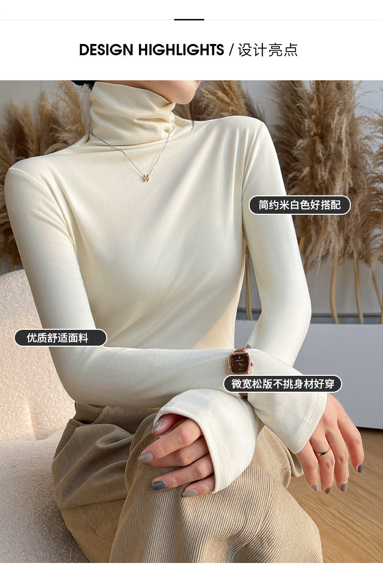 纯色高领打底衫女内搭2023秋冬新款洋气杏色长袖t恤磨毛舒适上衣