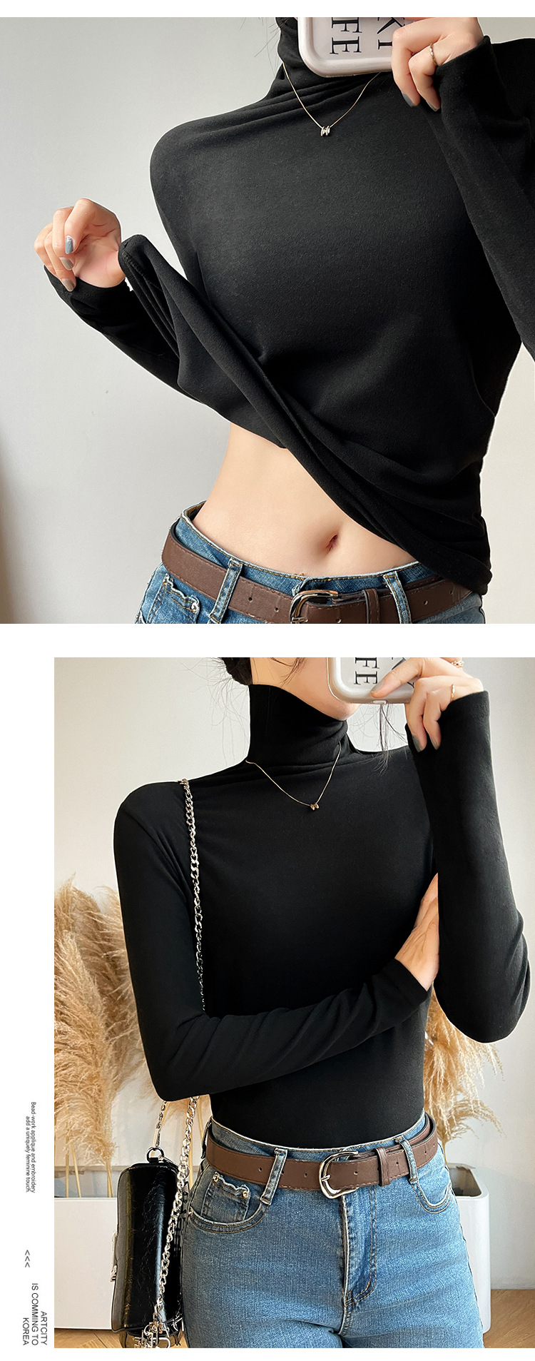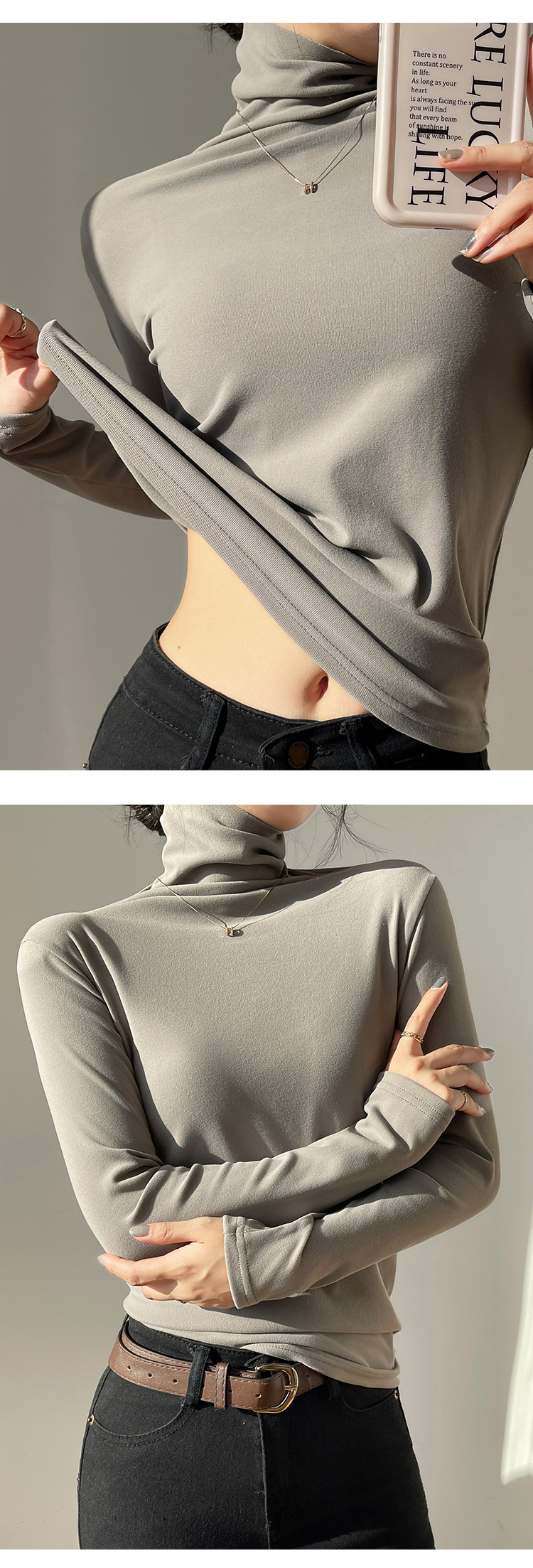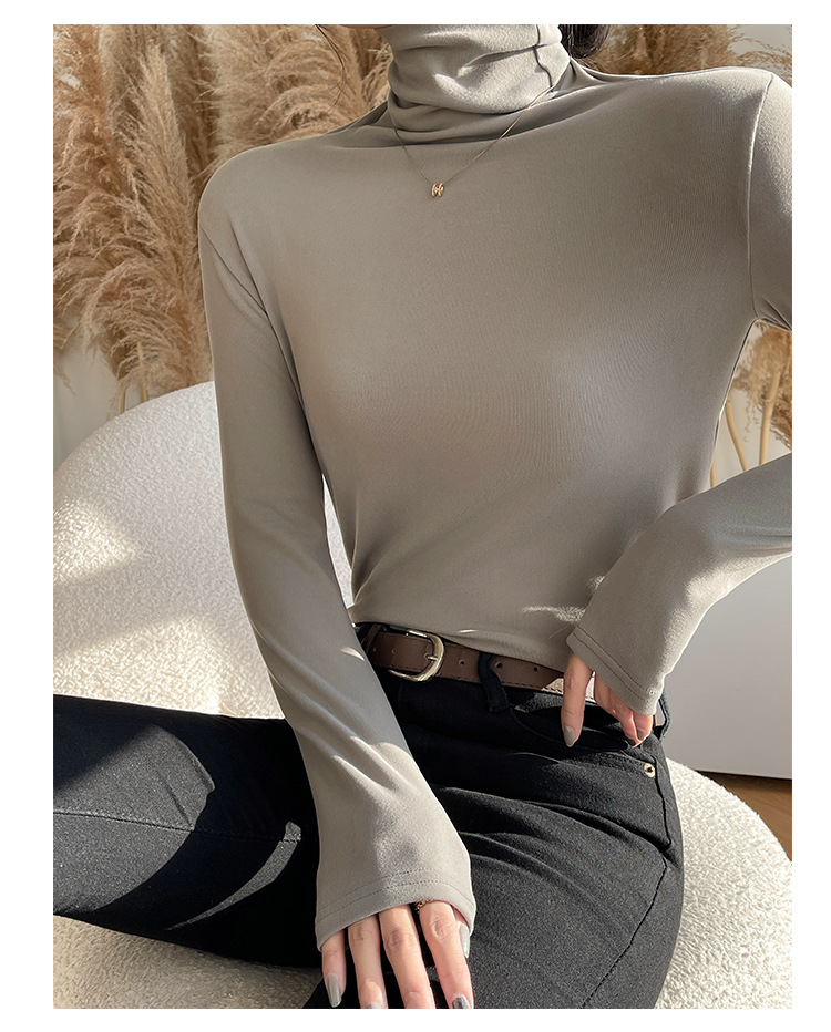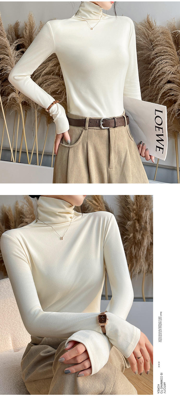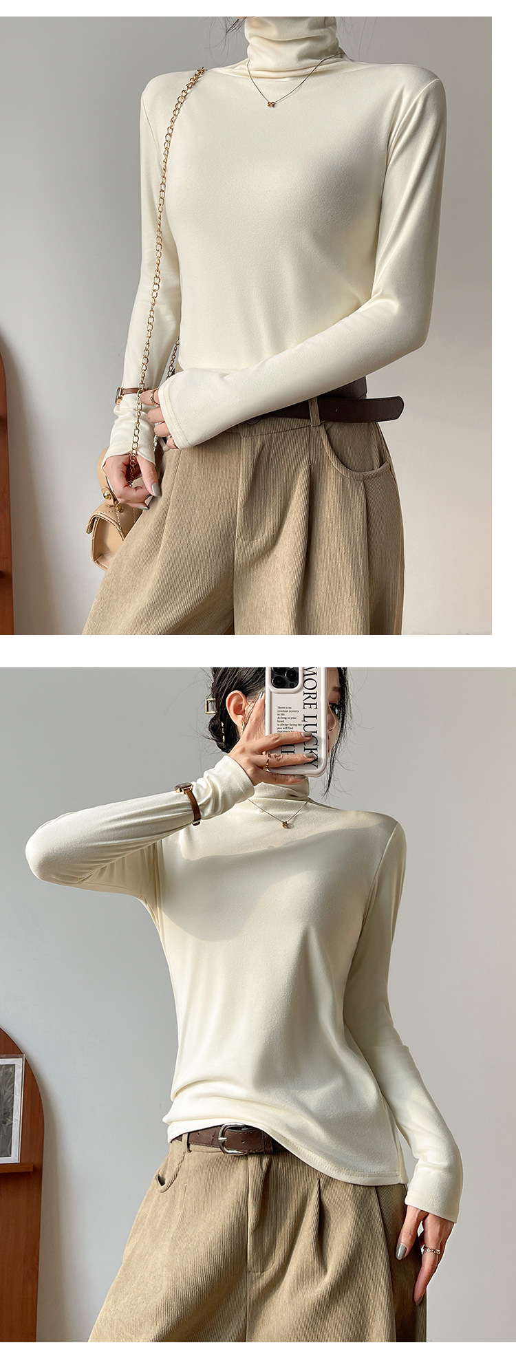 纯色高领打底衫女内搭2023秋冬新款洋气杏色长袖t恤磨毛舒适上衣