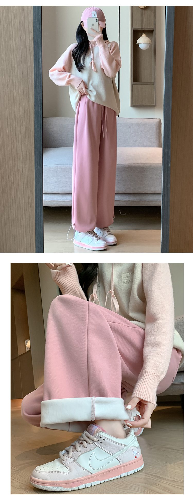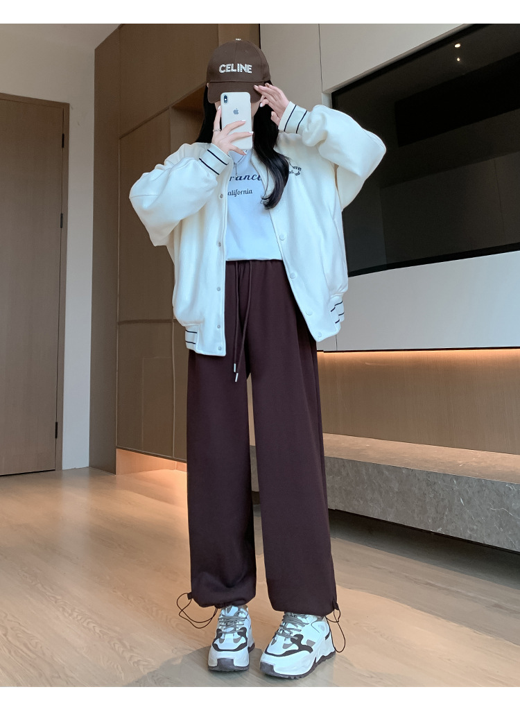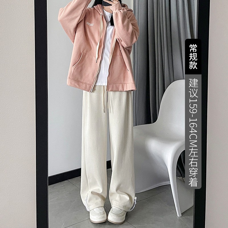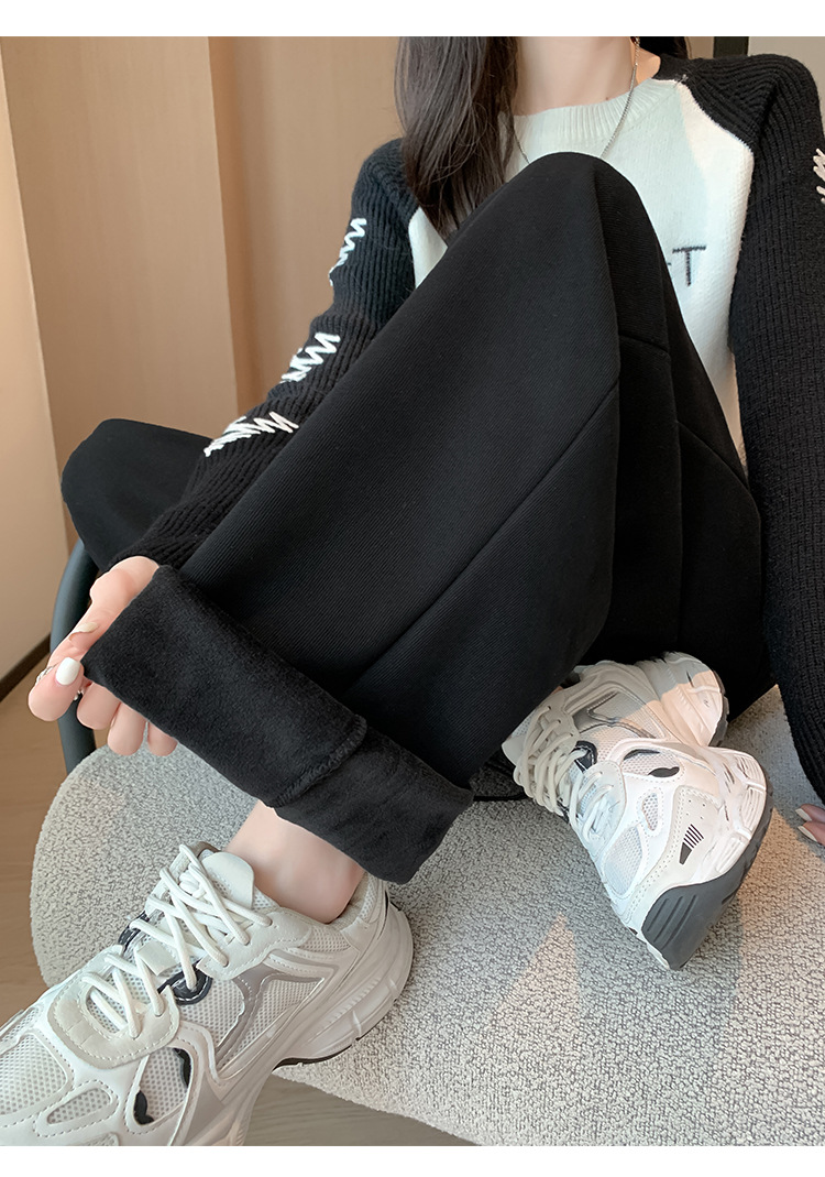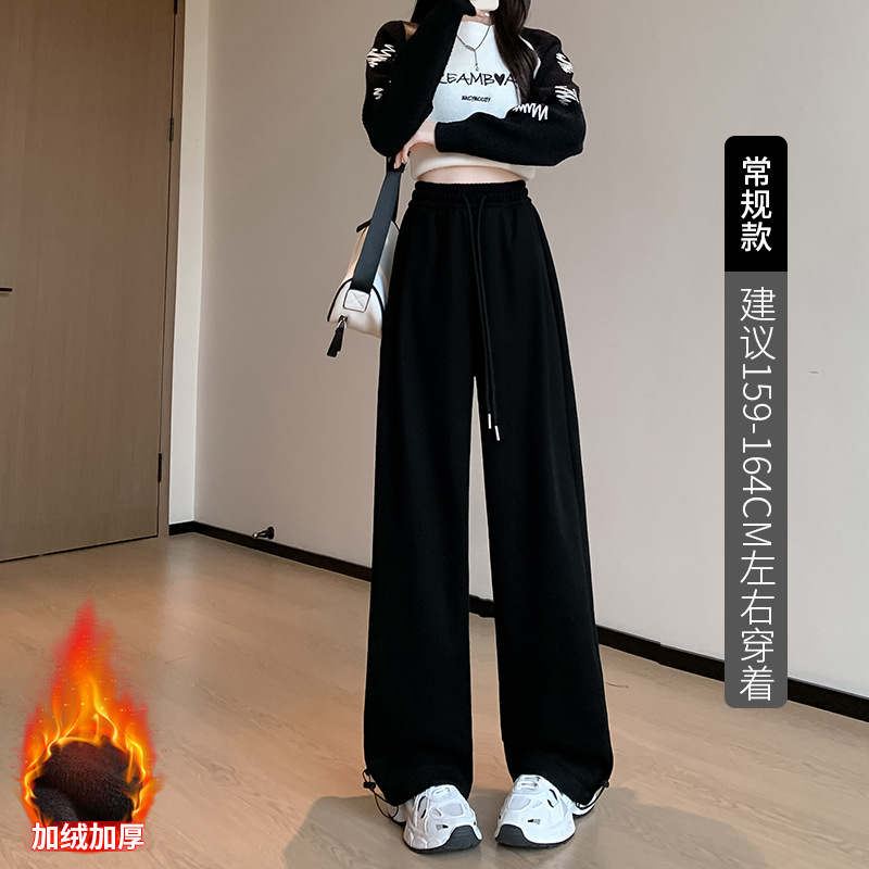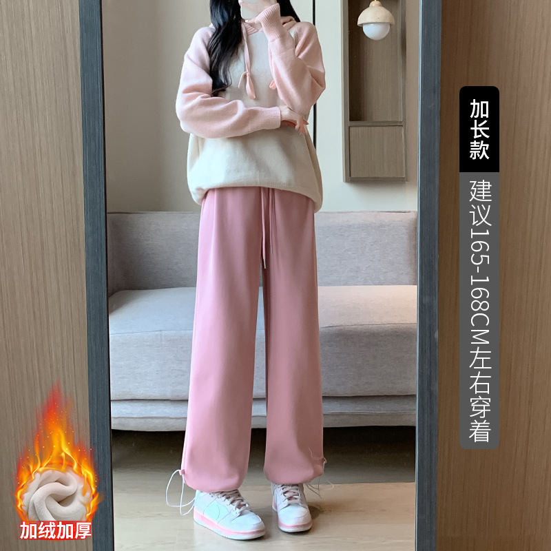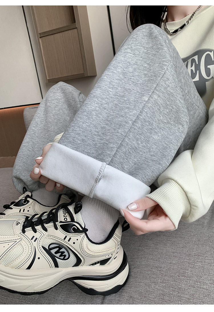 米尼运动裤女款秋冬新款加绒裤子宽松休闲束脚卫裤直筒高腰阔腿裤