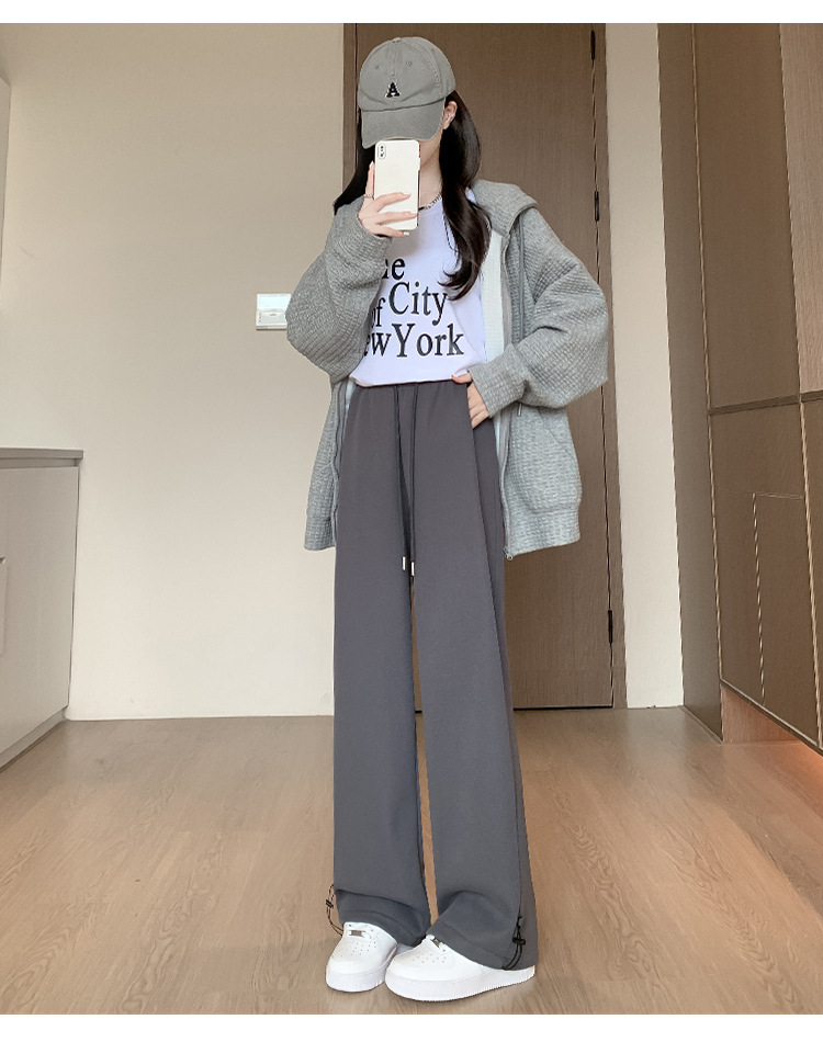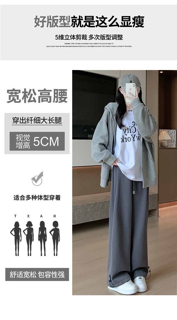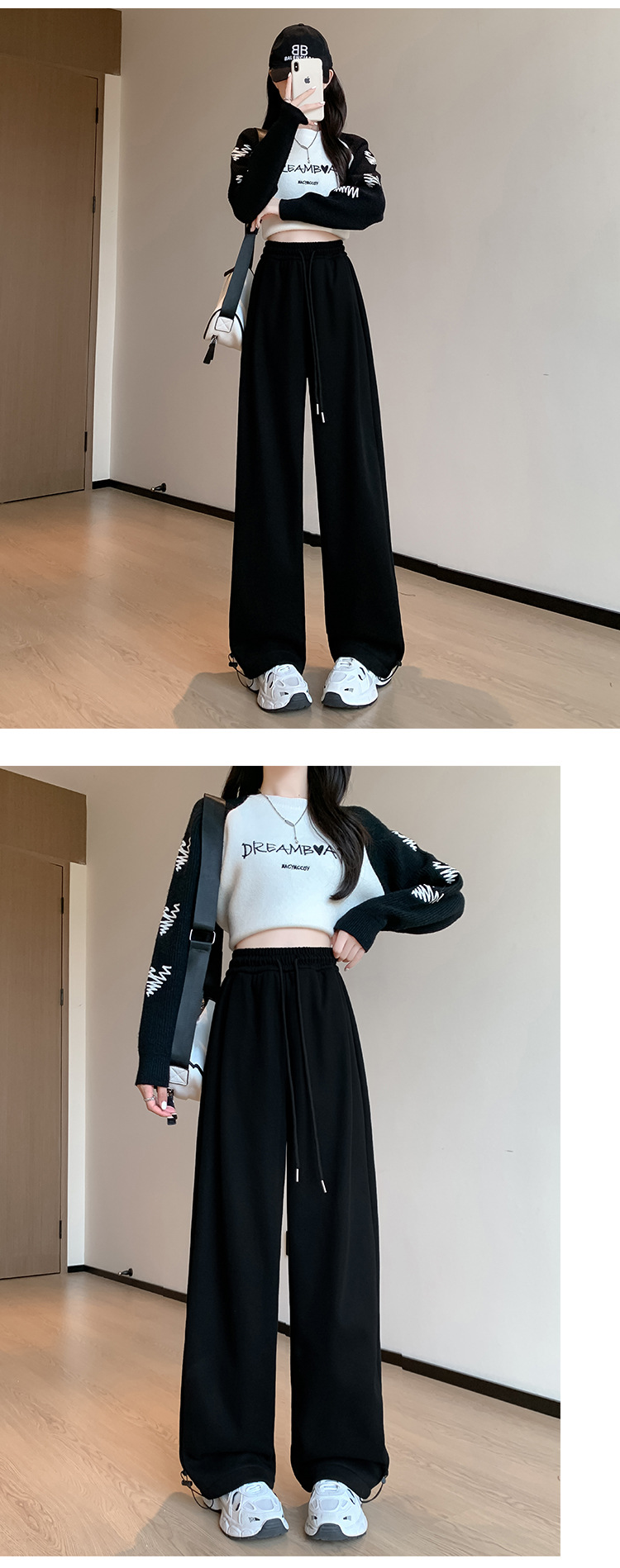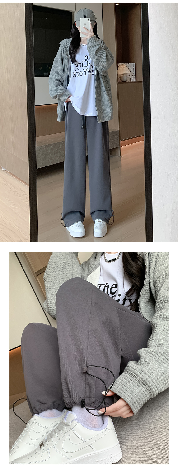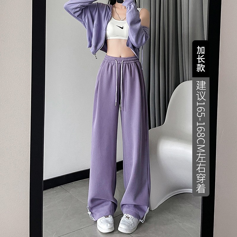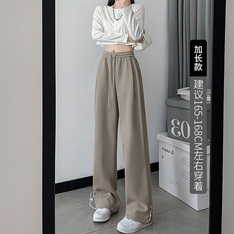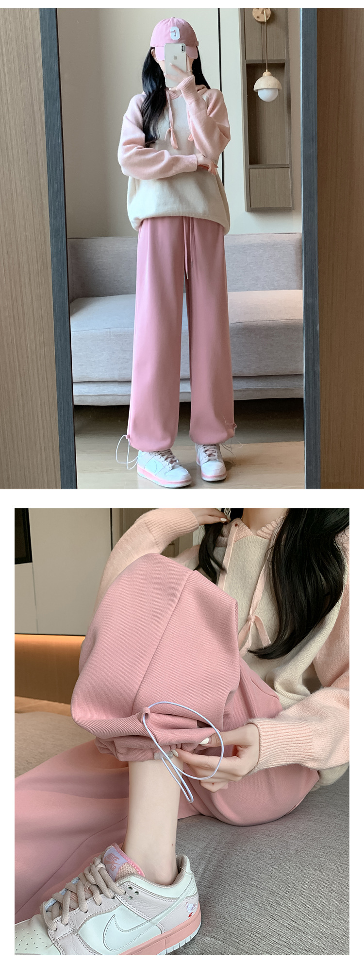 米尼运动裤女款秋冬新款加绒裤子宽松休闲束脚卫裤直筒高腰阔腿裤