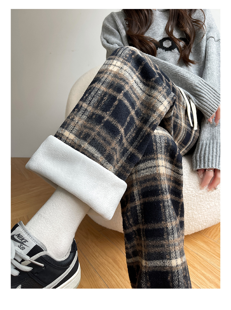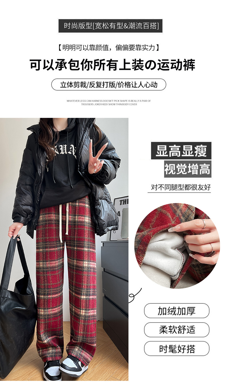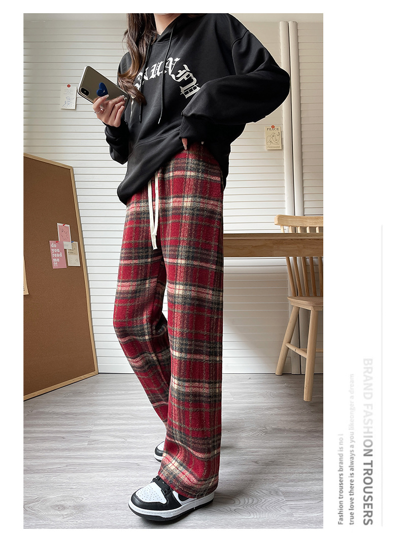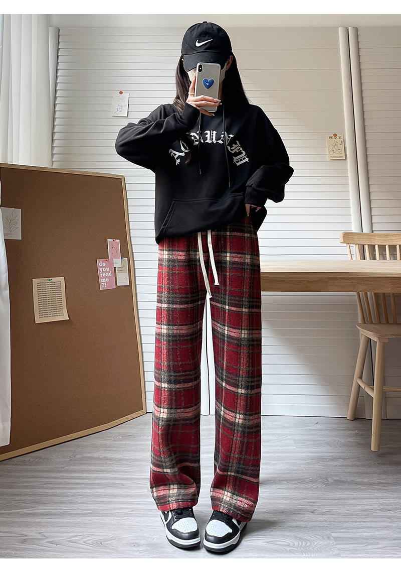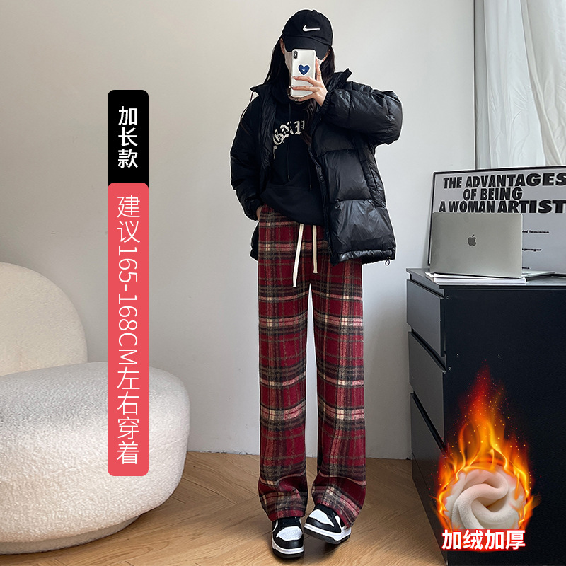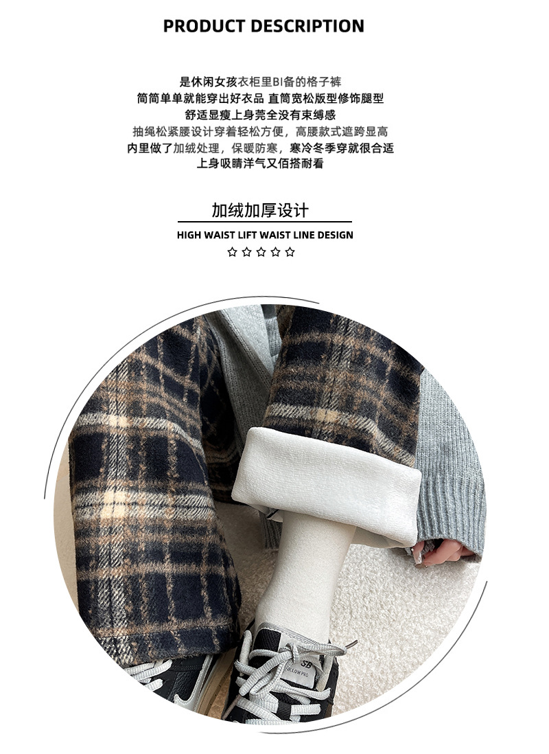 毛呢格子阔腿裤女裤子春秋新款女装复古休闲裤显瘦窄版直筒裤女裤
