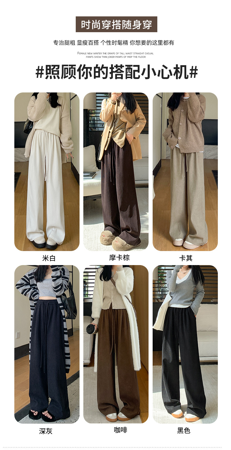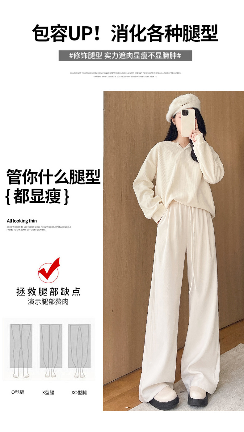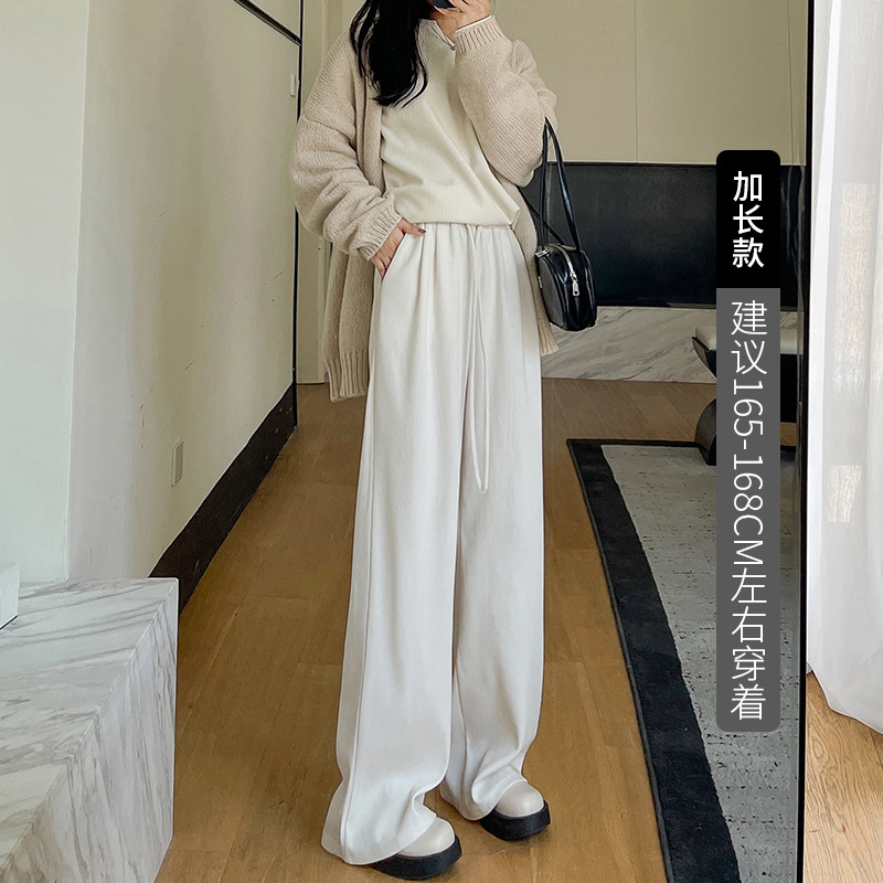 白色针织阔腿裤女裤子春秋新款宽松直筒显瘦休闲裤女装垂感拖地裤
