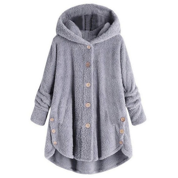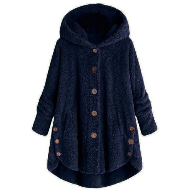 亚马逊ebay2023冬新时尚女装欧美纽扣毛绒上衣不规则潮牌纯色外套