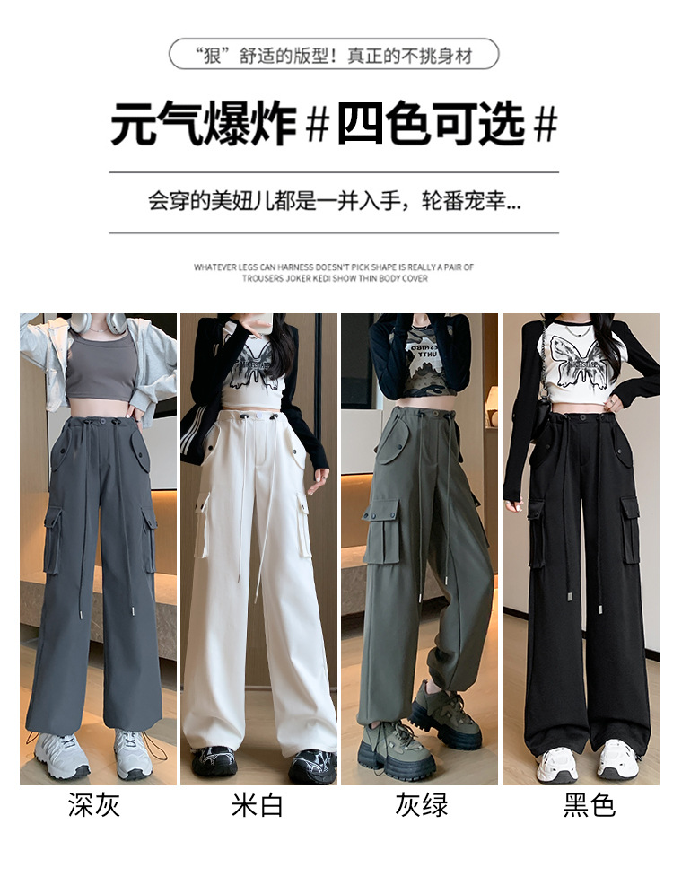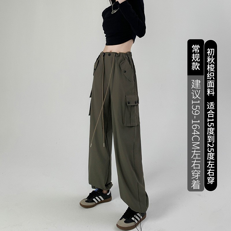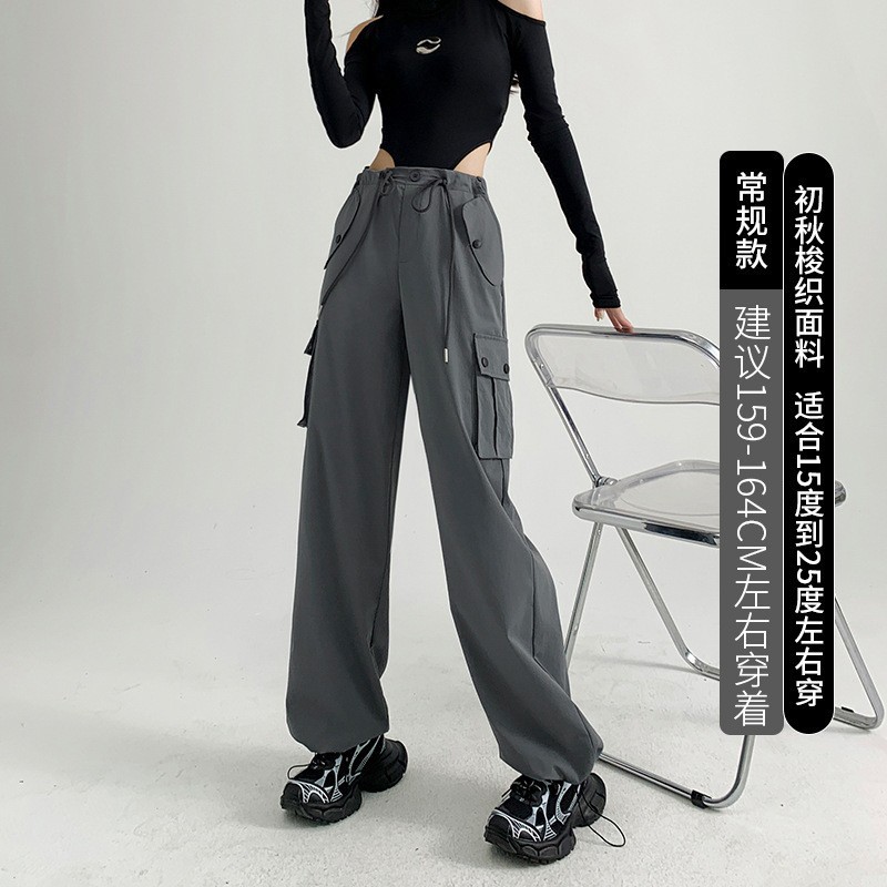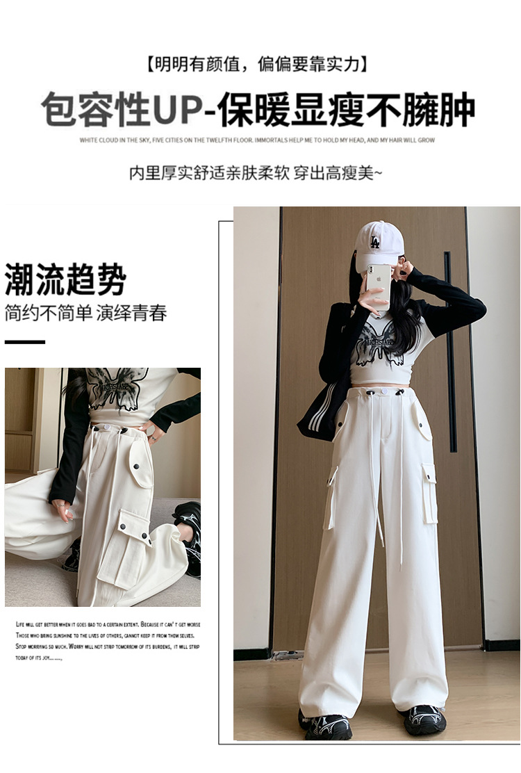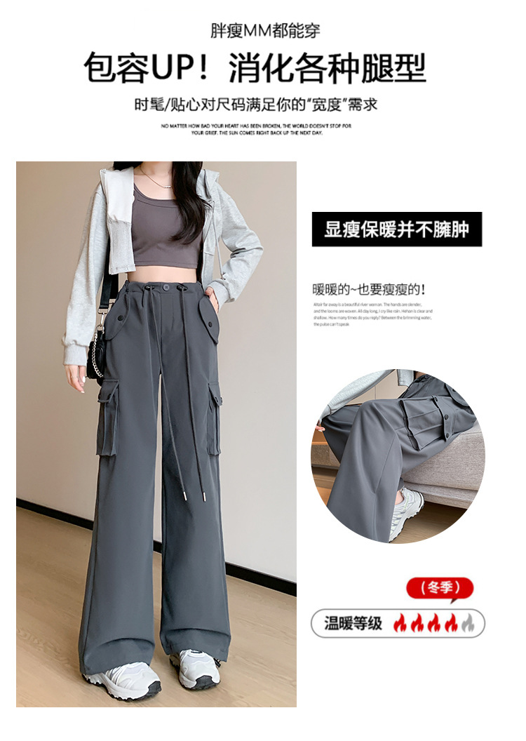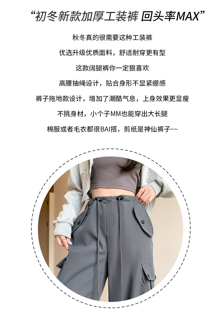 工装裤女装美式裤子女秋新款加厚宽松阔腿卫裤显瘦高腰辣妹运动裤