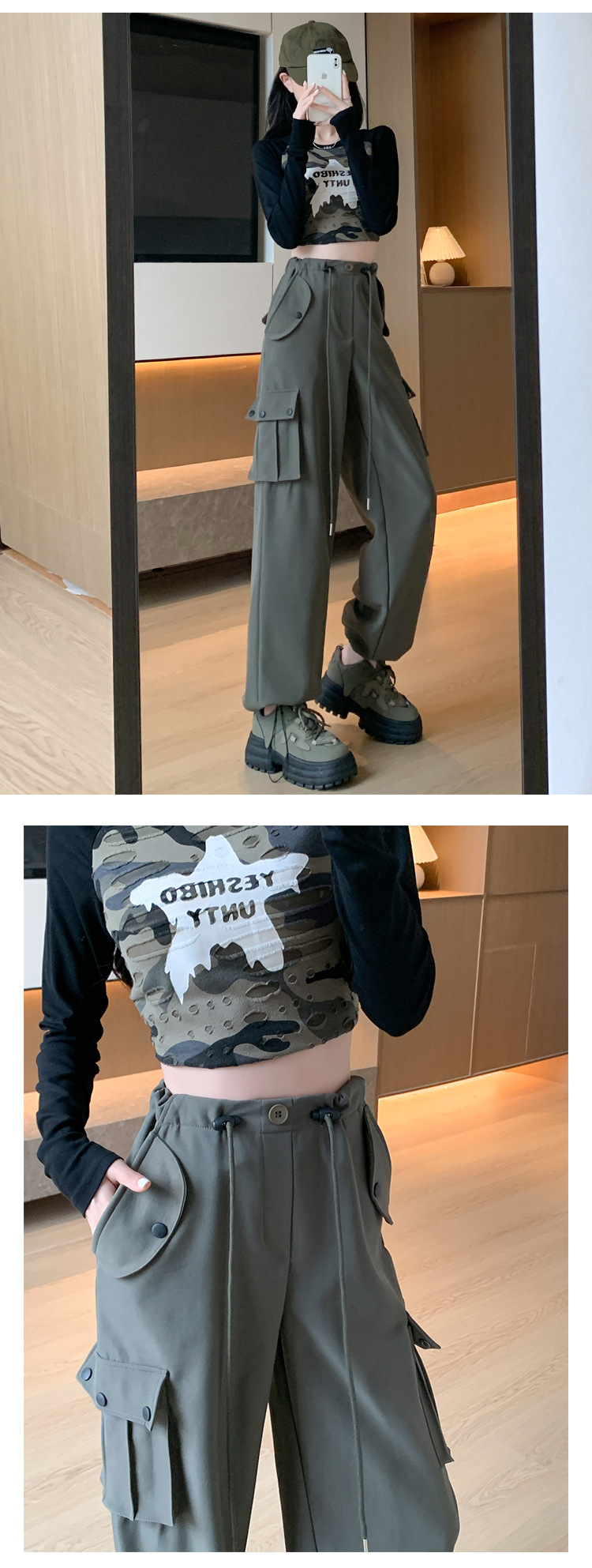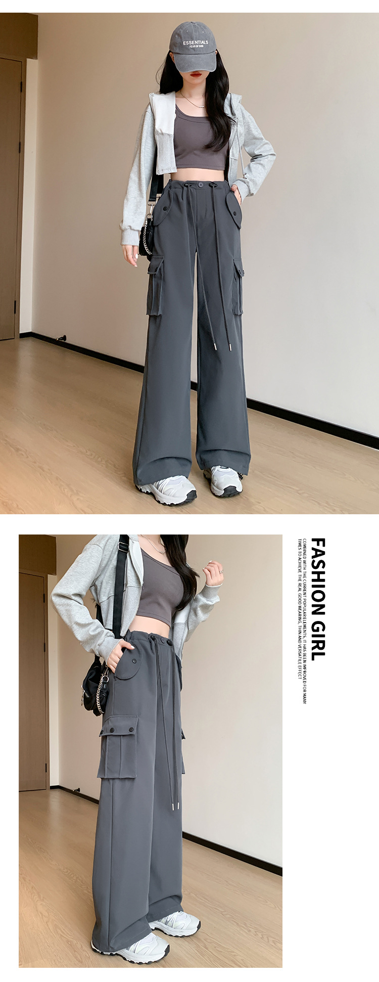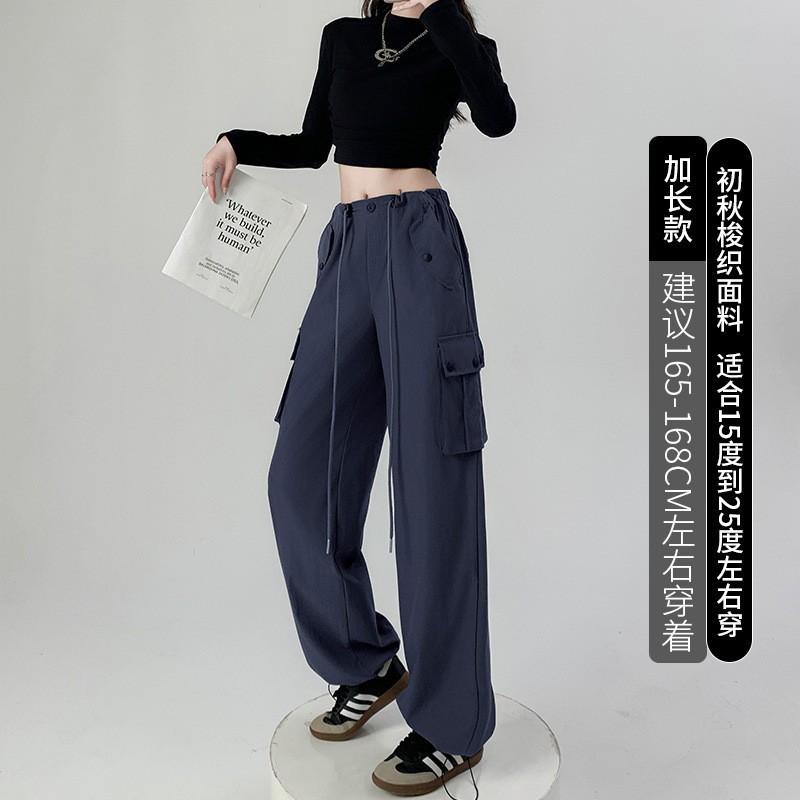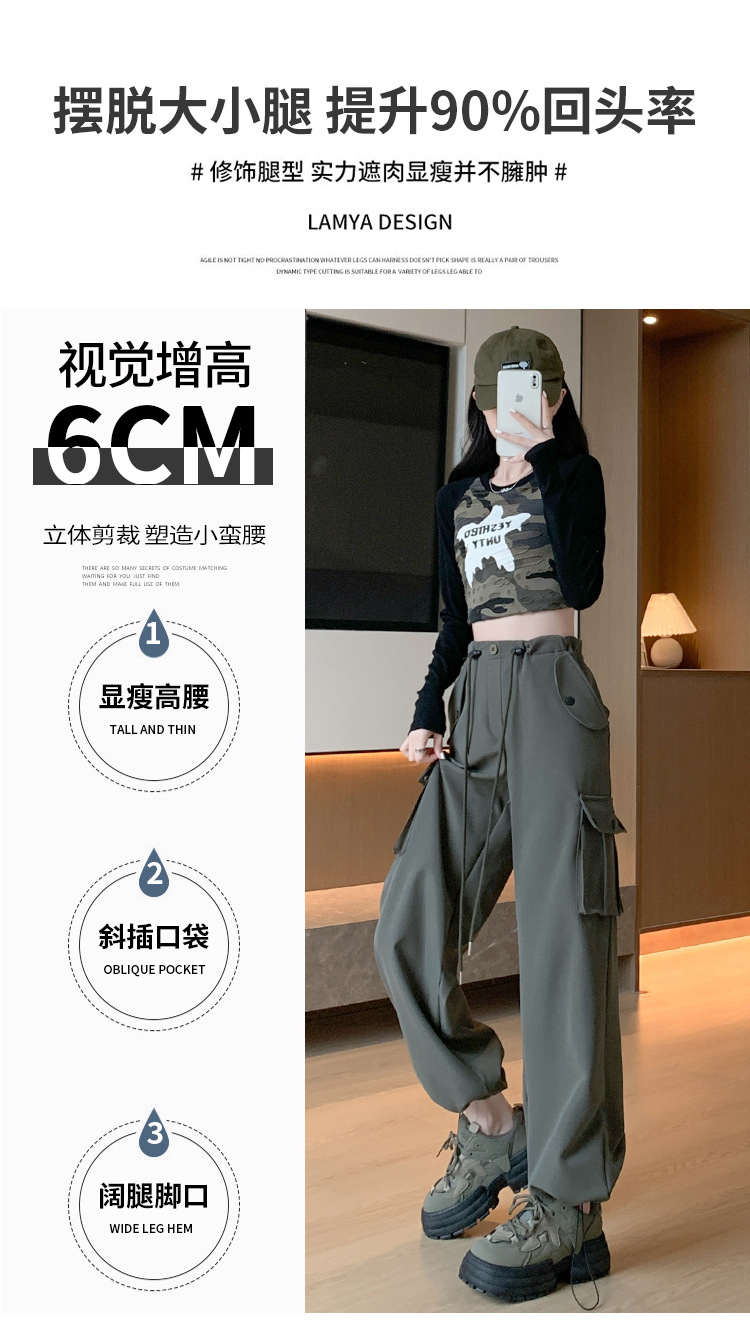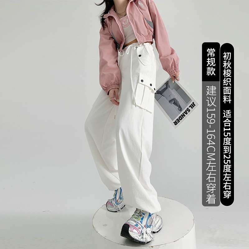 工装裤女装美式裤子女秋新款加厚宽松阔腿卫裤显瘦高腰辣妹运动裤