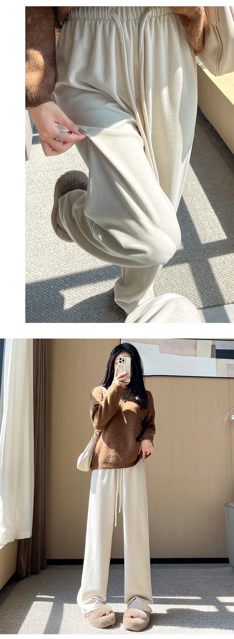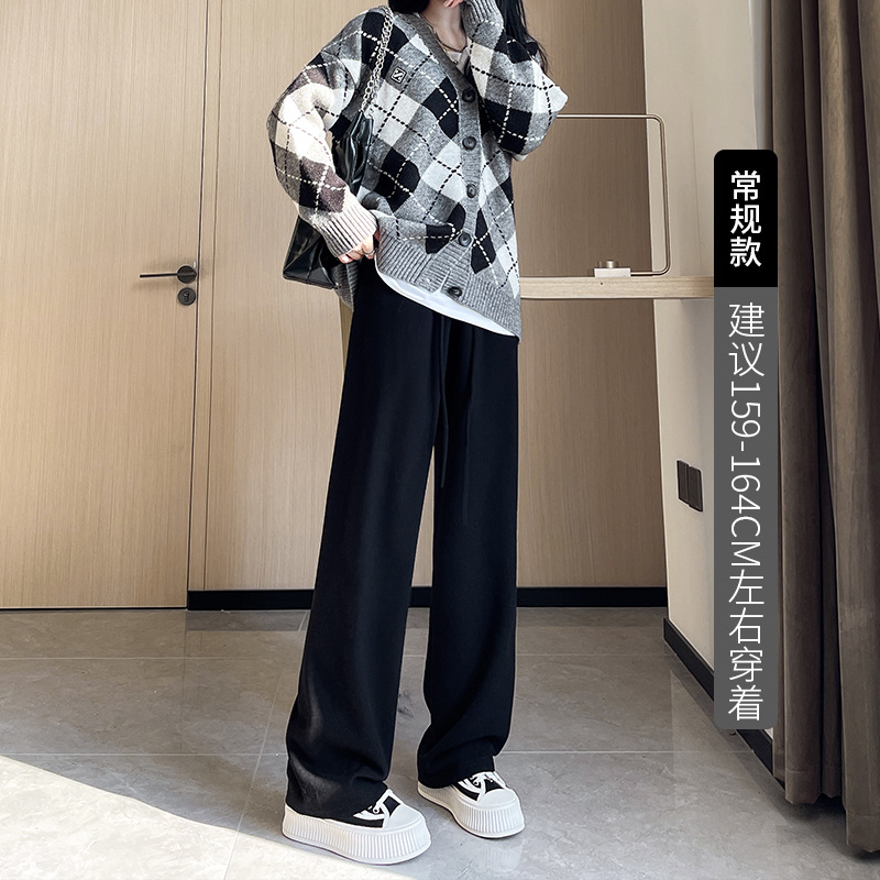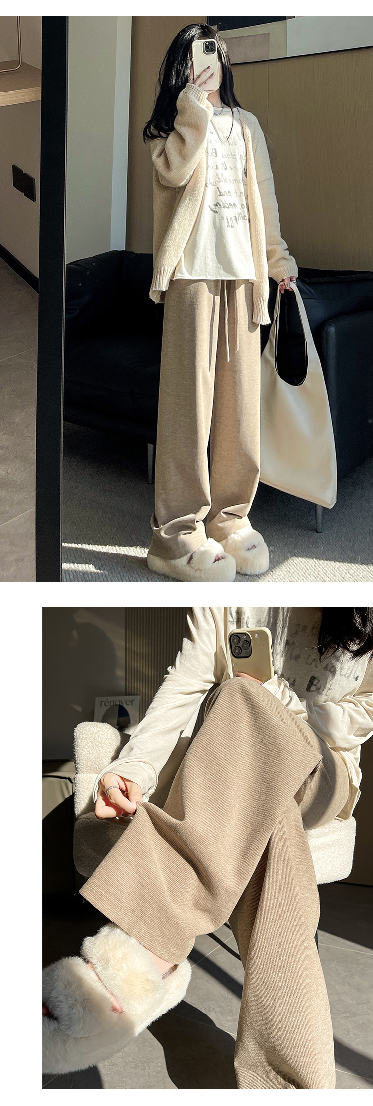 兔毛绒阔腿裤女裤子女款秋季高腰垂感直筒休闲裤窄版针织拖地长裤