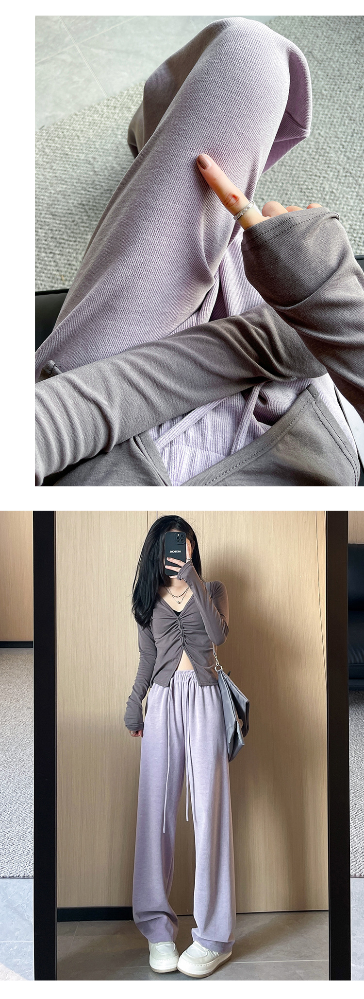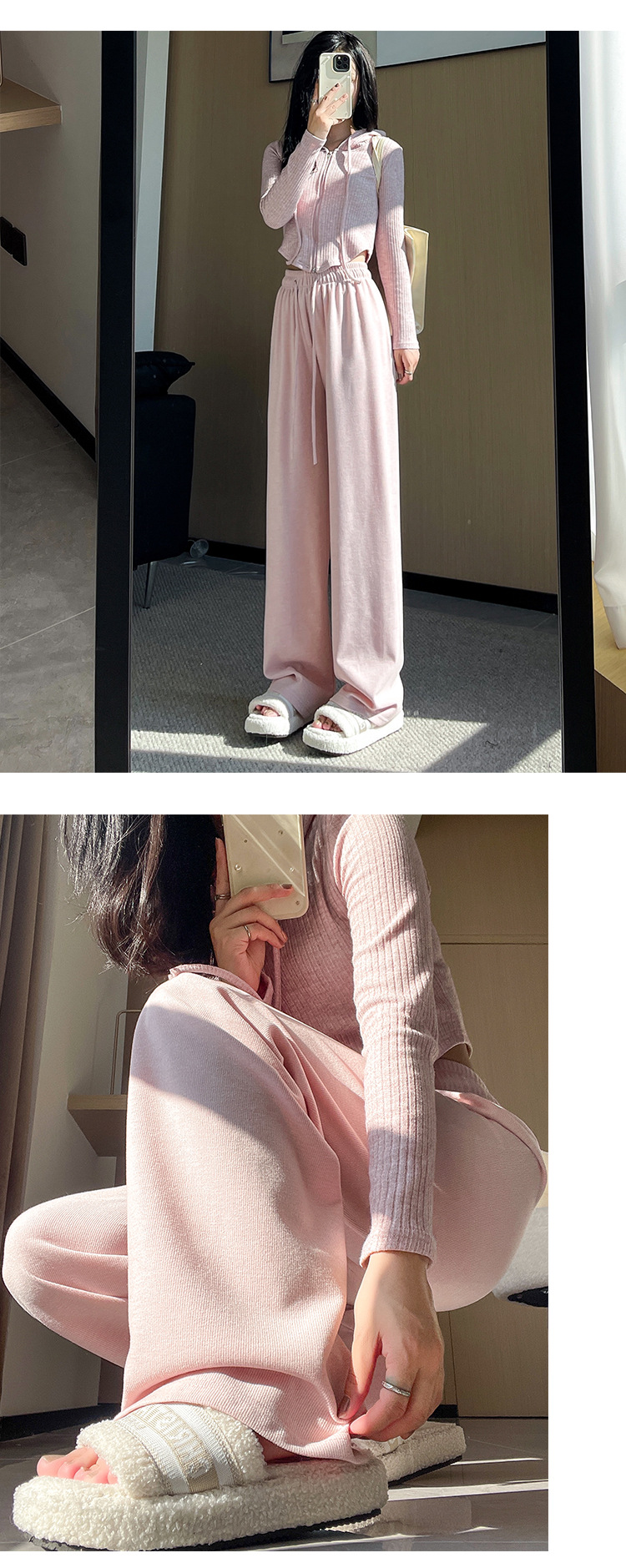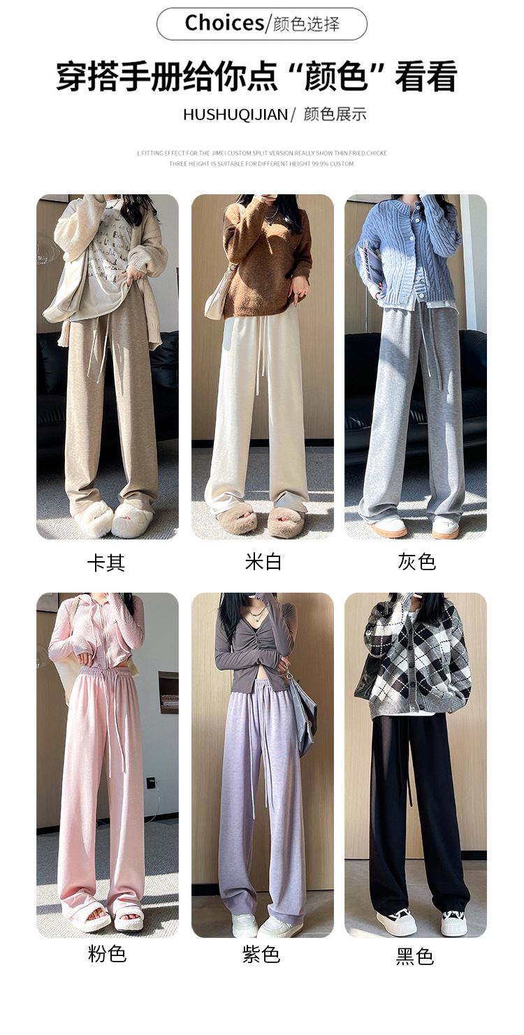 兔毛绒阔腿裤女裤子女款秋季高腰垂感直筒休闲裤窄版针织拖地长裤