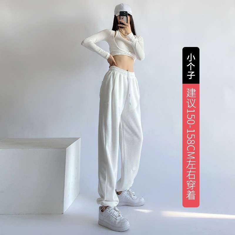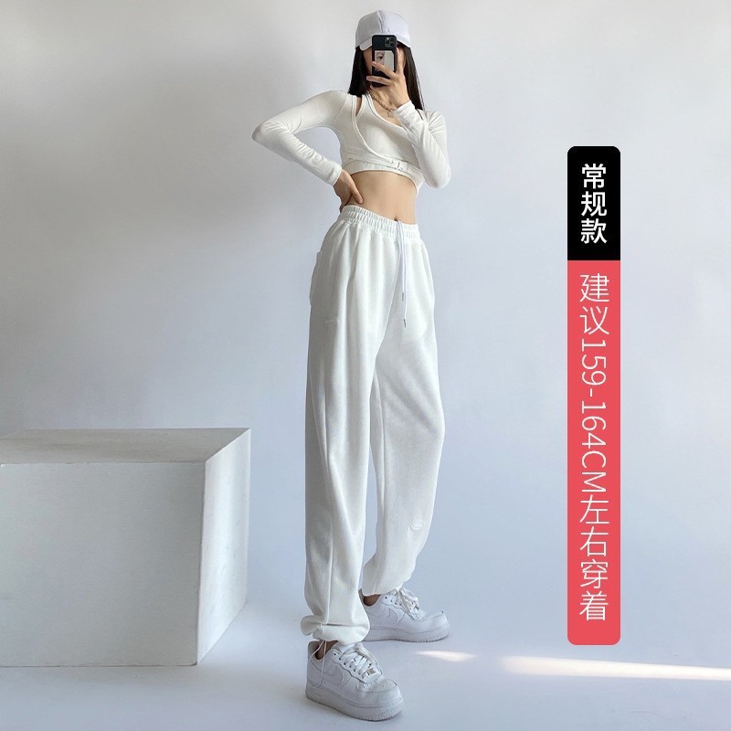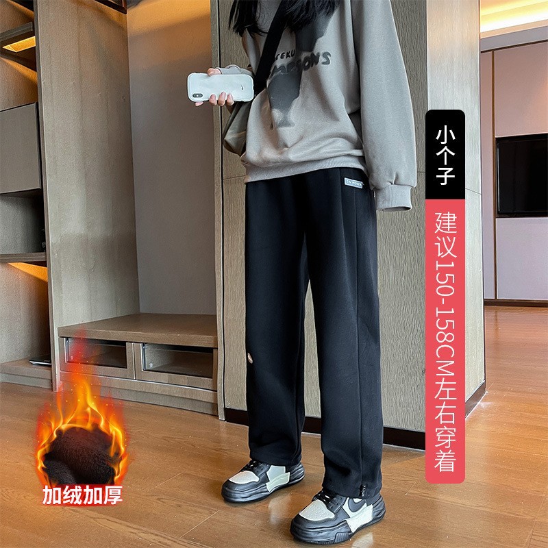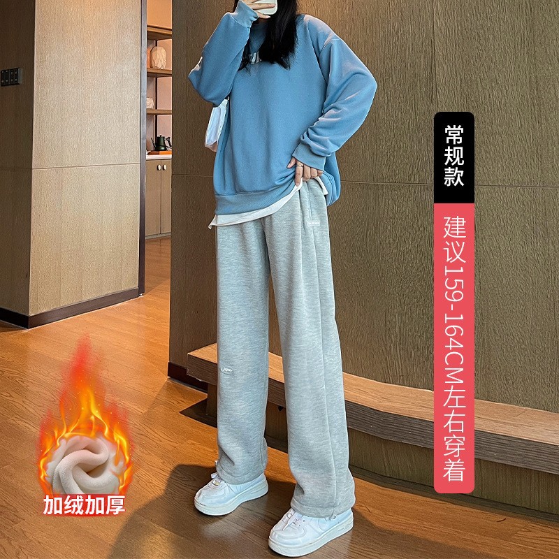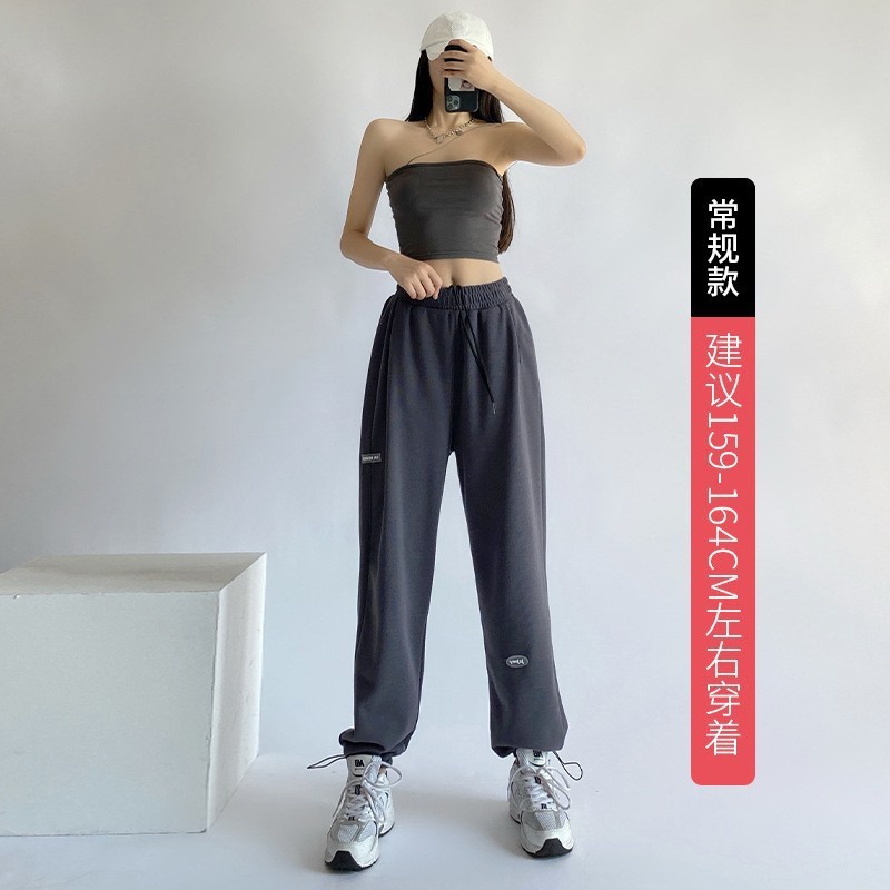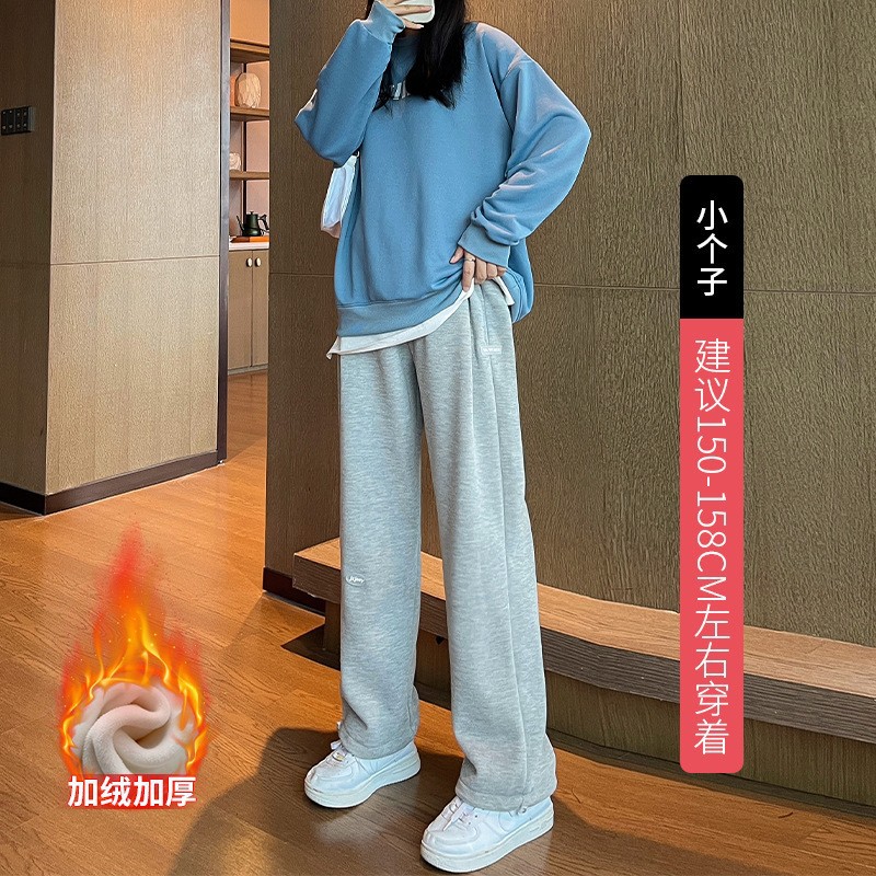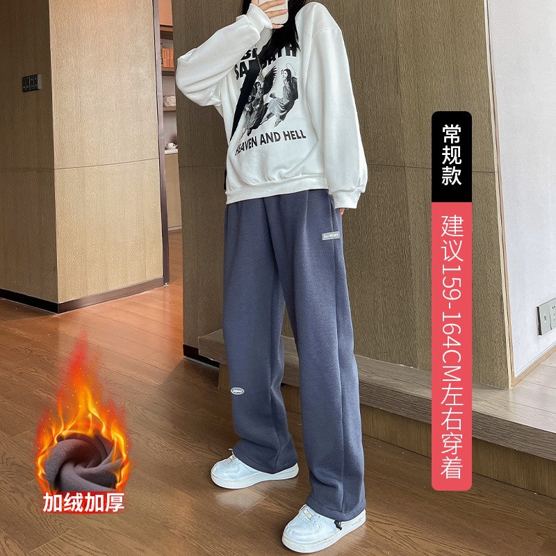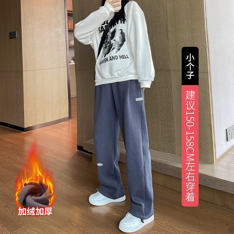 运动裤女装垂感裤子女春秋新款高腰直筒休闲卫裤小个子窄版阔腿裤