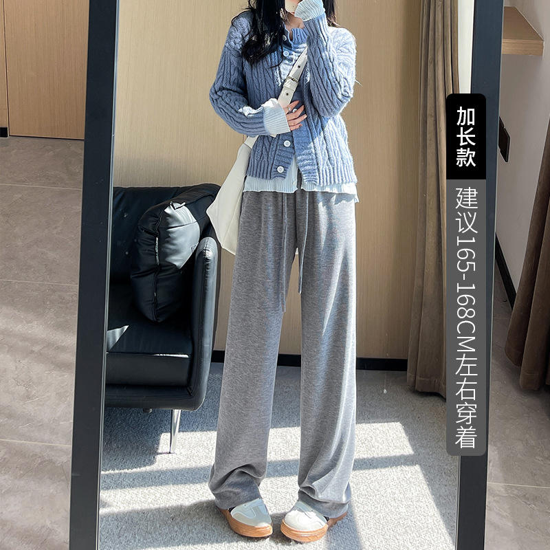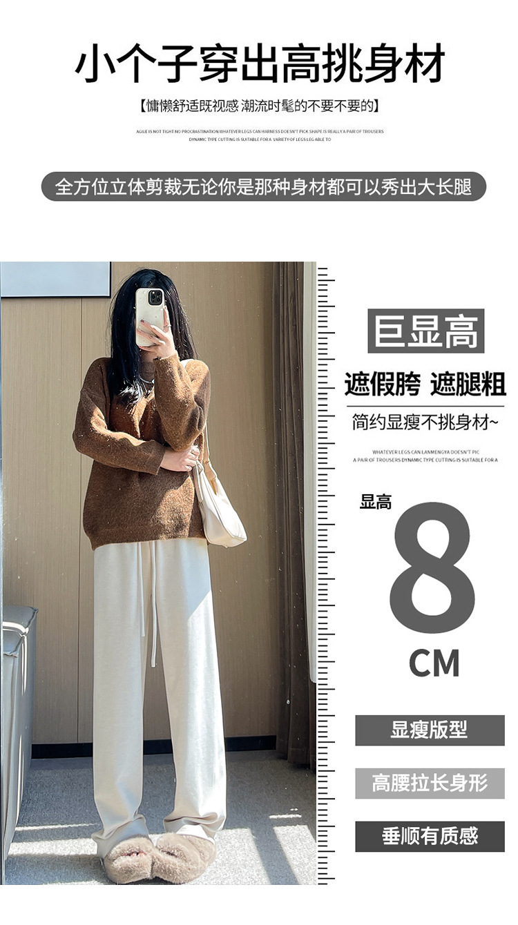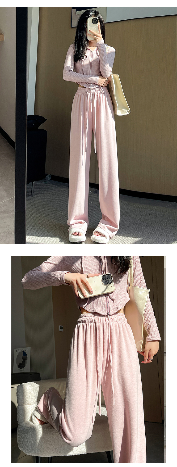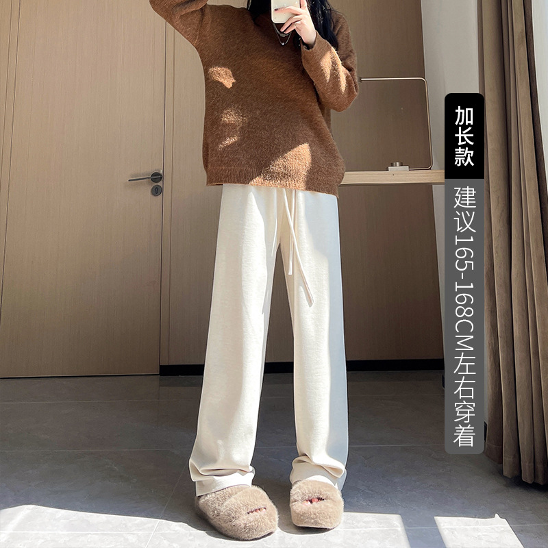 粉色针织直筒裤女秋季女裤显瘦拖地宽松休闲裤高腰兔毛绒阔腿裤