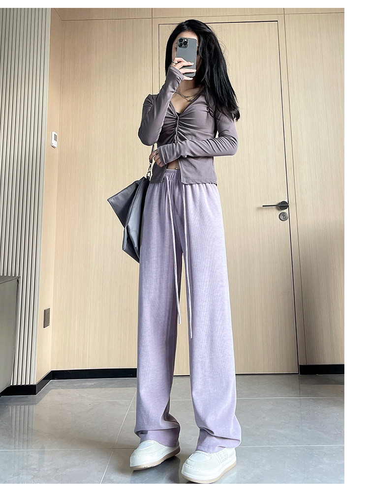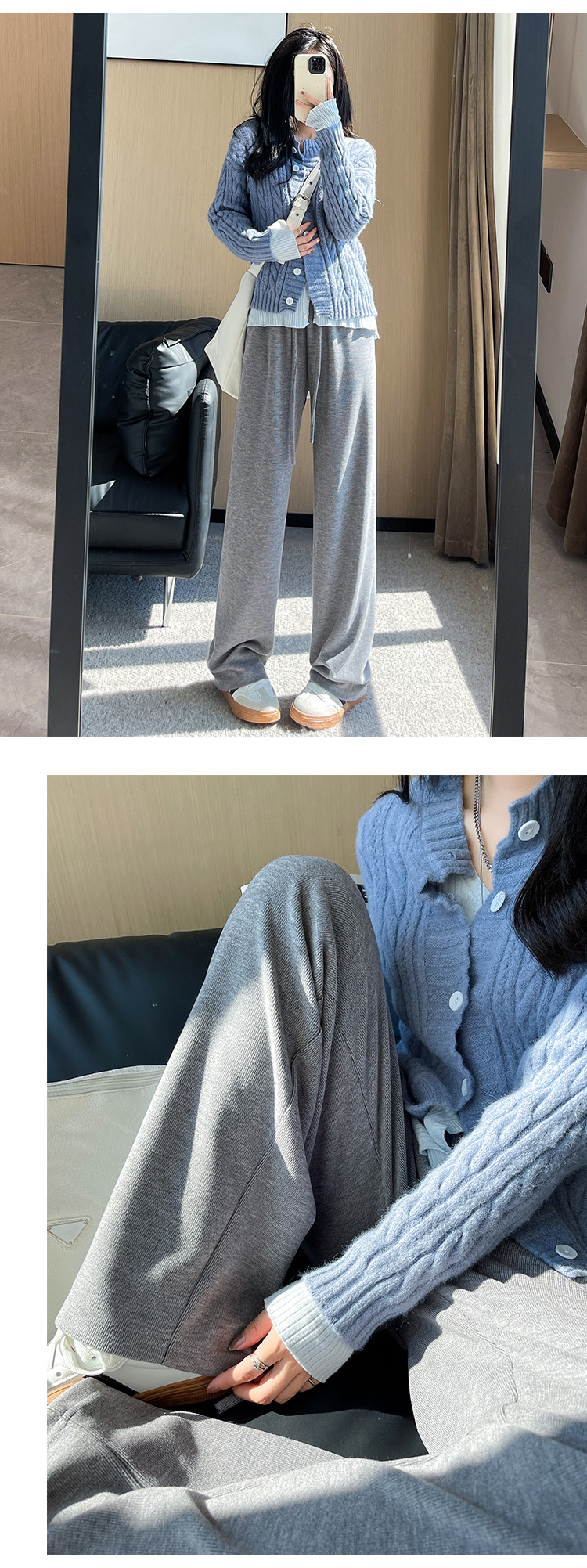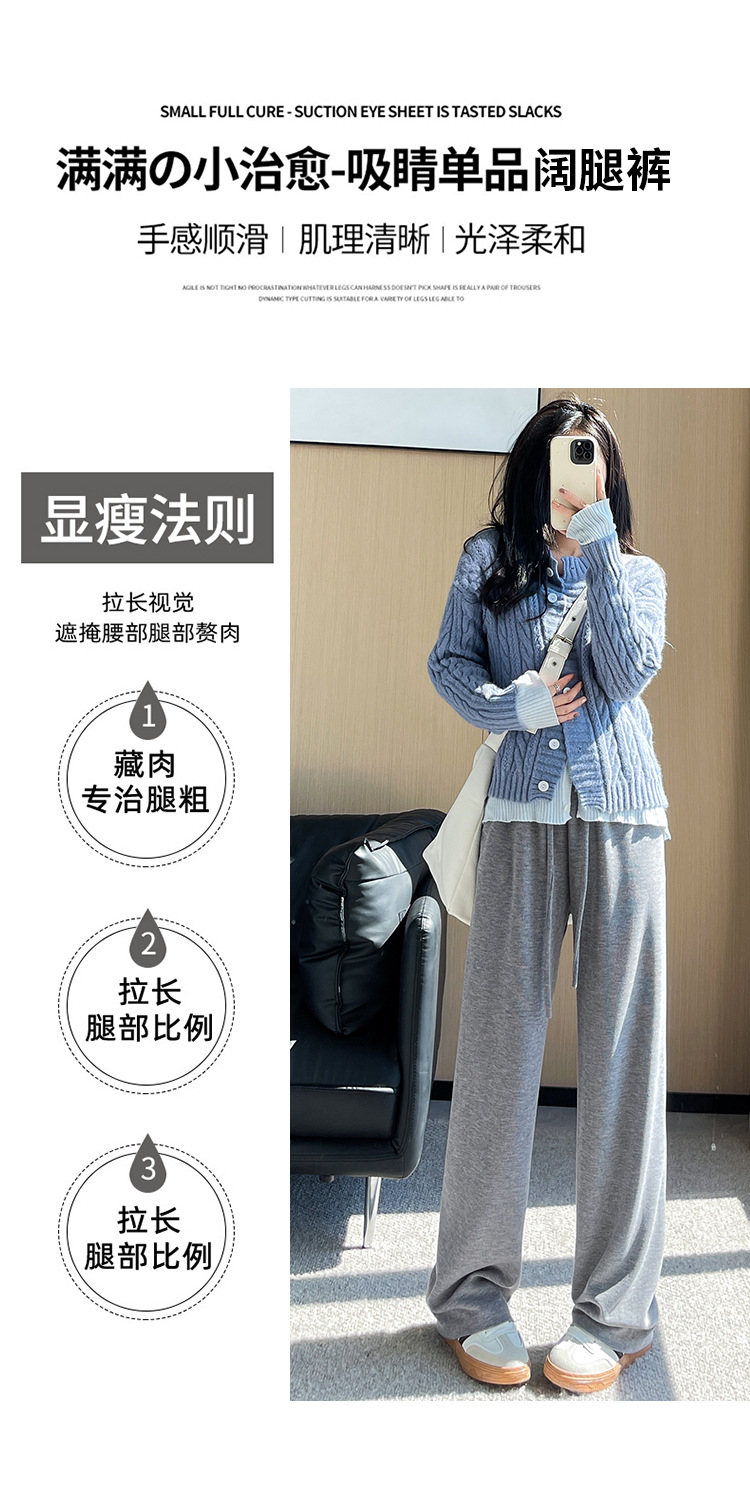 粉色针织直筒裤女秋季女裤显瘦拖地宽松休闲裤高腰兔毛绒阔腿裤