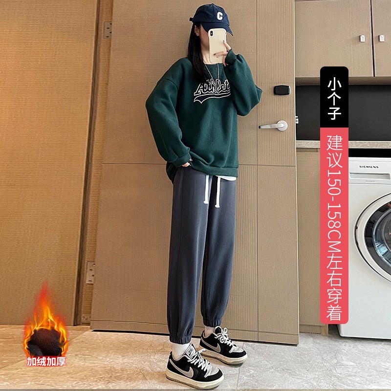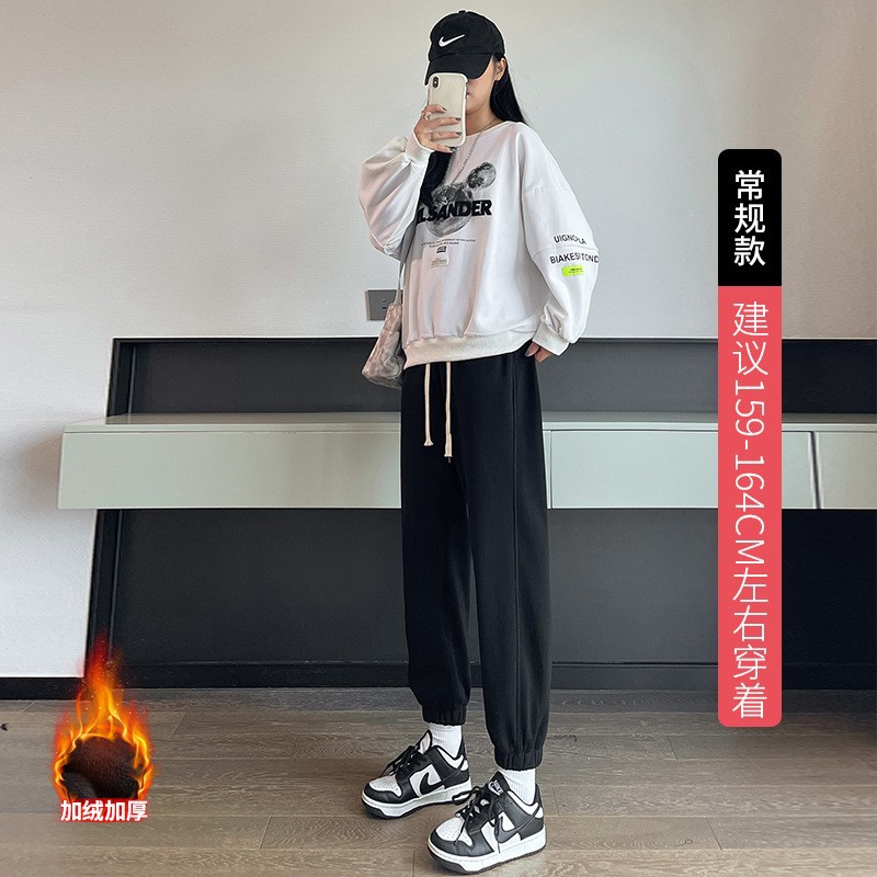 卫裤女冬2023加绒裤子女显瘦垂感直筒休闲裤女装小个子运动裤女裤