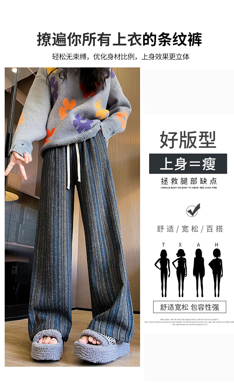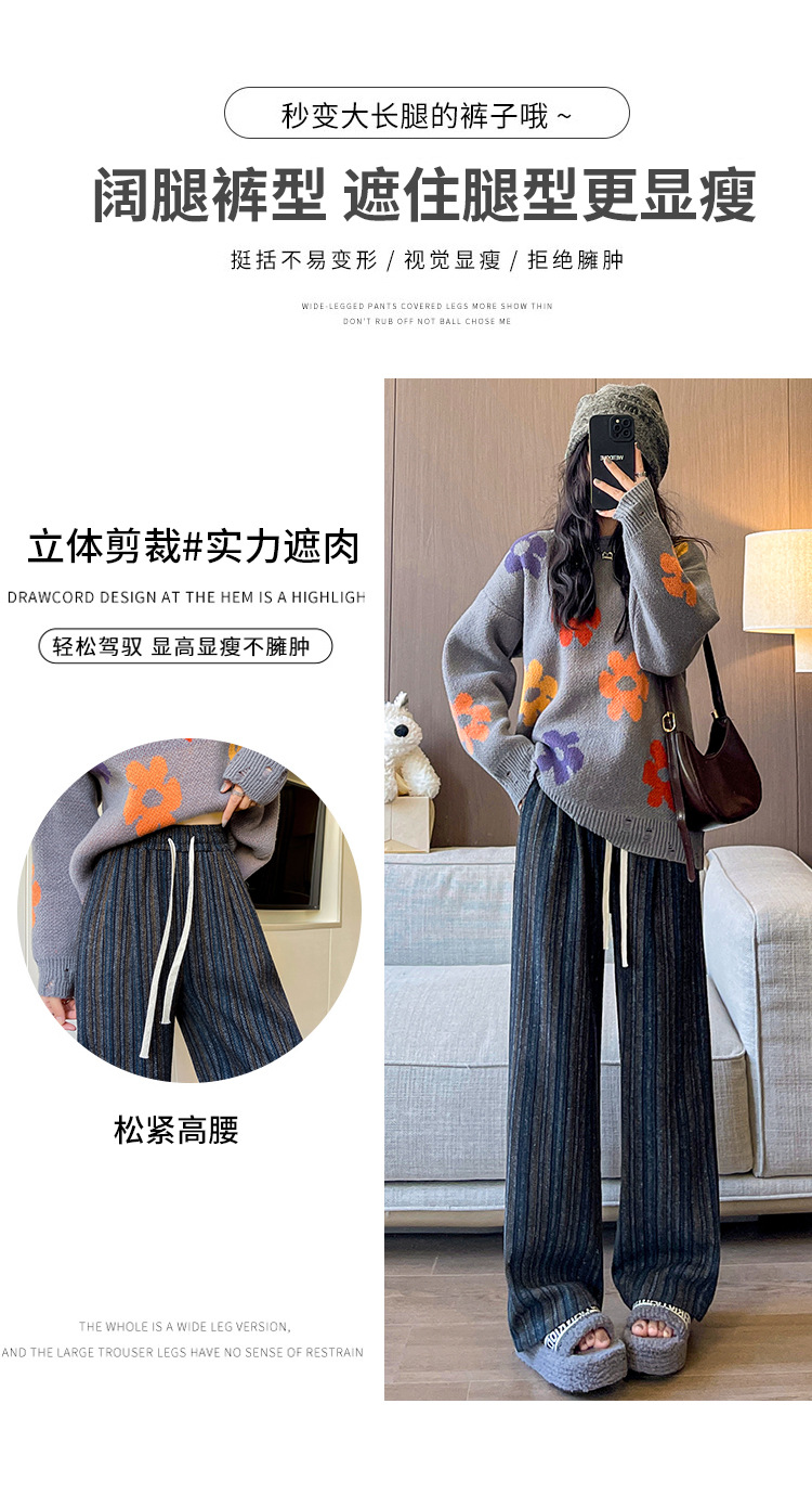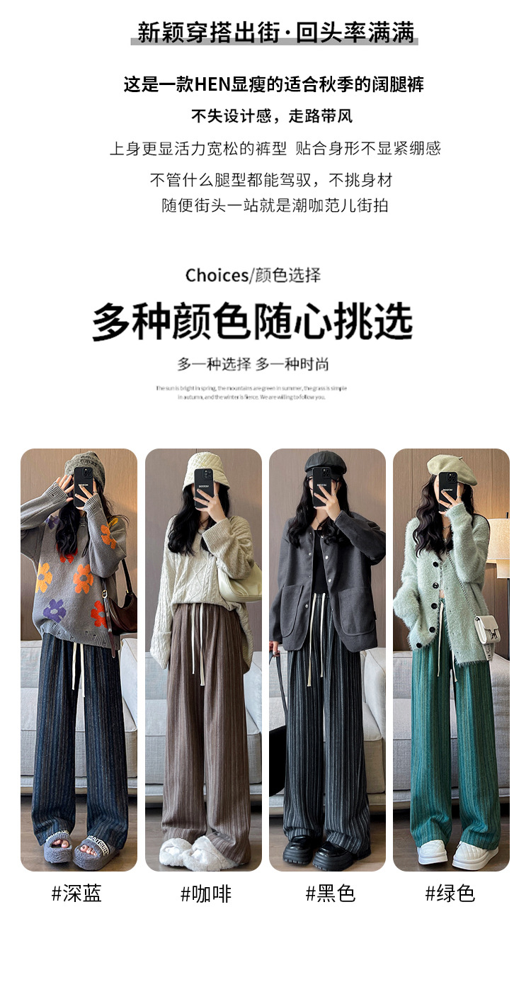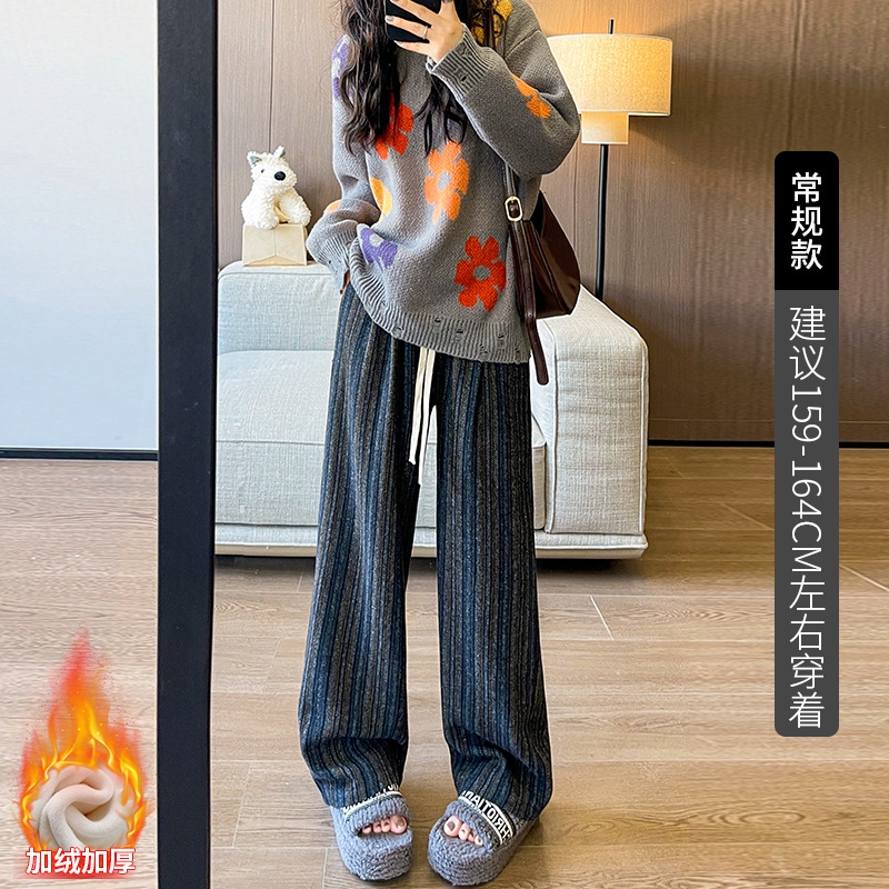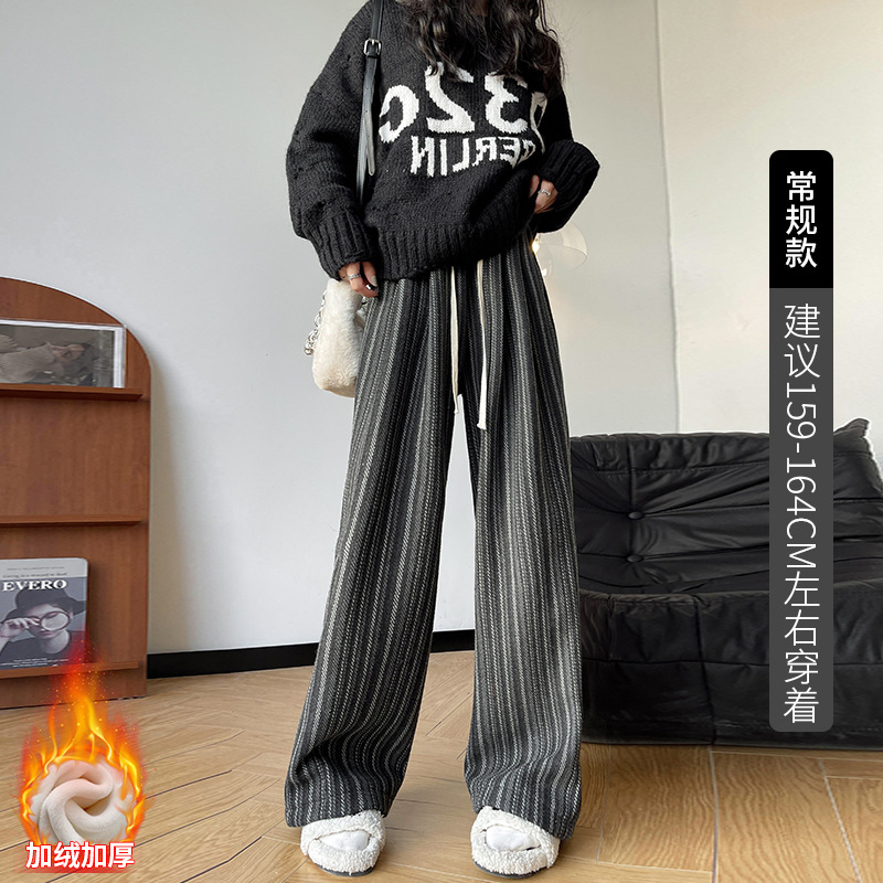 竖条纹阔腿裤女装裤子女款加绒秋冬新款垂感直筒裤高腰宽松休闲裤