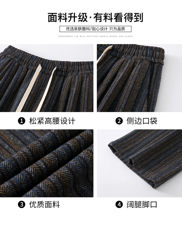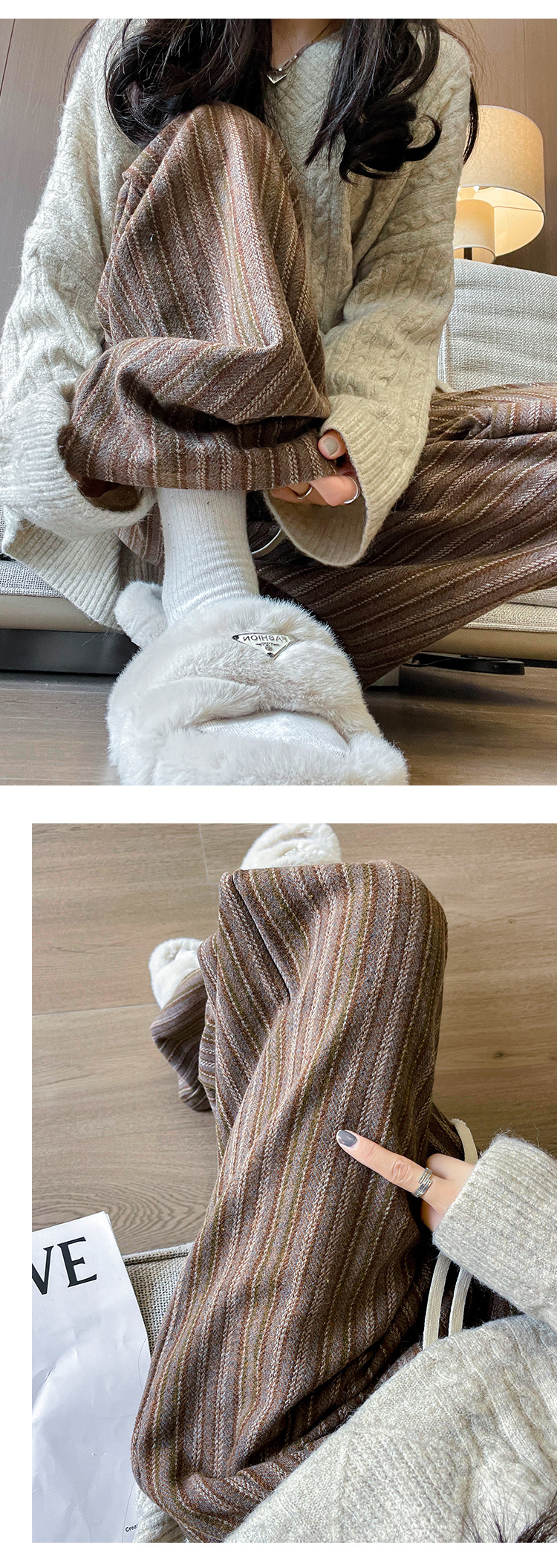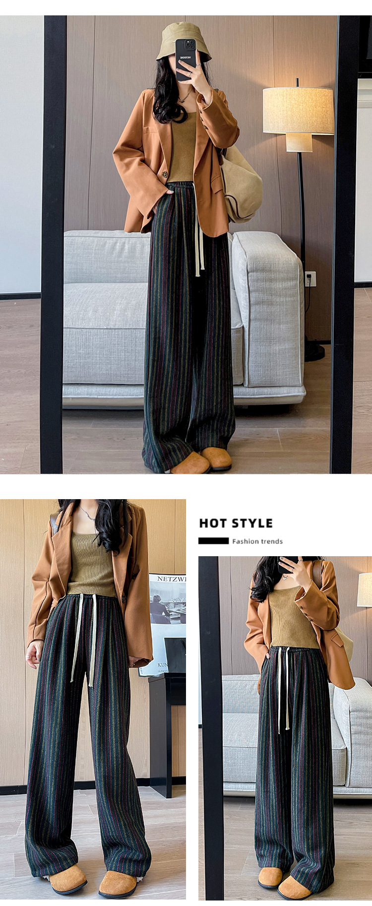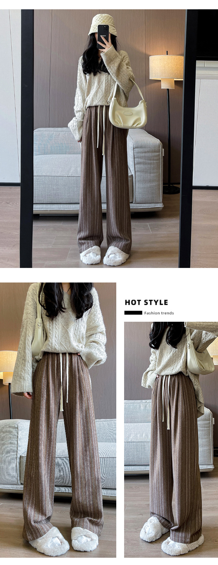 竖条纹阔腿裤女装裤子女款加绒秋冬新款垂感直筒裤高腰宽松休闲裤