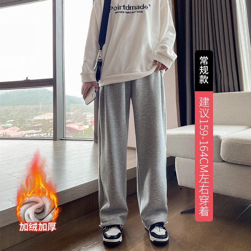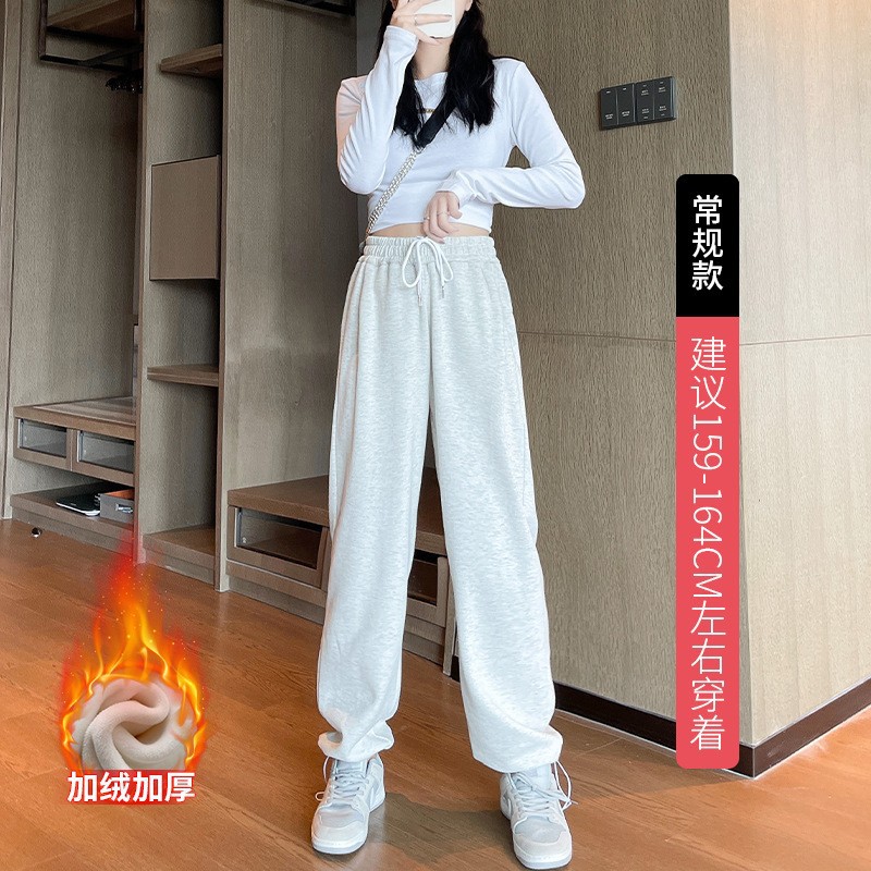 灰色运动裤女装华夫格裤子女春秋宽松休闲卫裤显瘦高腰阔腿裤女裤