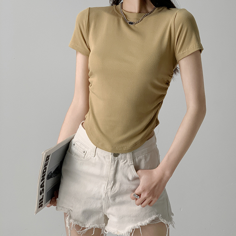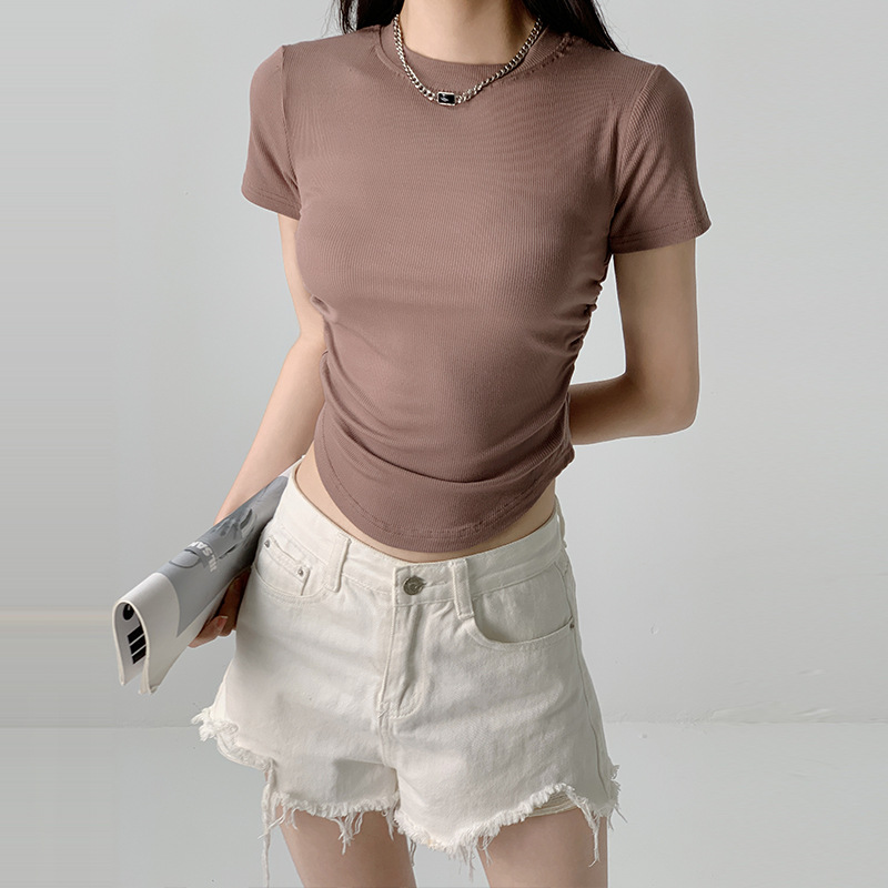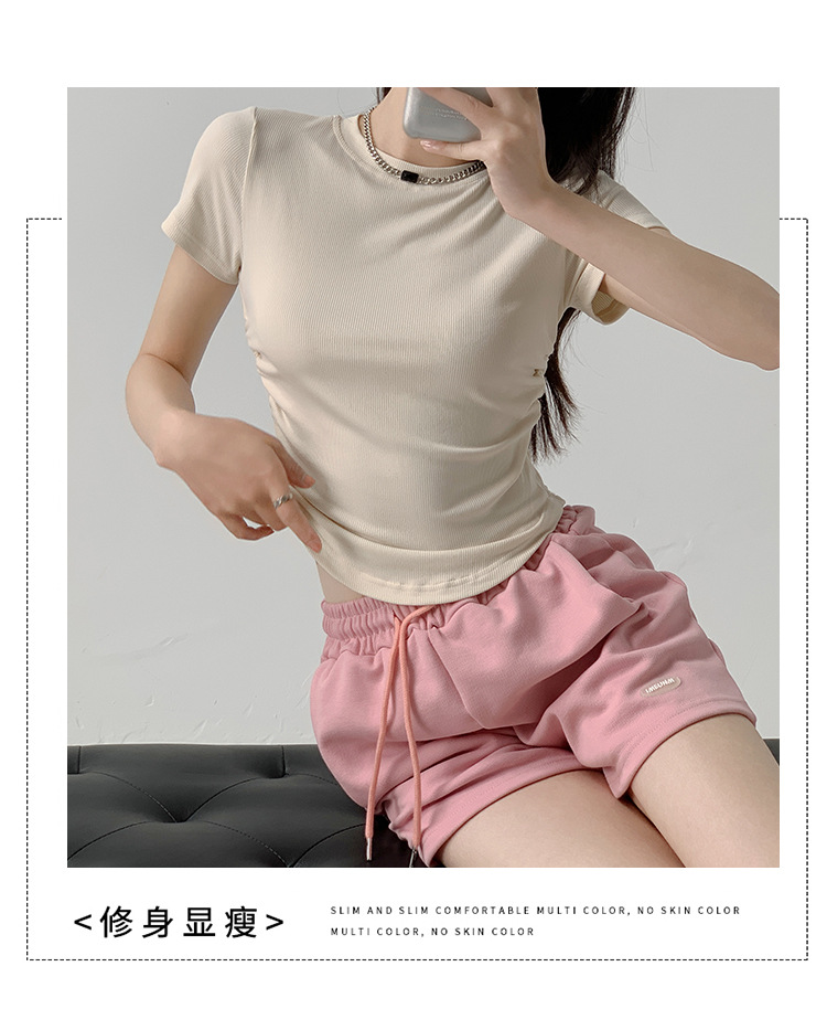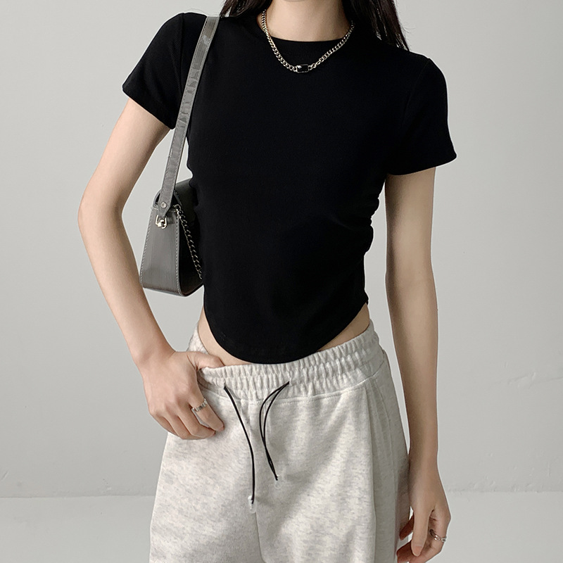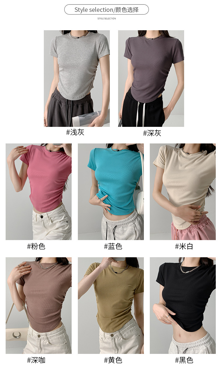 多巴胺穿搭圆领短袖t恤女短款修身夏季内搭上衣外穿辣妹打底衫潮