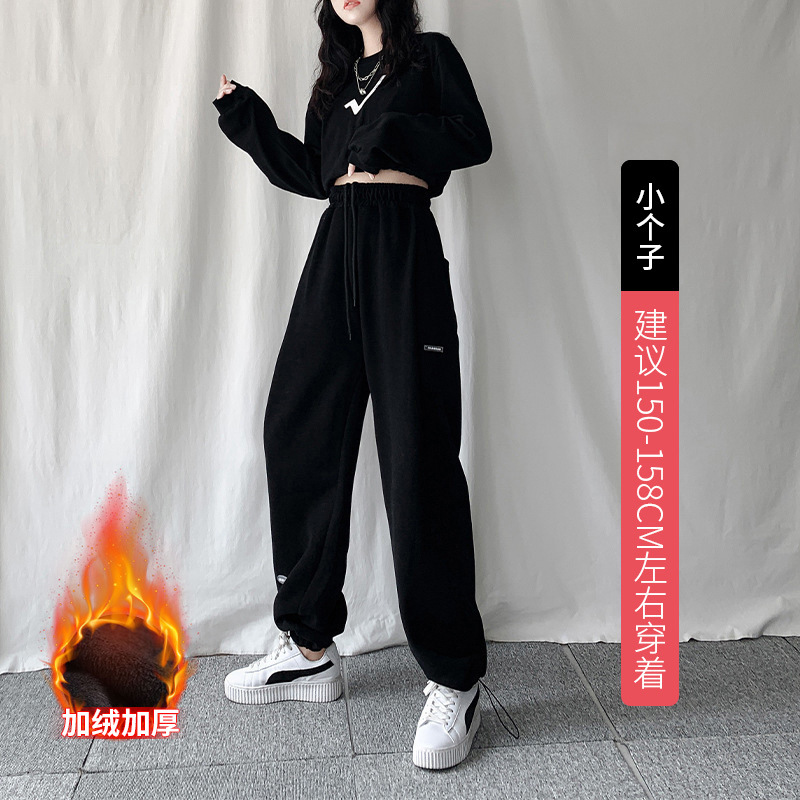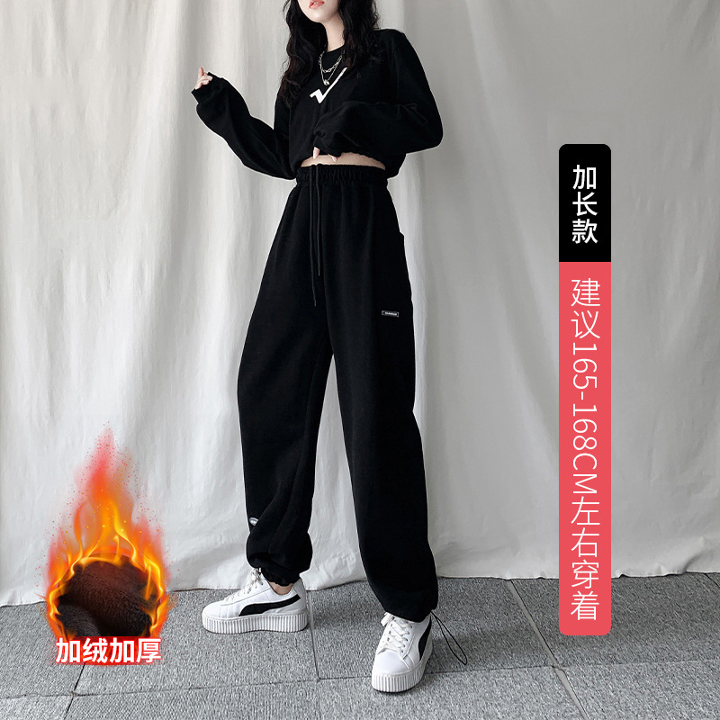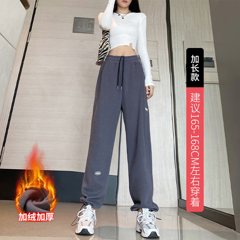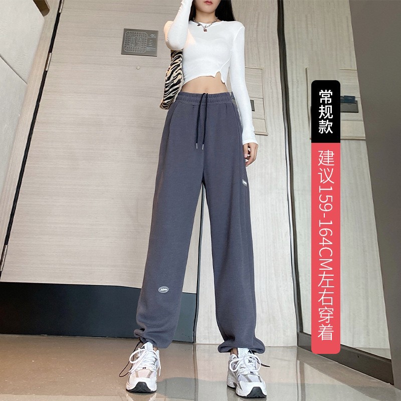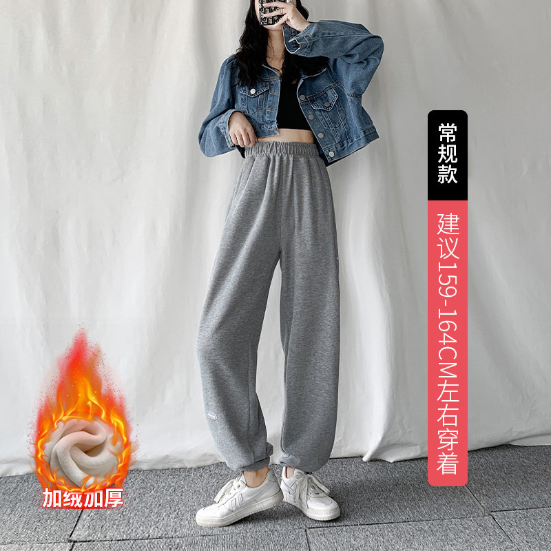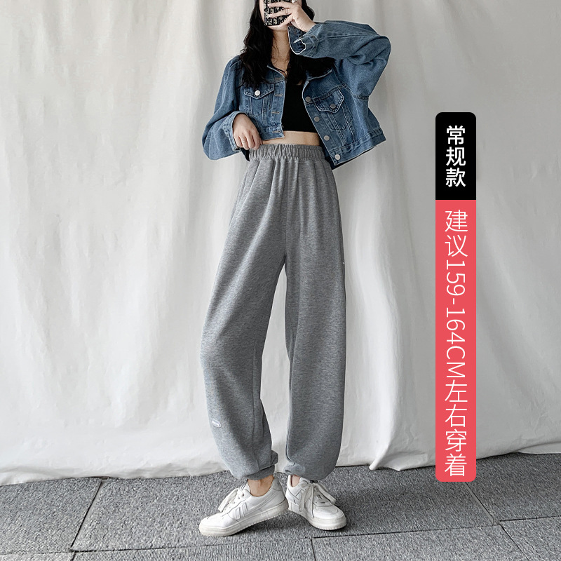 灰色窄版阔腿裤长裤女春秋高腰束脚卫裤休闲网红宽松棉运动裤女裤