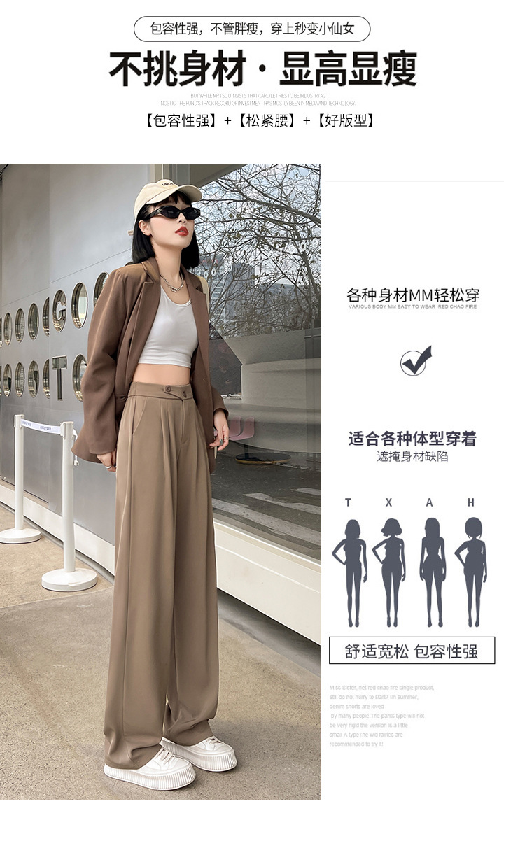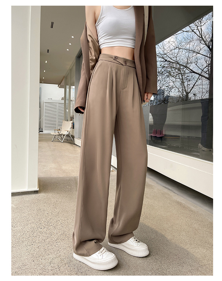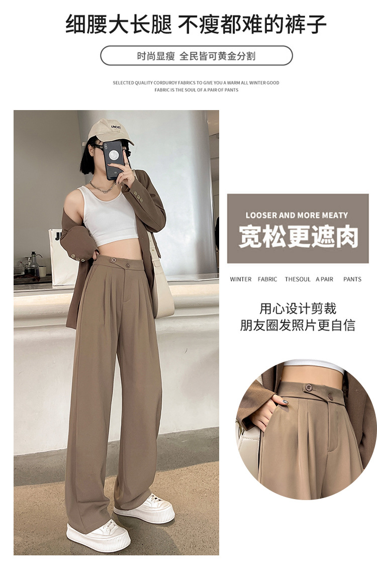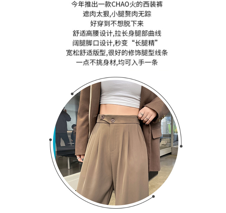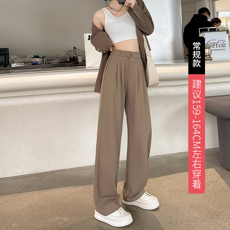 卡其西装裤高级感裤子女春秋新款宽松休闲裤垂感女装阔腿裤女裤