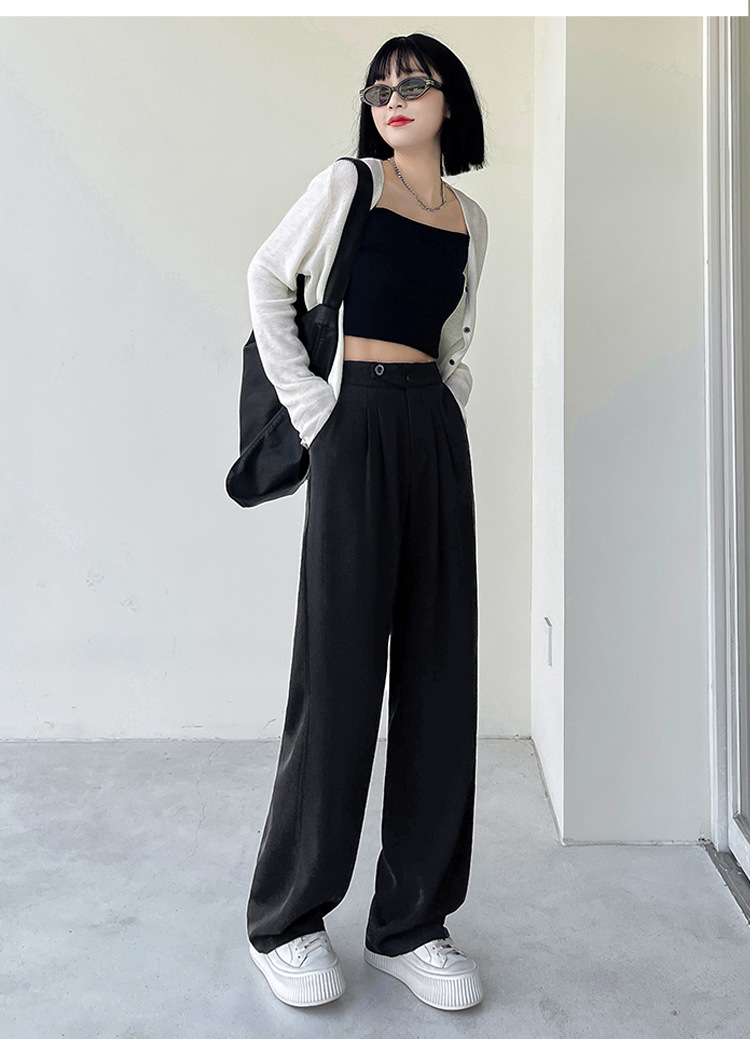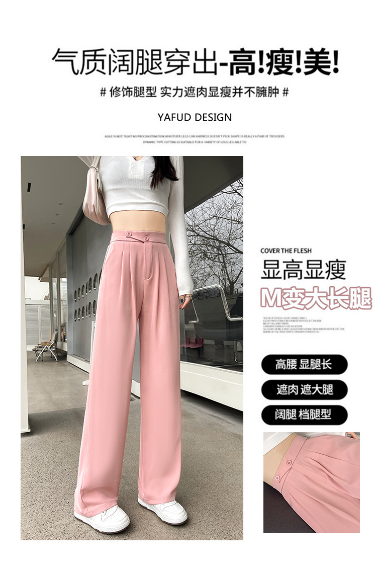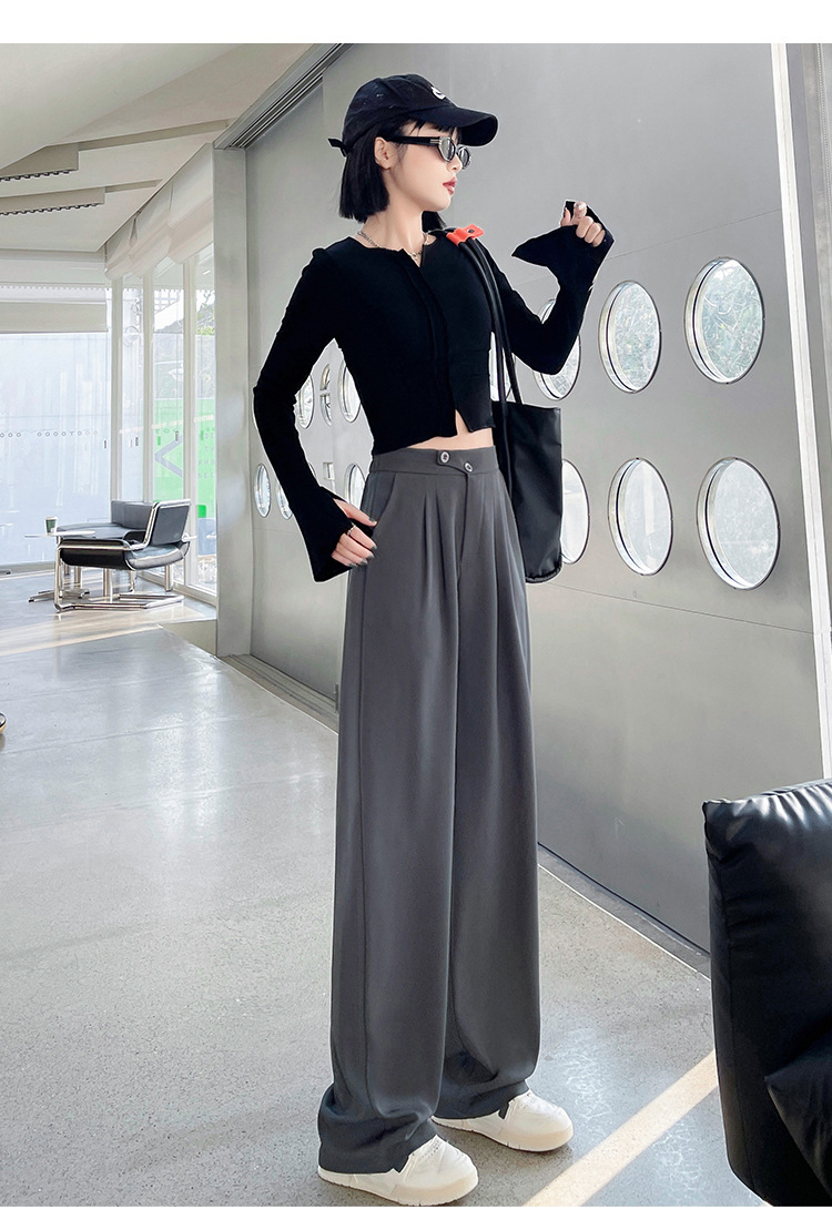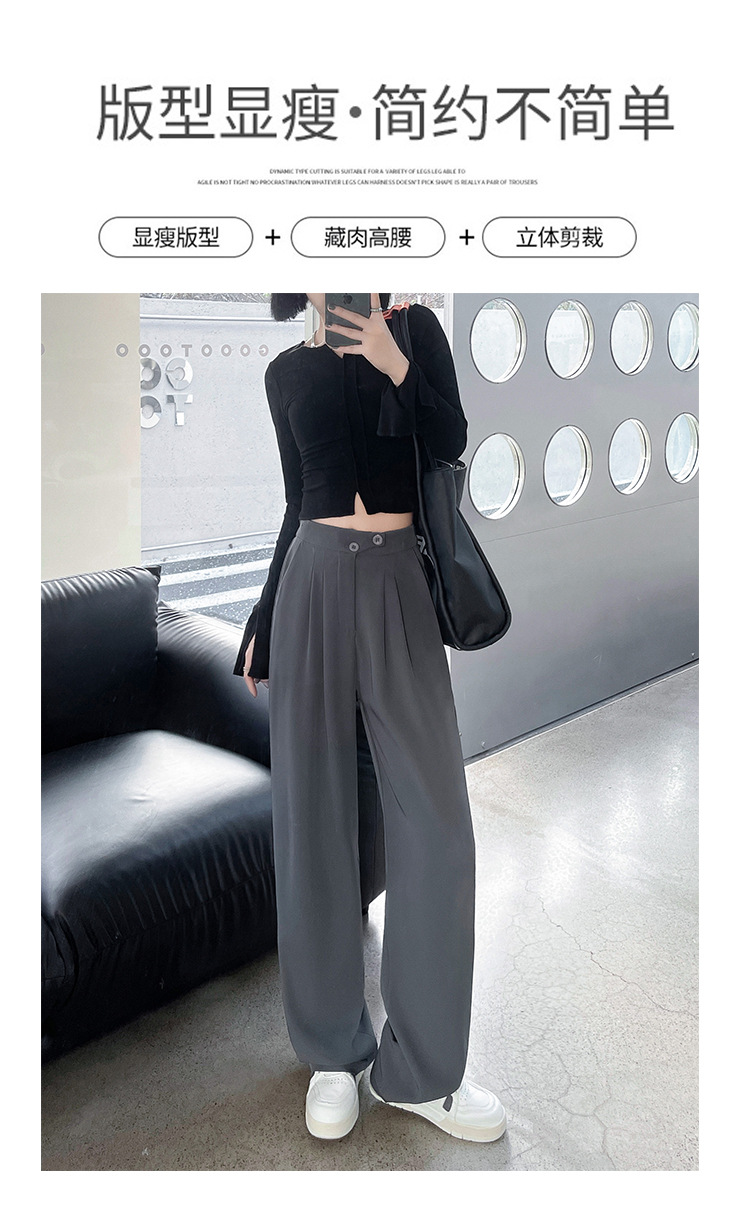 卡其西装裤高级感裤子女春秋新款宽松休闲裤垂感女装阔腿裤女裤