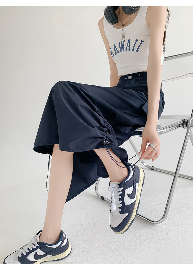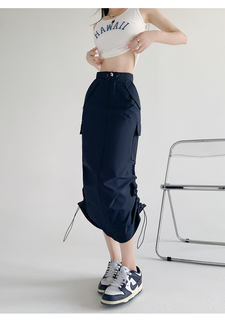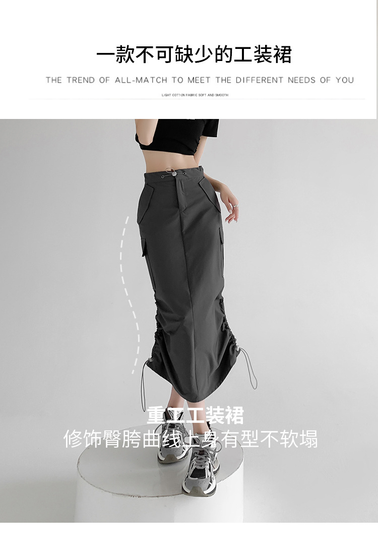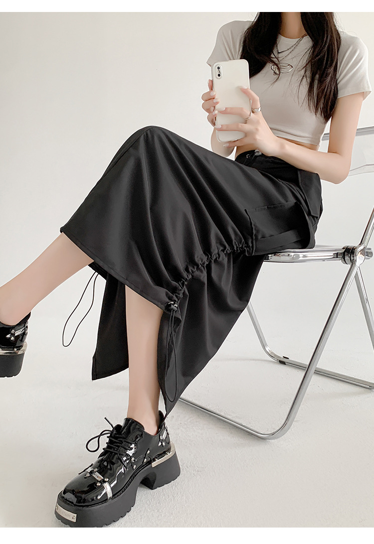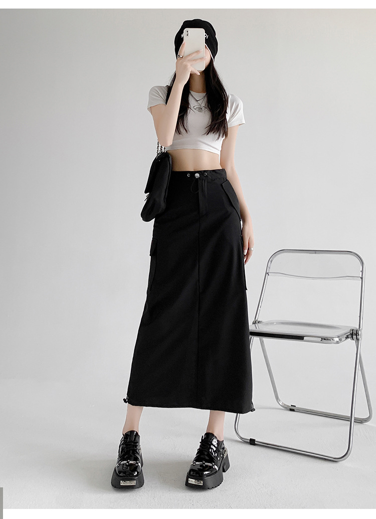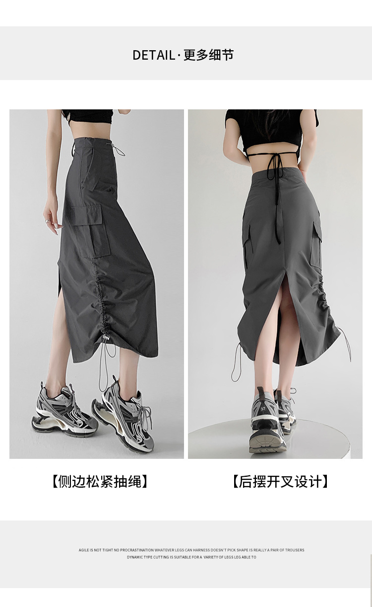 辣妹工装裙女夏季薄款开叉高腰A字长裙显瘦设计感休闲韩系半身裙