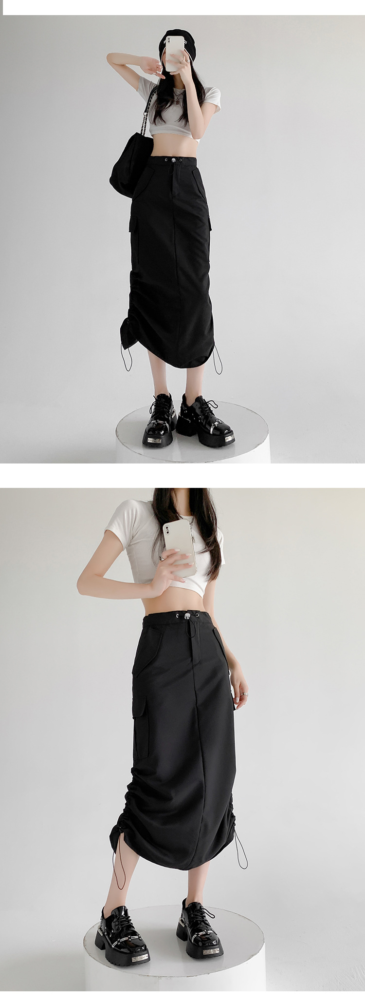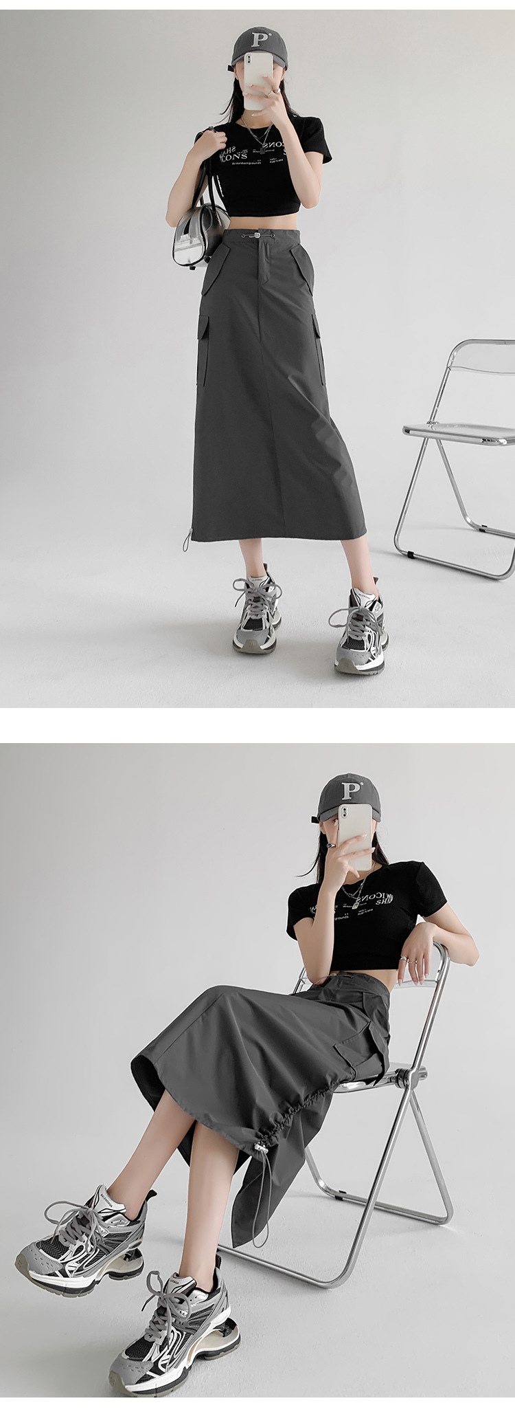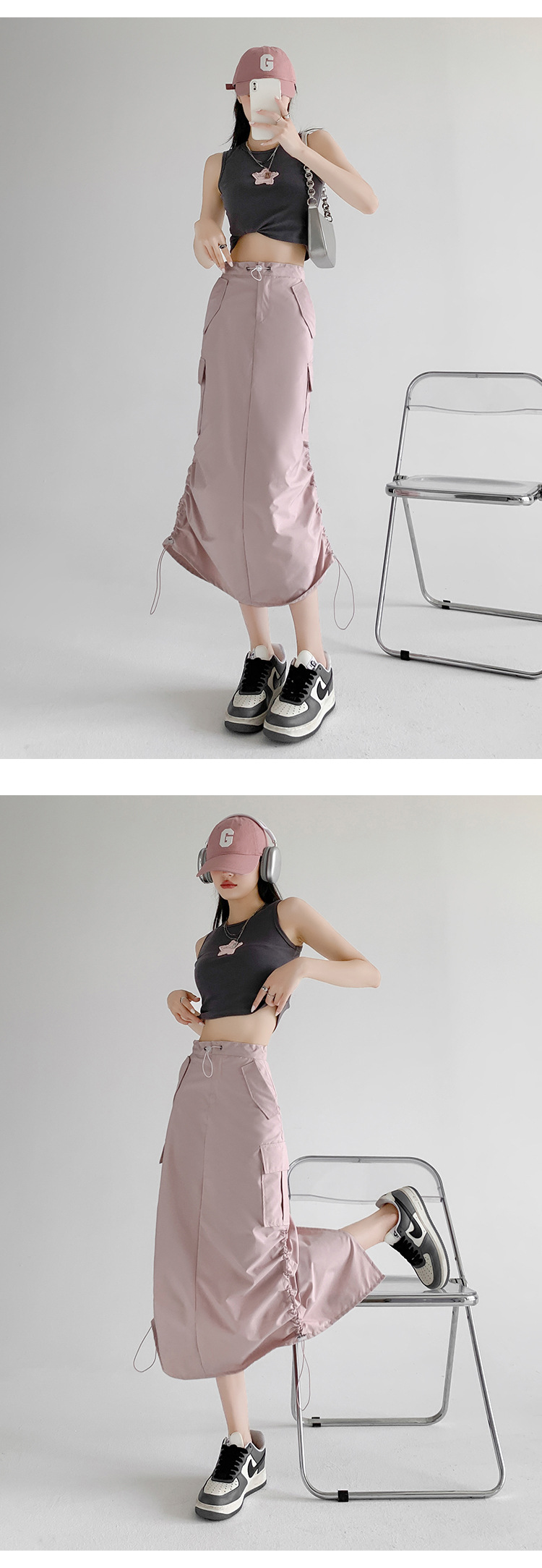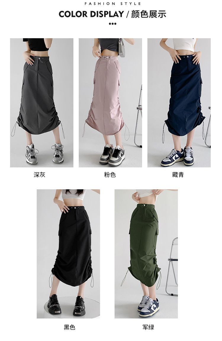 辣妹工装裙女夏季薄款开叉高腰A字长裙显瘦设计感休闲韩系半身裙