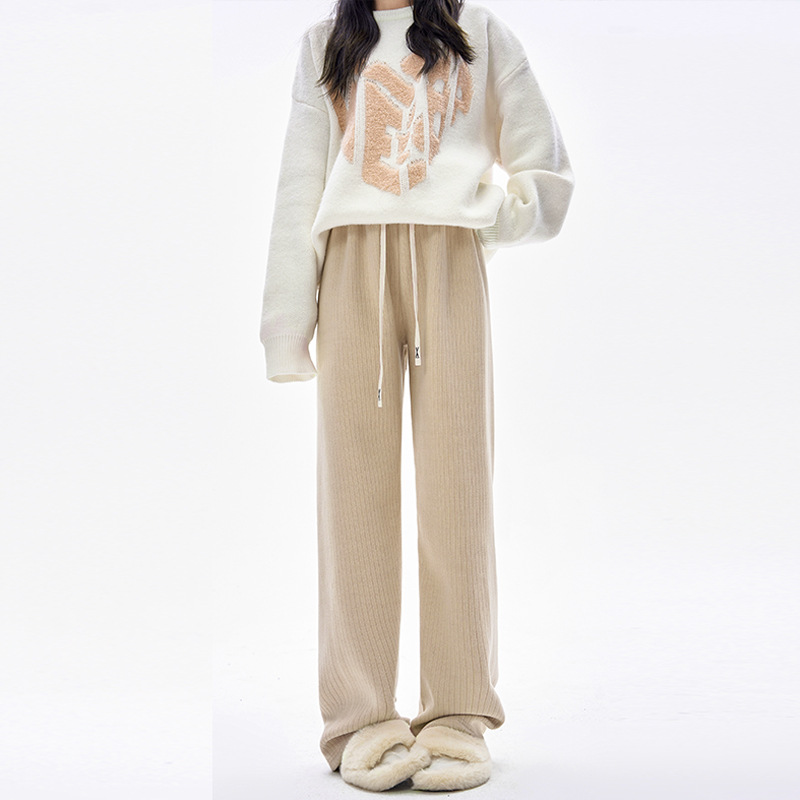 针织阔腿裤女秋冬拖地裤垂坠感直筒裤子女装小个子加绒运动裤女裤