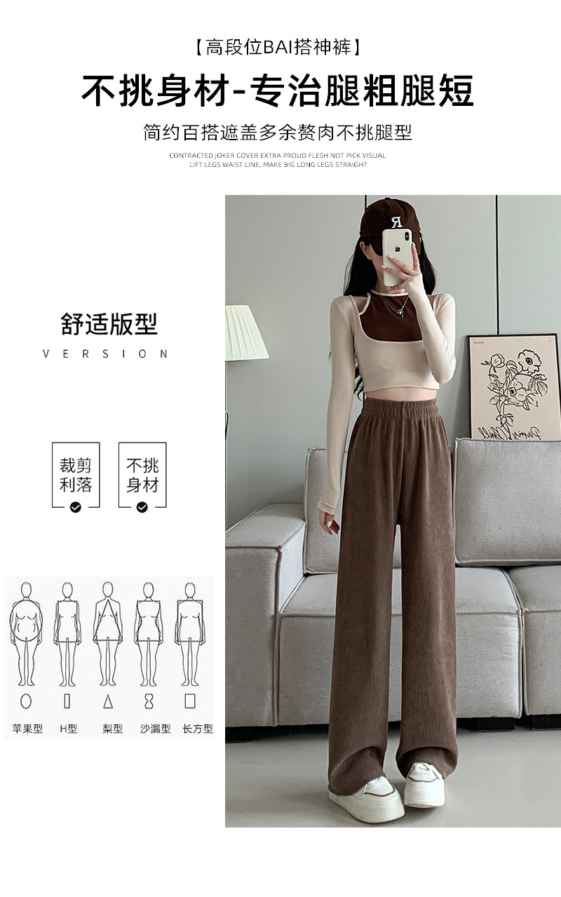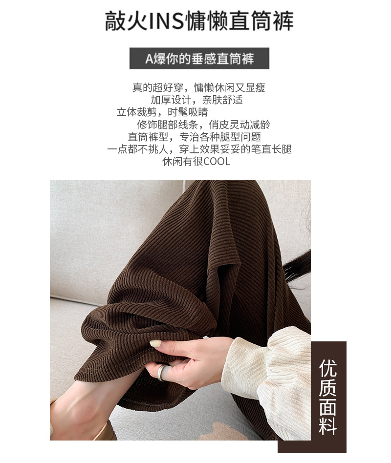 欧棉绒高克重雪尼尔阔腿裤女裤子女款秋冬宽松直筒休闲拖地长裤