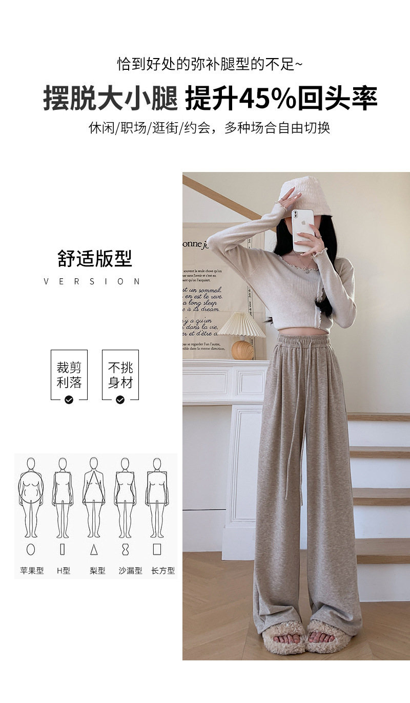 糯米裤女裤子春秋新款慵懒软糯直筒拖地长裤显瘦宽松抖抖裤阔腿裤