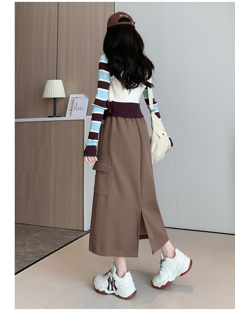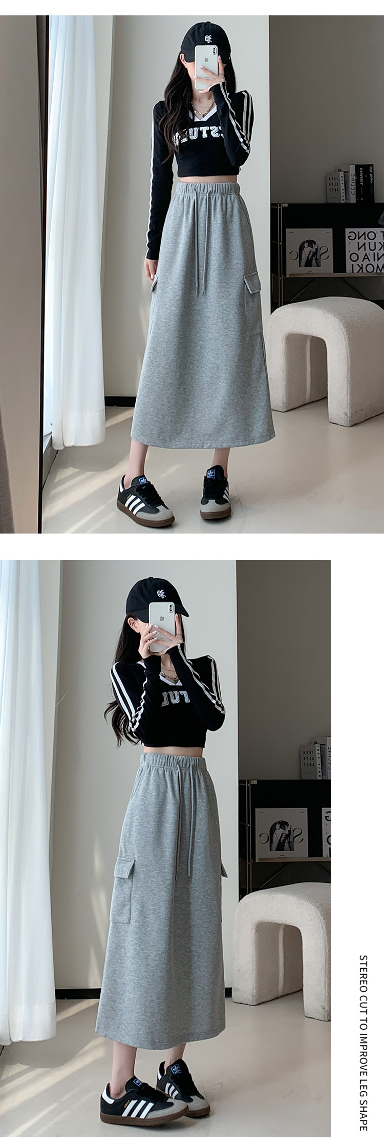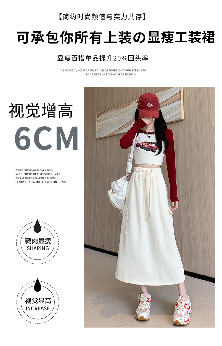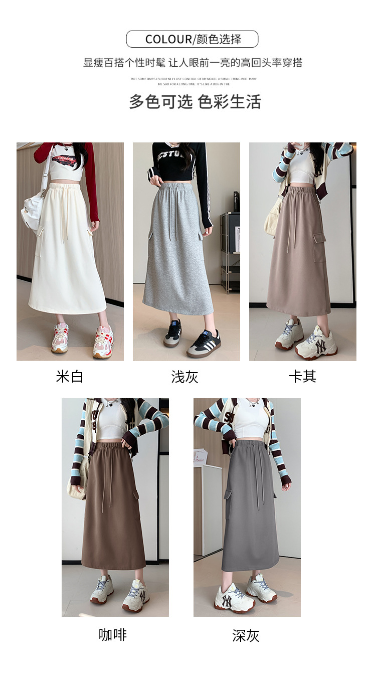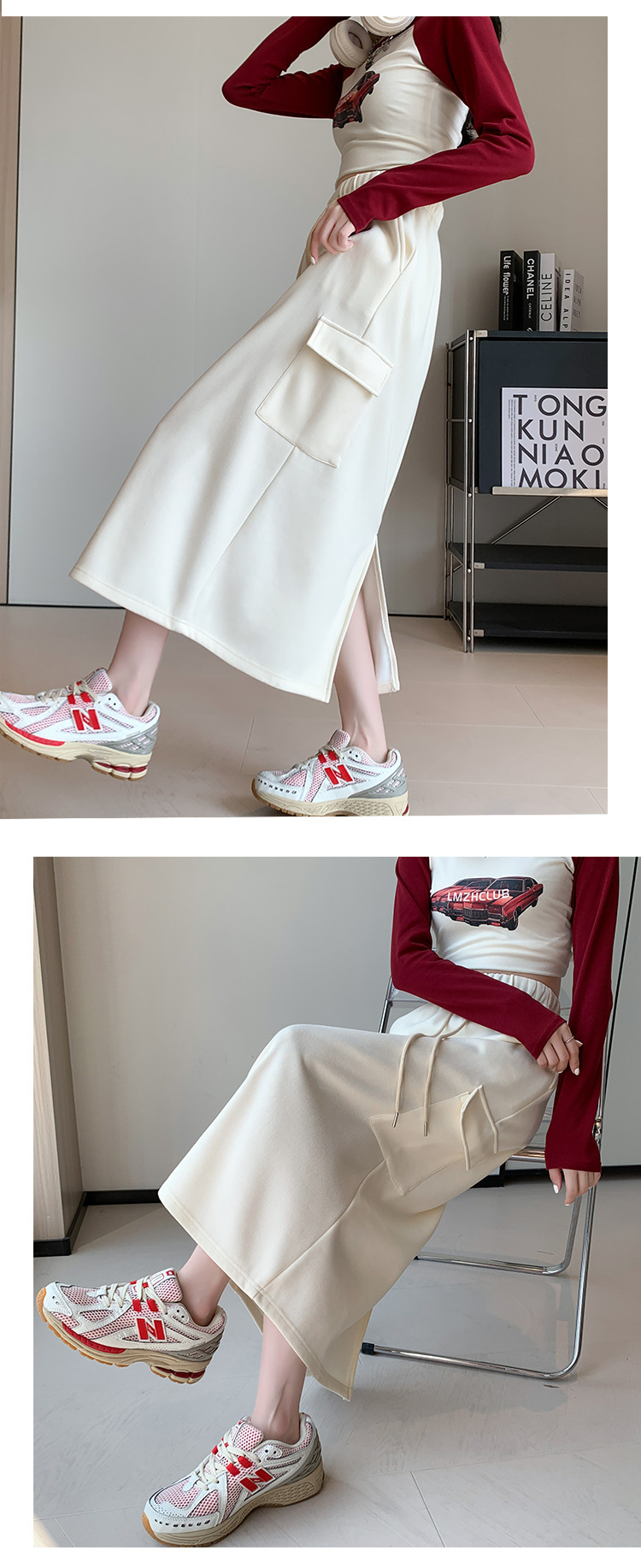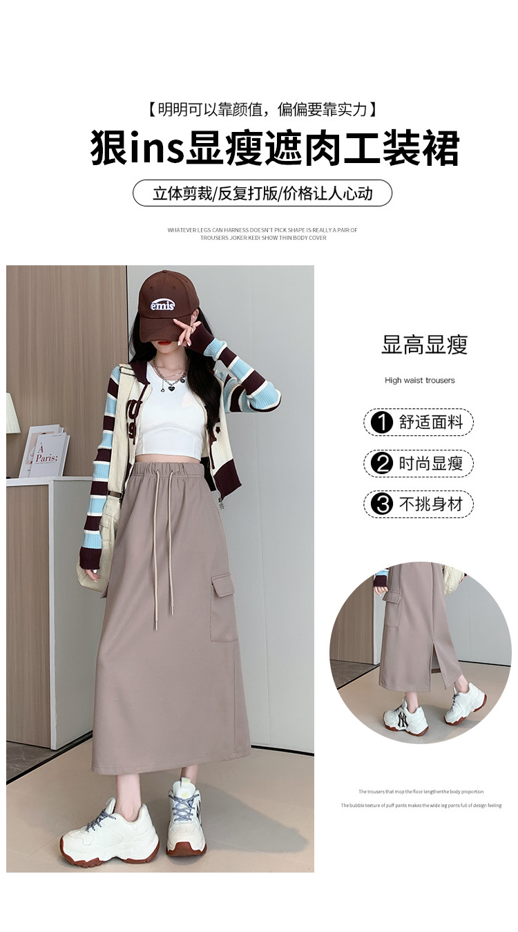 运动风半身裙女秋季新款设计感开叉高腰中长款裙子显瘦直筒工装裙