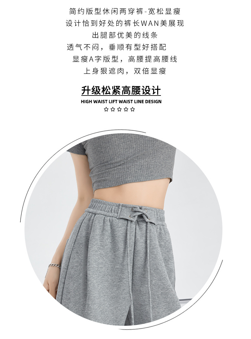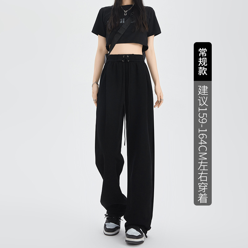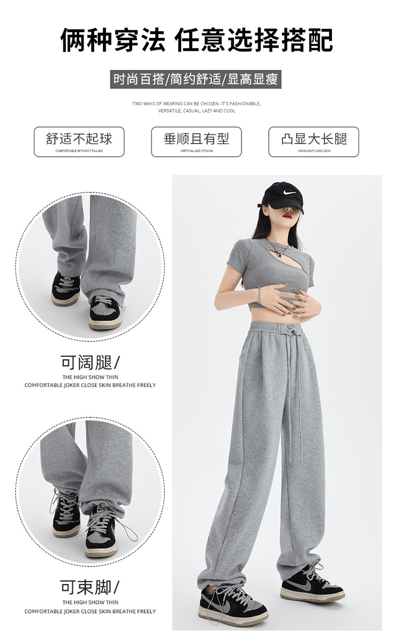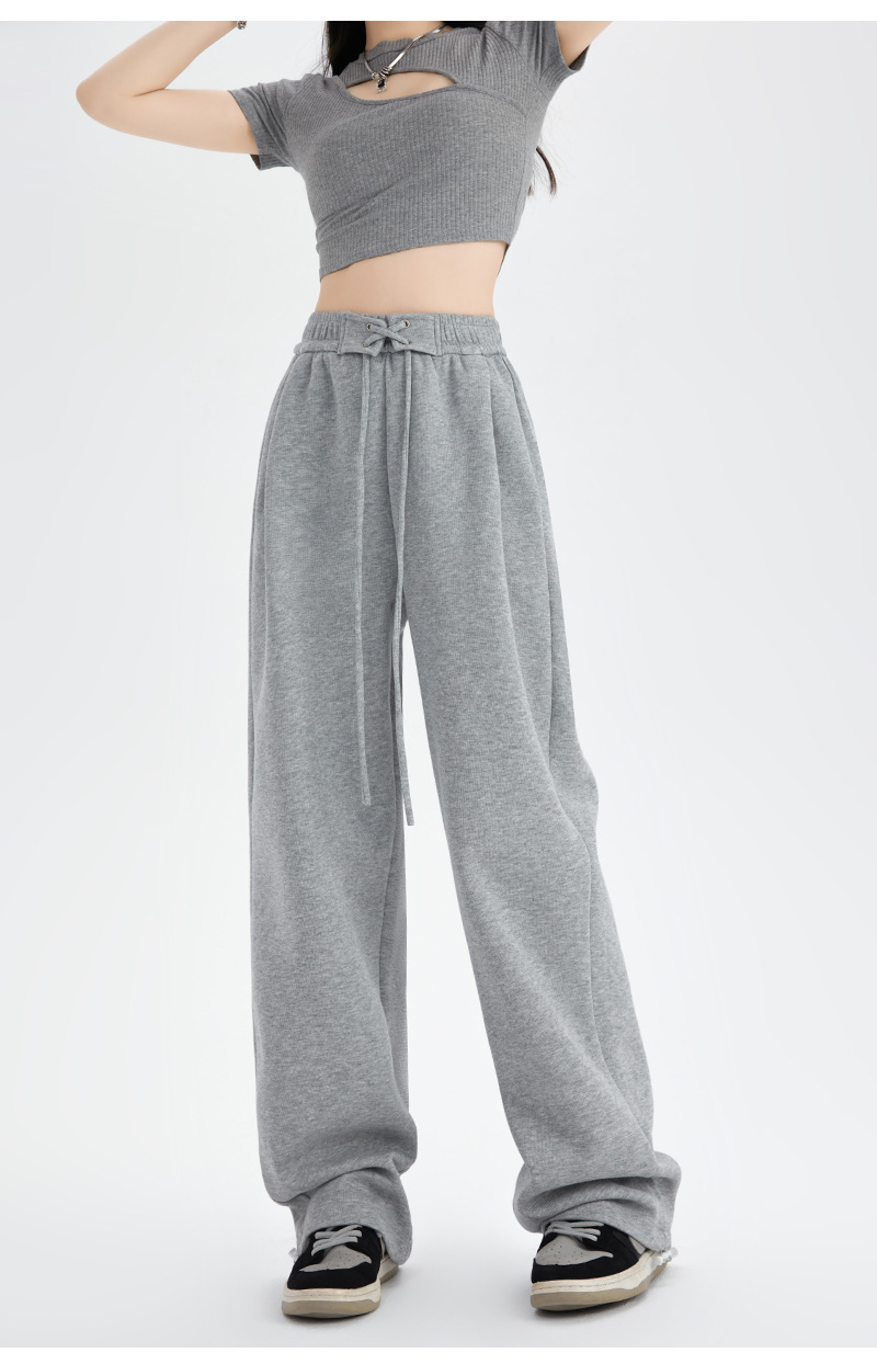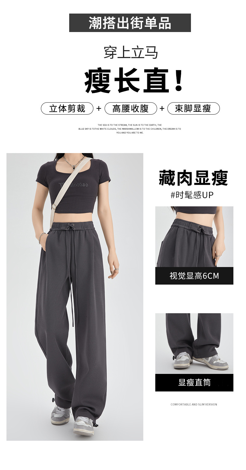 灰色运动裤女装裤子女秋季新款显瘦高腰阔腿裤直筒拖地休闲卫裤