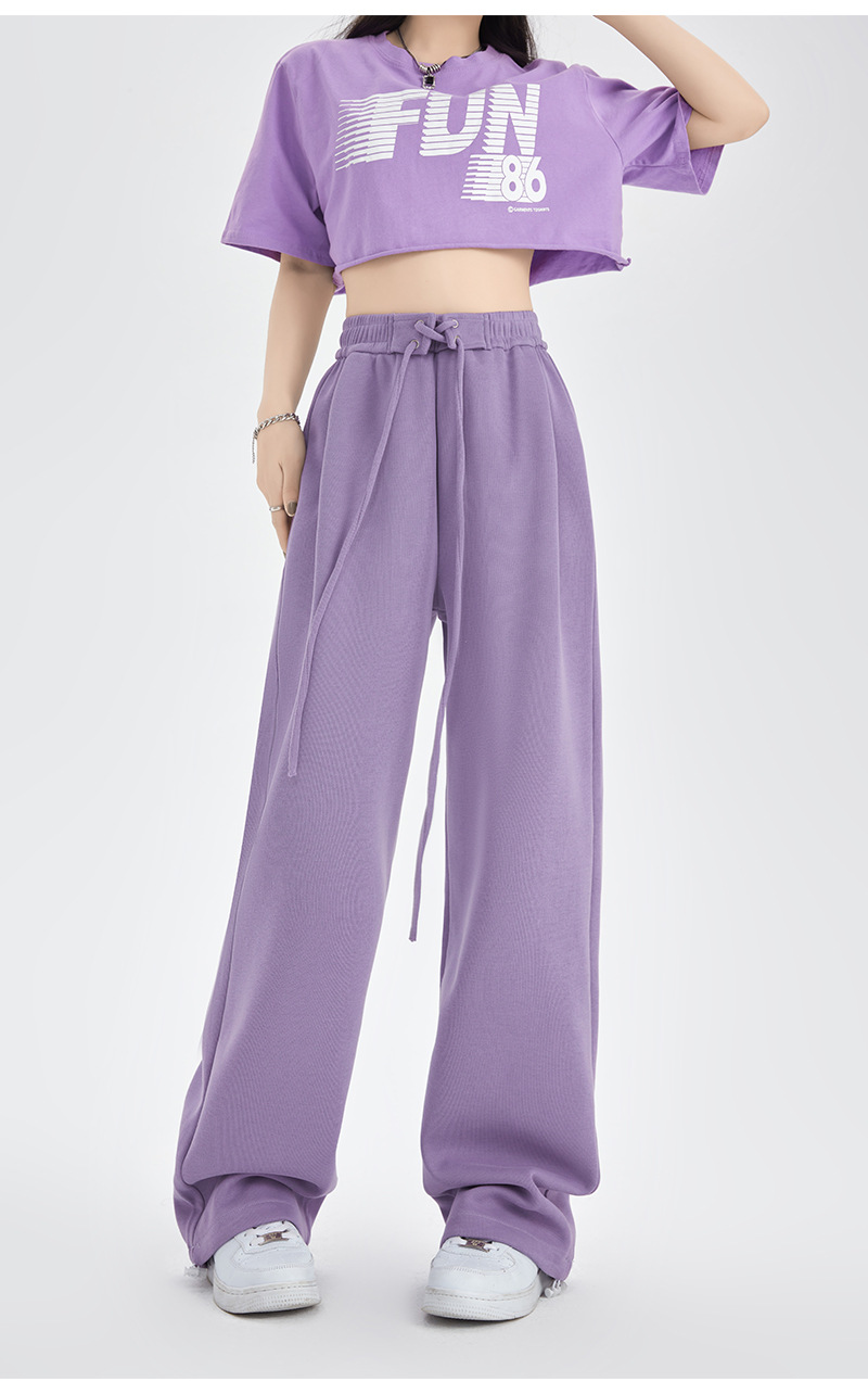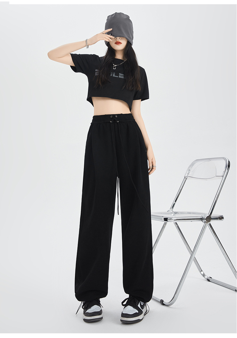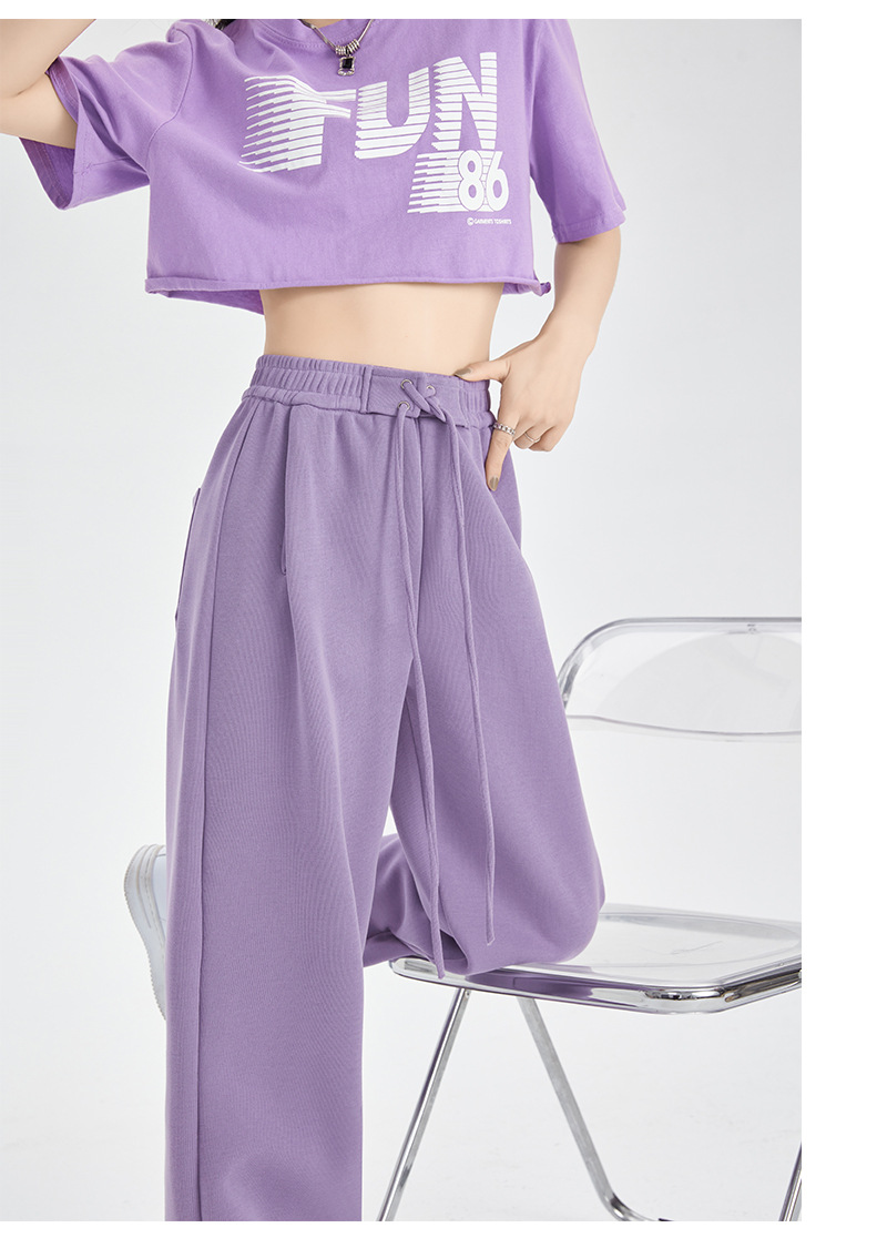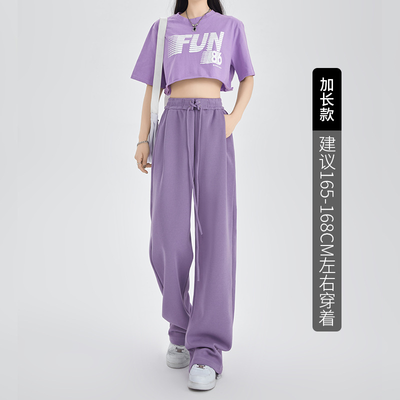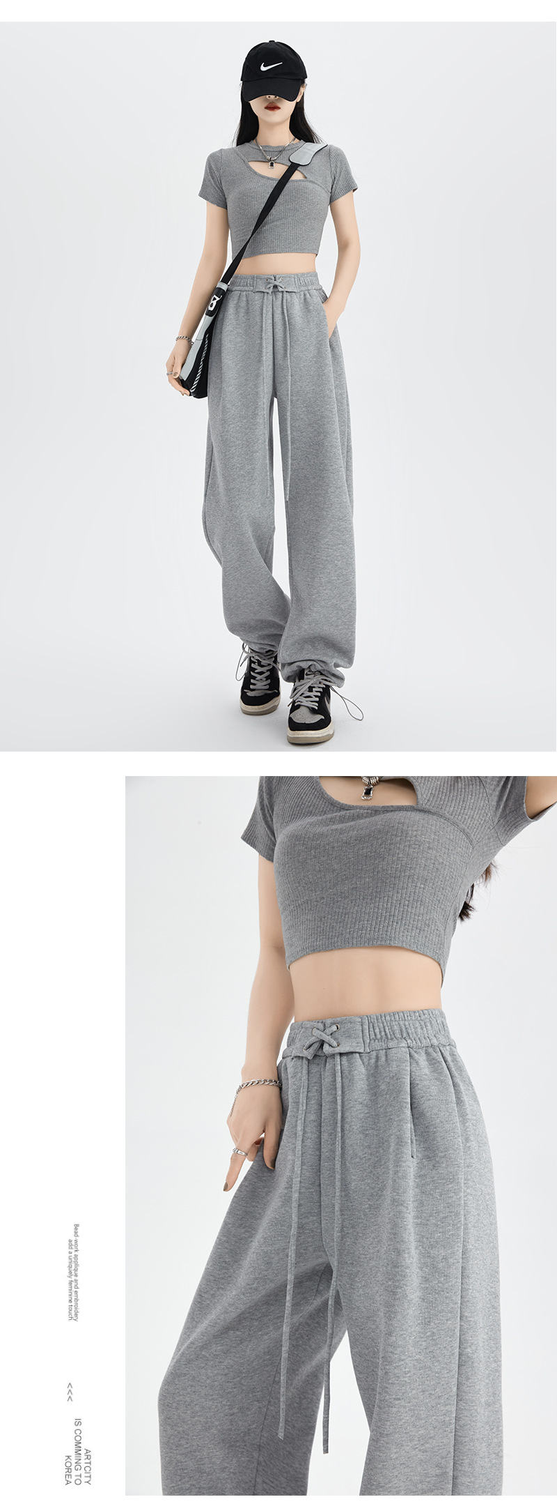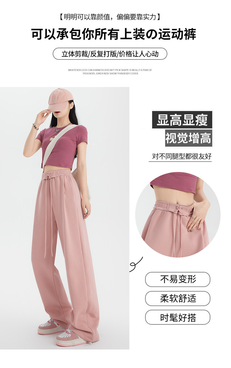 灰色运动裤女装裤子女秋季新款显瘦高腰阔腿裤直筒拖地休闲卫裤