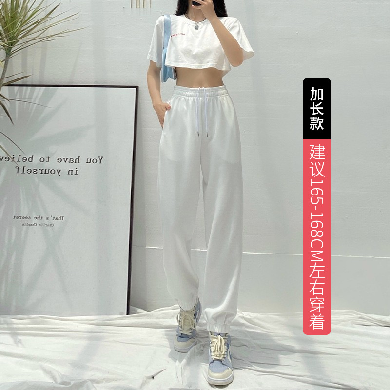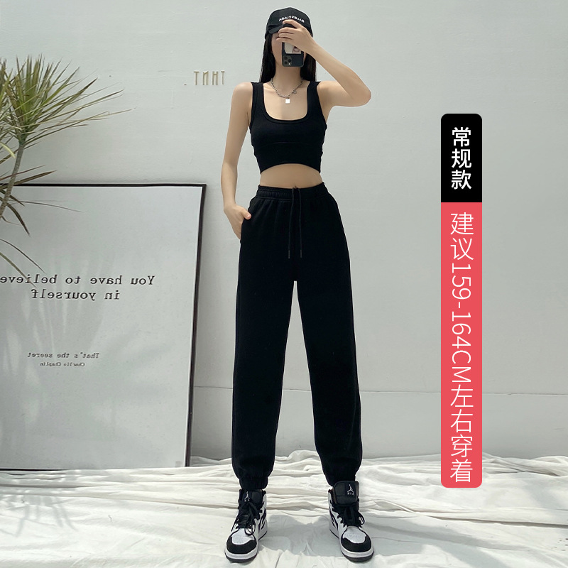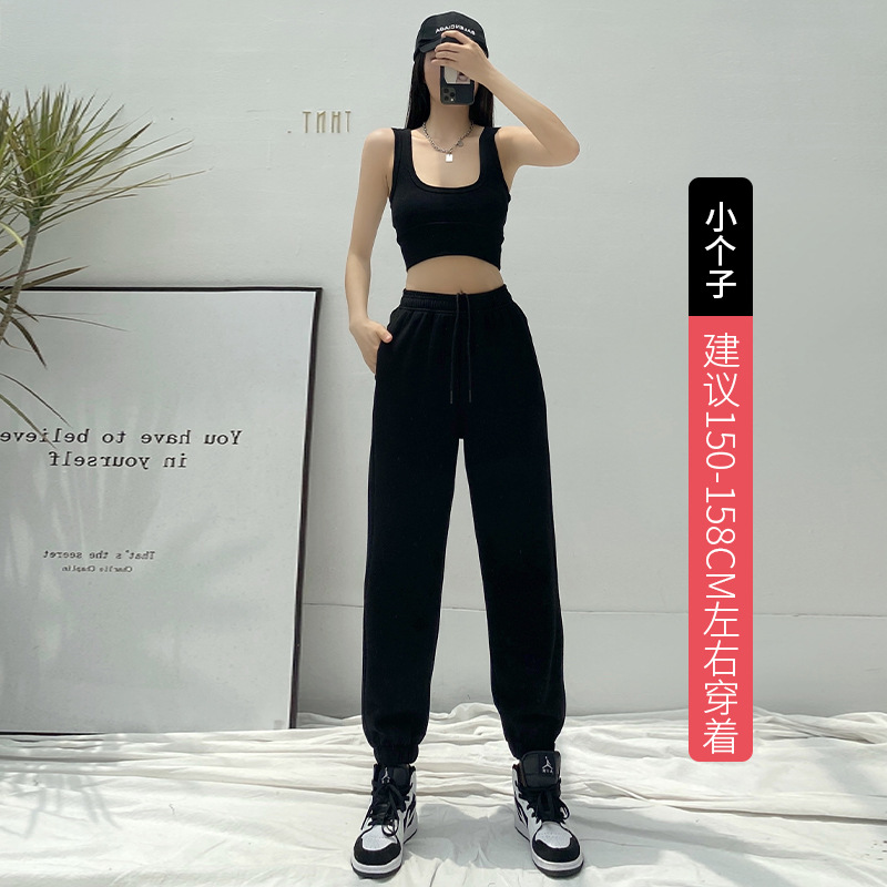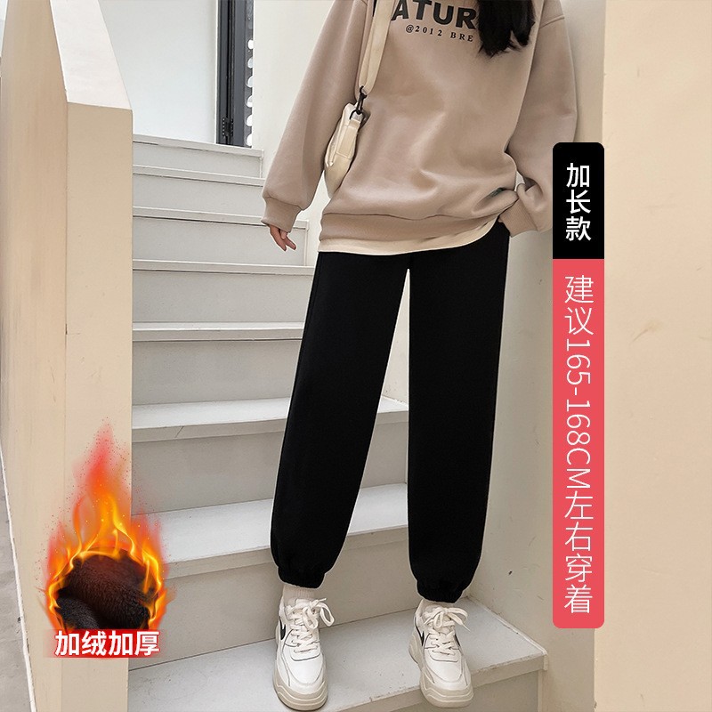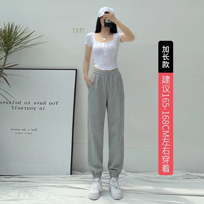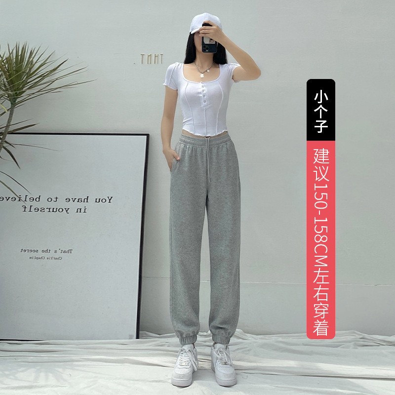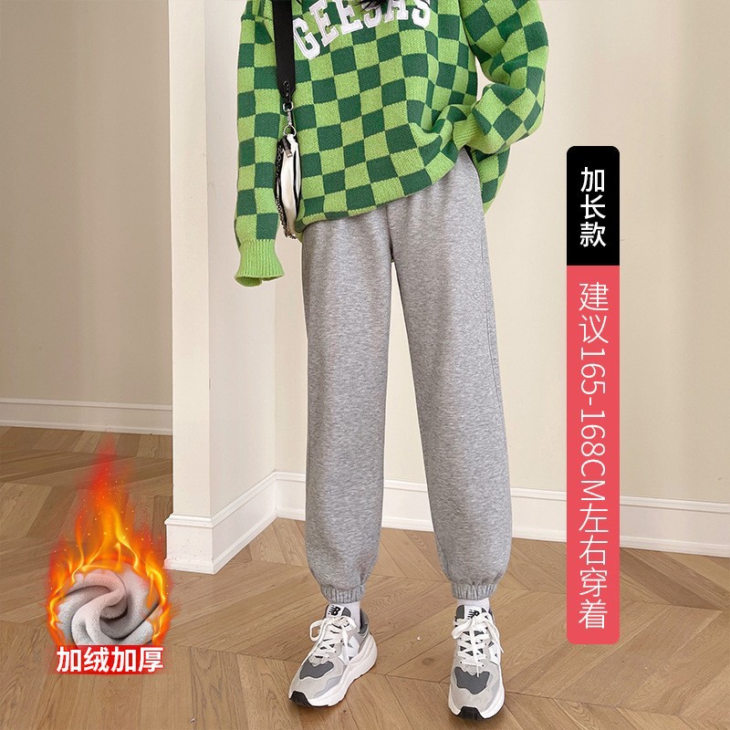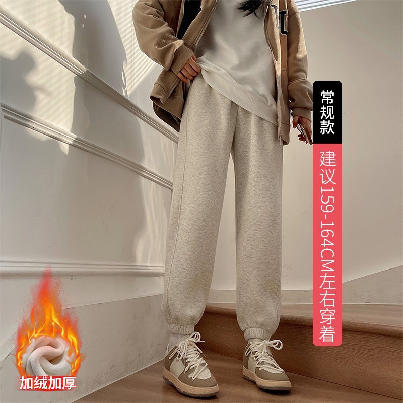 白灰运动裤女2023秋冬加绒裤宽松显瘦哈伦裤休闲小个子华夫格卫裤