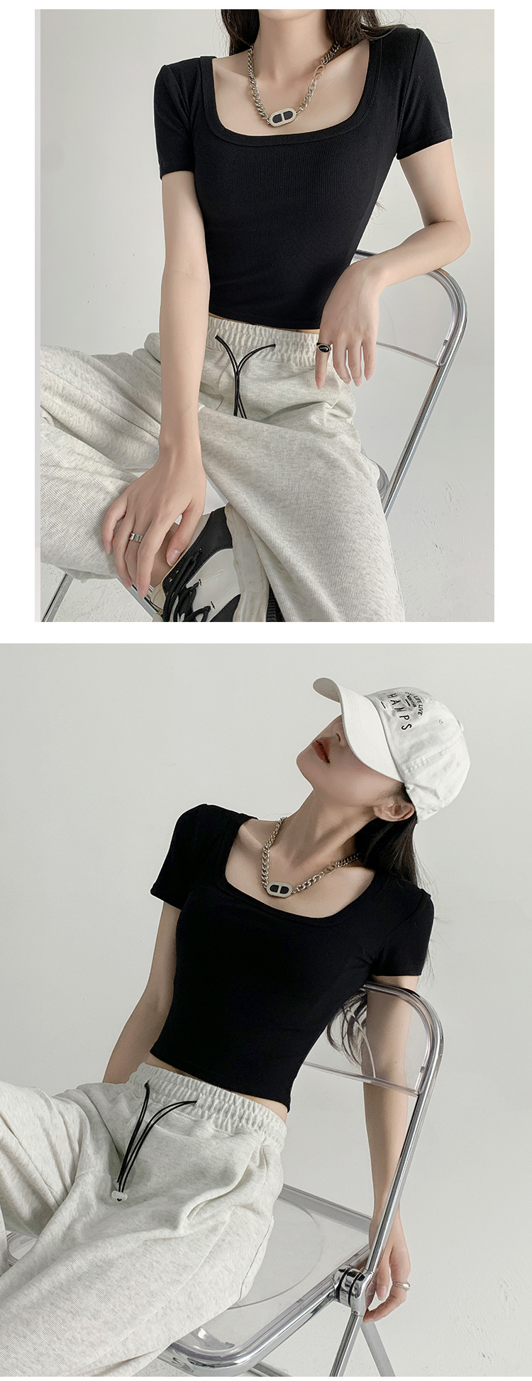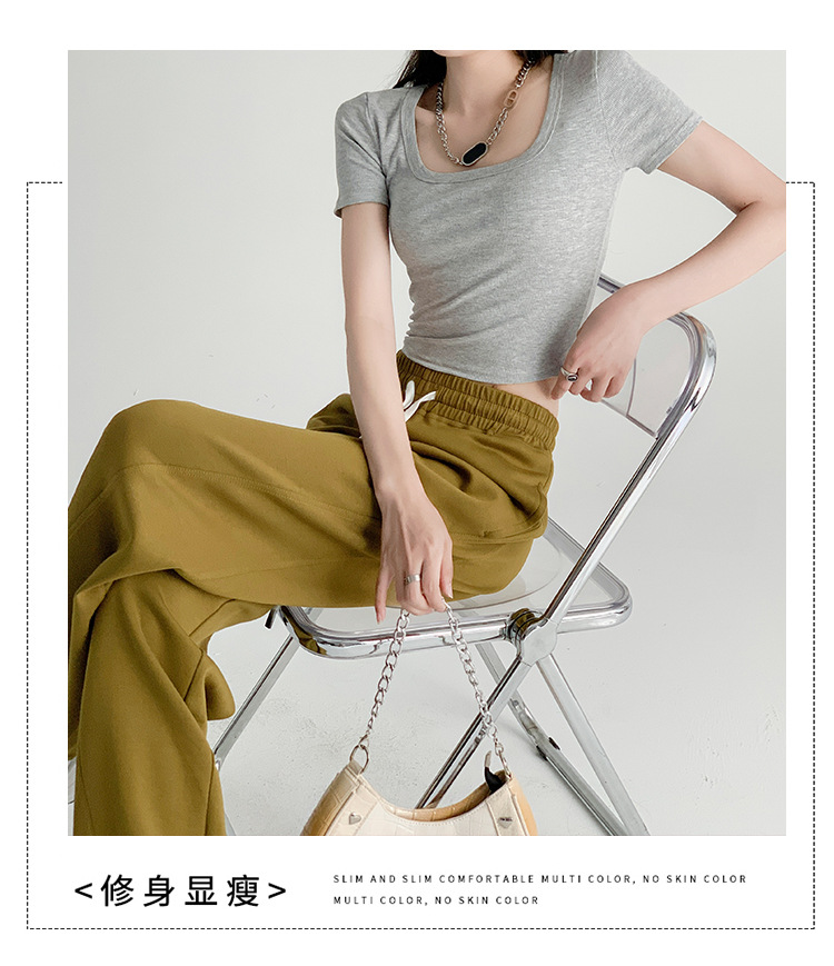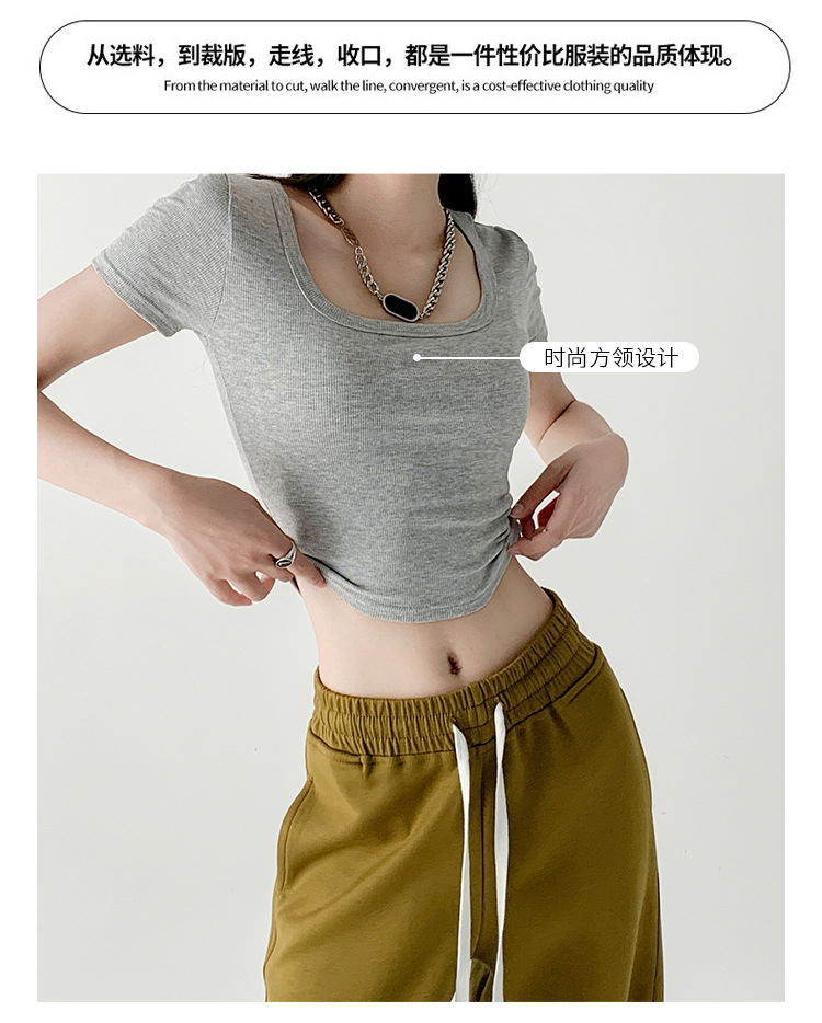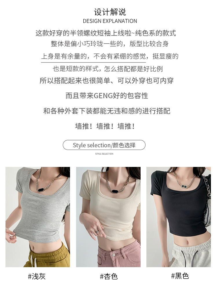 方领短袖T恤女夏季新款内搭修身短款背心打底衫显瘦外穿辣妹上衣