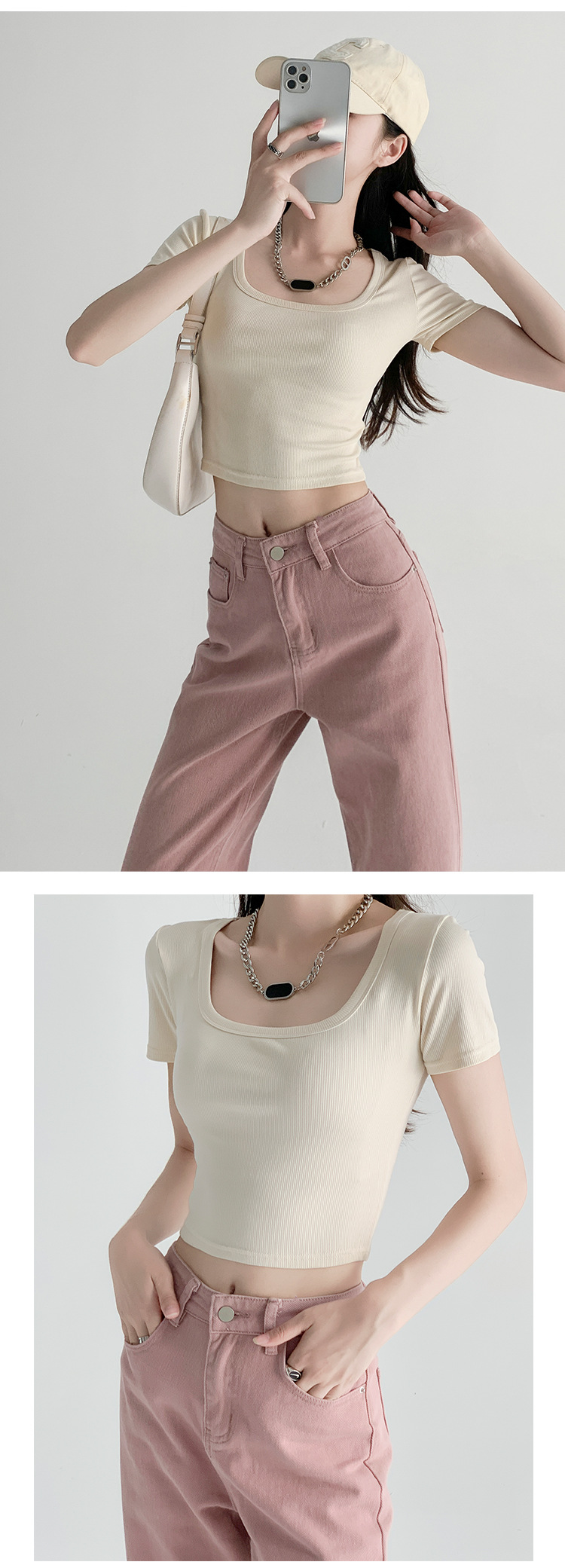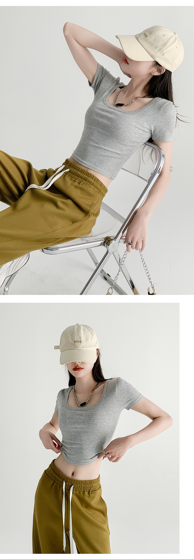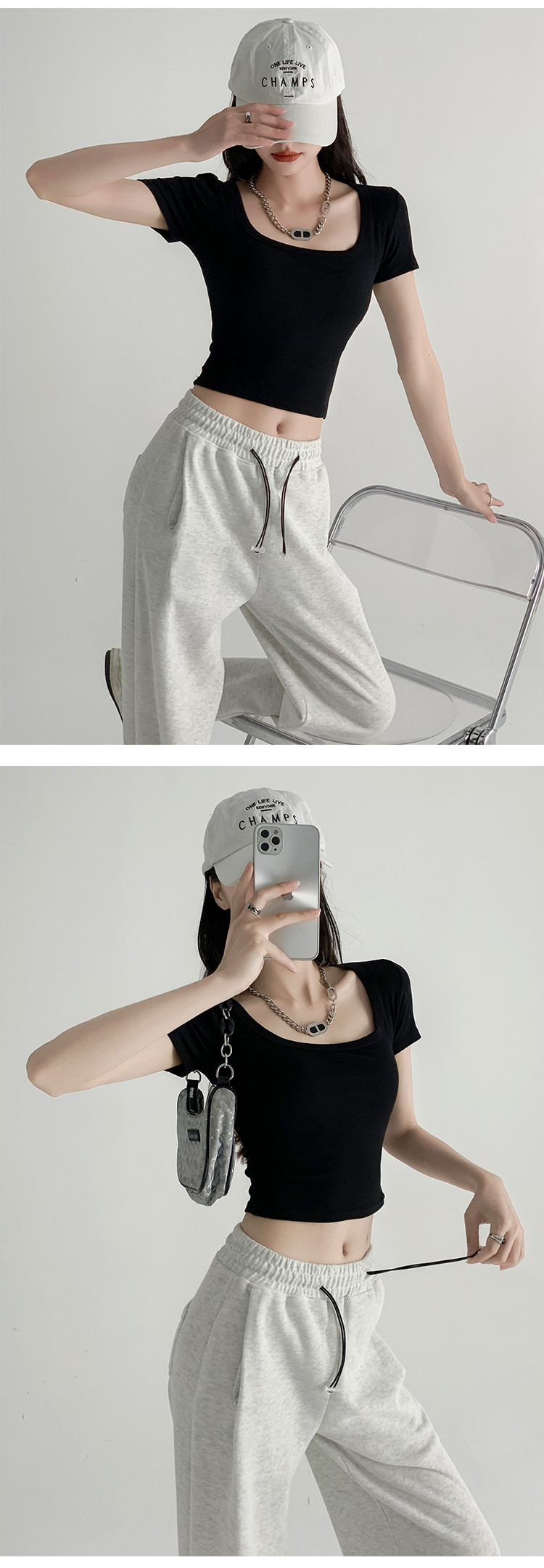 方领短袖T恤女夏季新款内搭修身短款背心打底衫显瘦外穿辣妹上衣