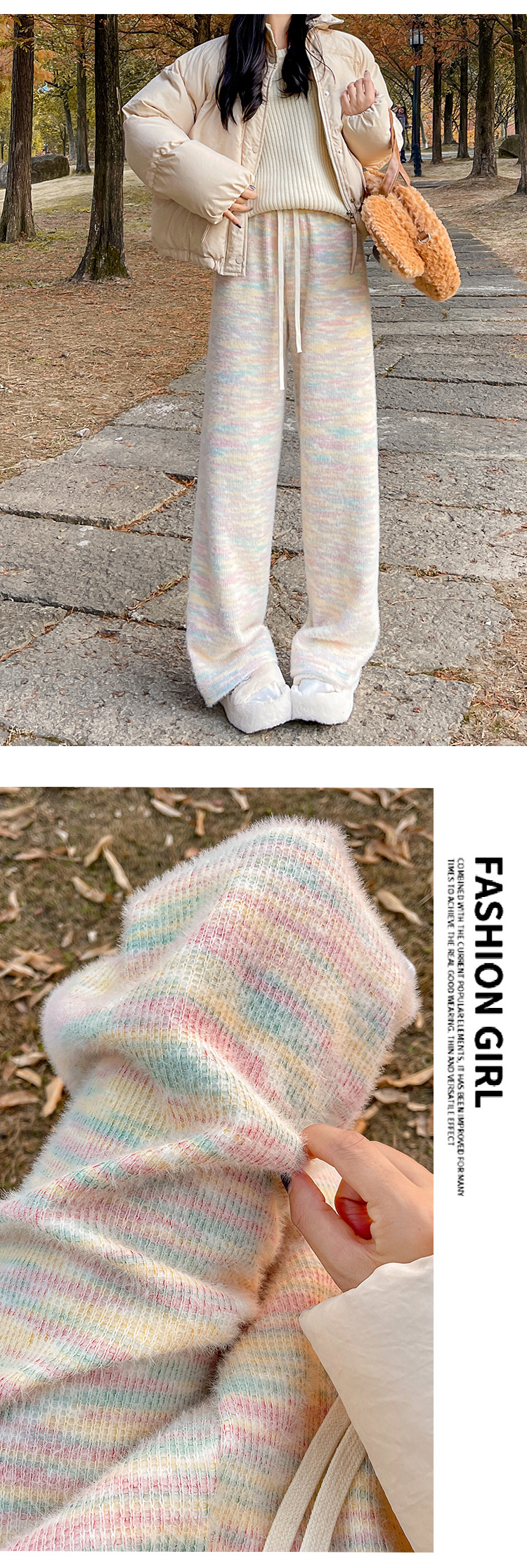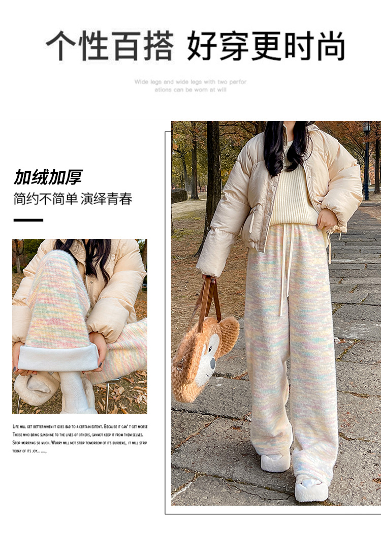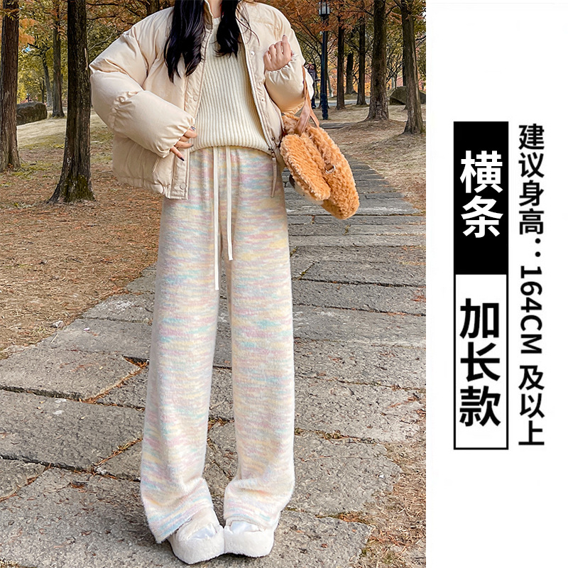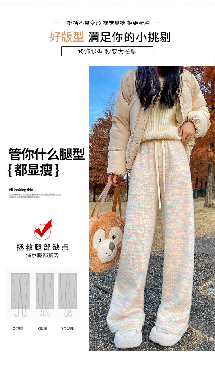 彩虹糯米裤女裤子女款秋冬新款休闲针织直筒裤垂感软糯加绒阔腿裤