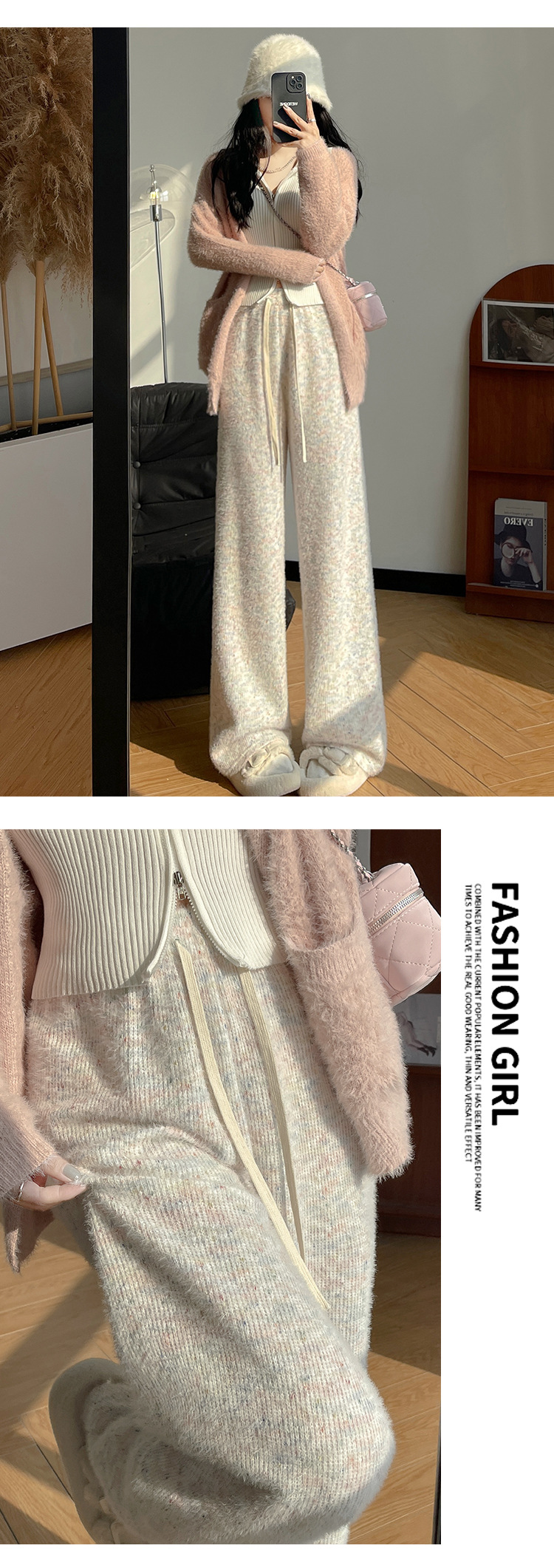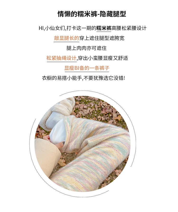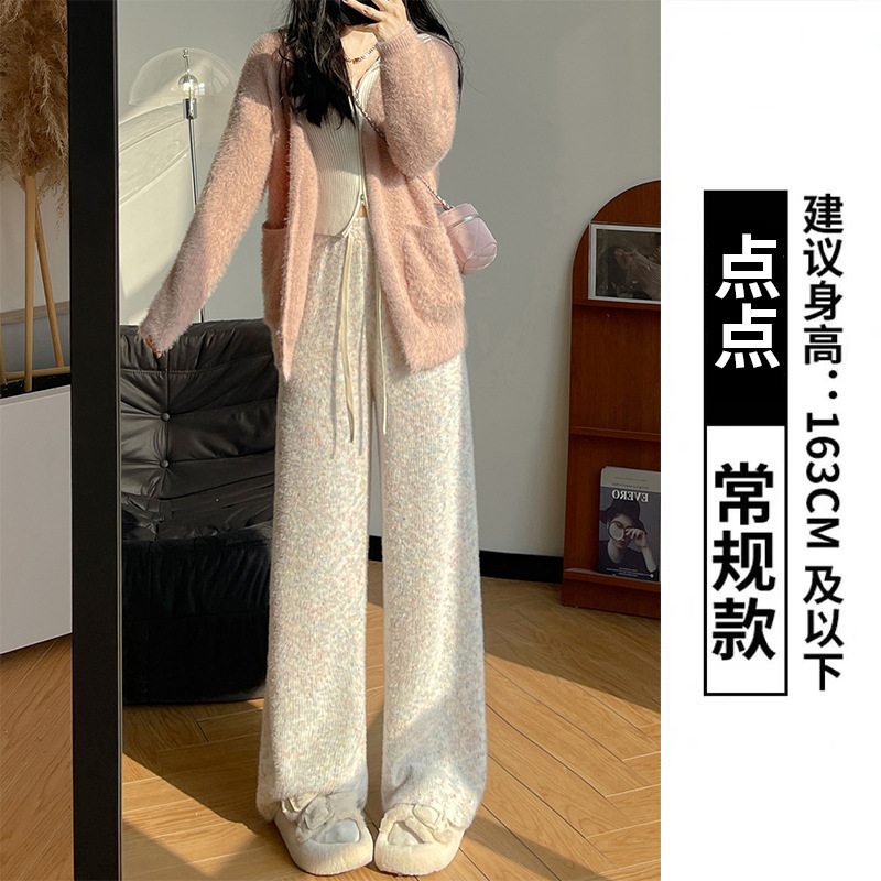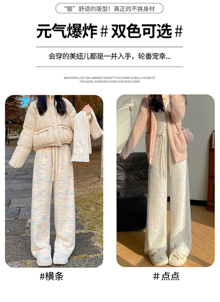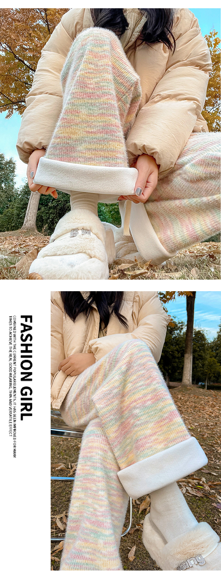 彩虹糯米裤女裤子女款秋冬新款休闲针织直筒裤垂感软糯加绒阔腿裤