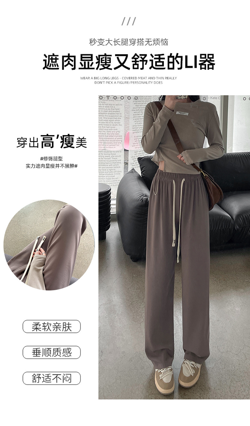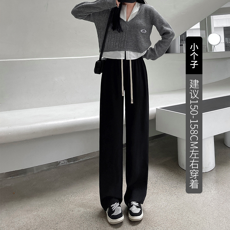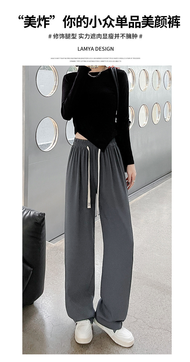 粉色阔腿裤垂坠感裤子女款夏季休闲高腰直筒裤小个子女装西装裤