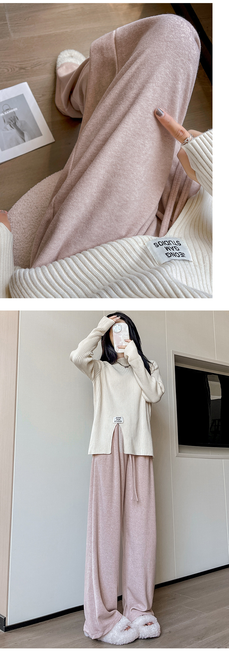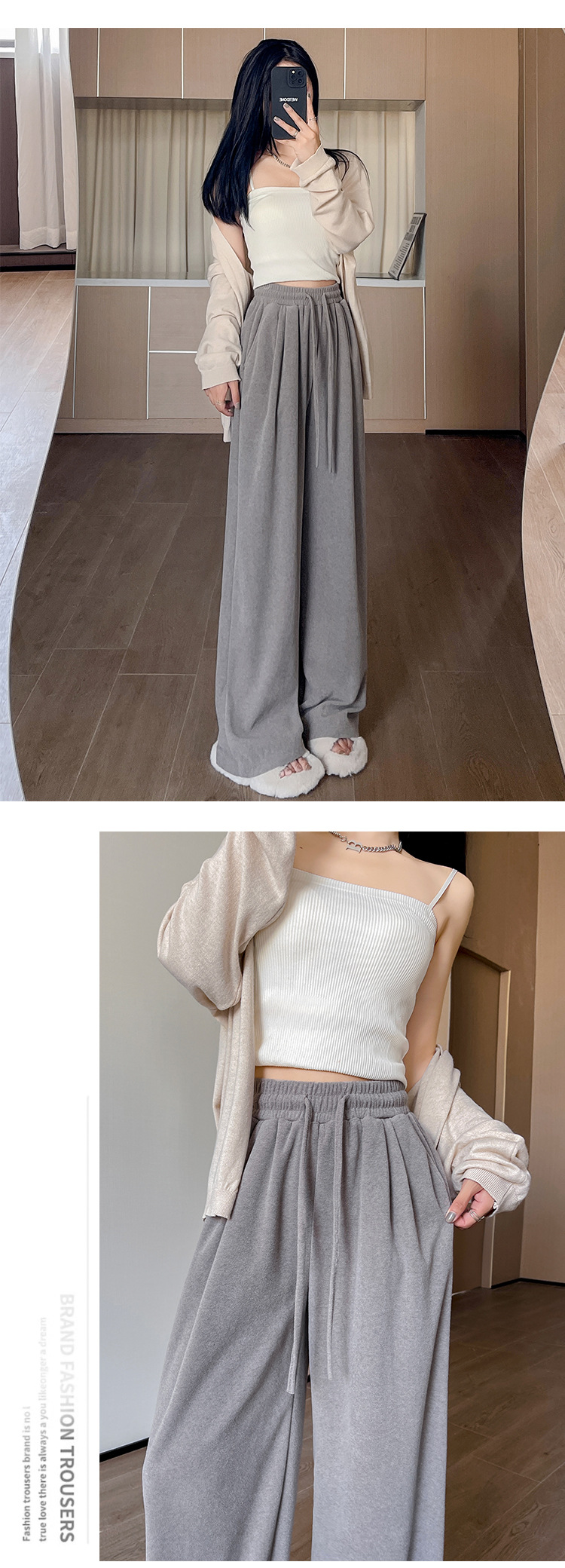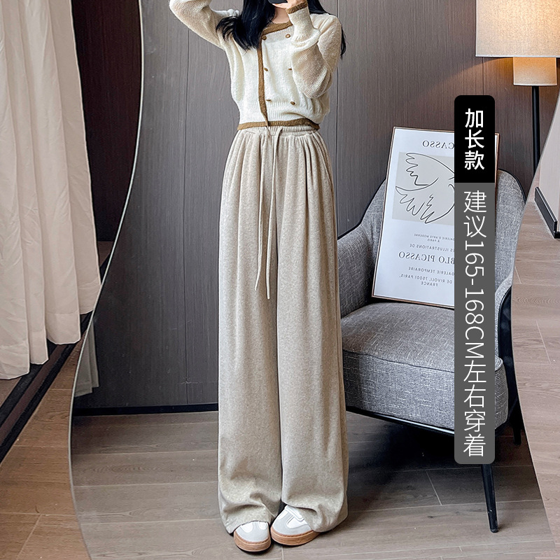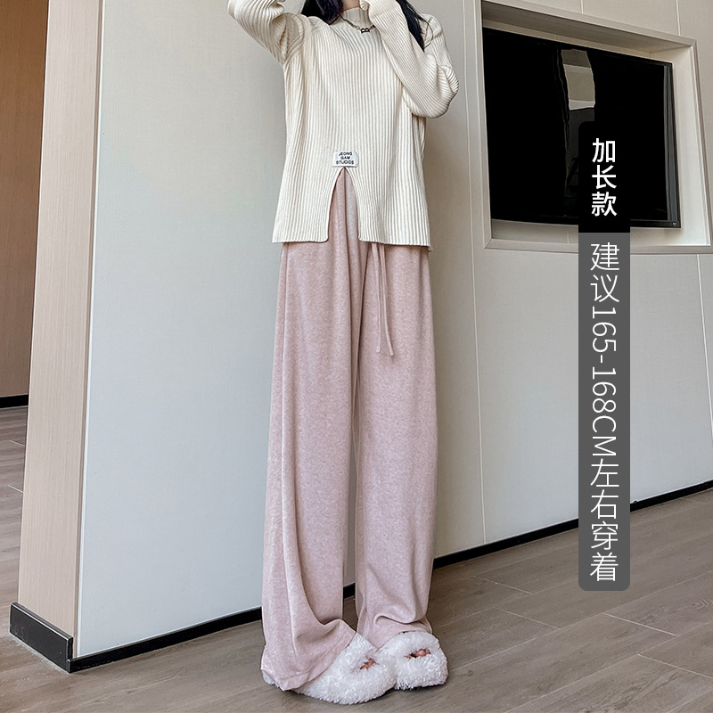 米白阔腿裤女秋季新款宽松垂感慵懒拖地裤软糯毛巾裤直筒休闲裤子