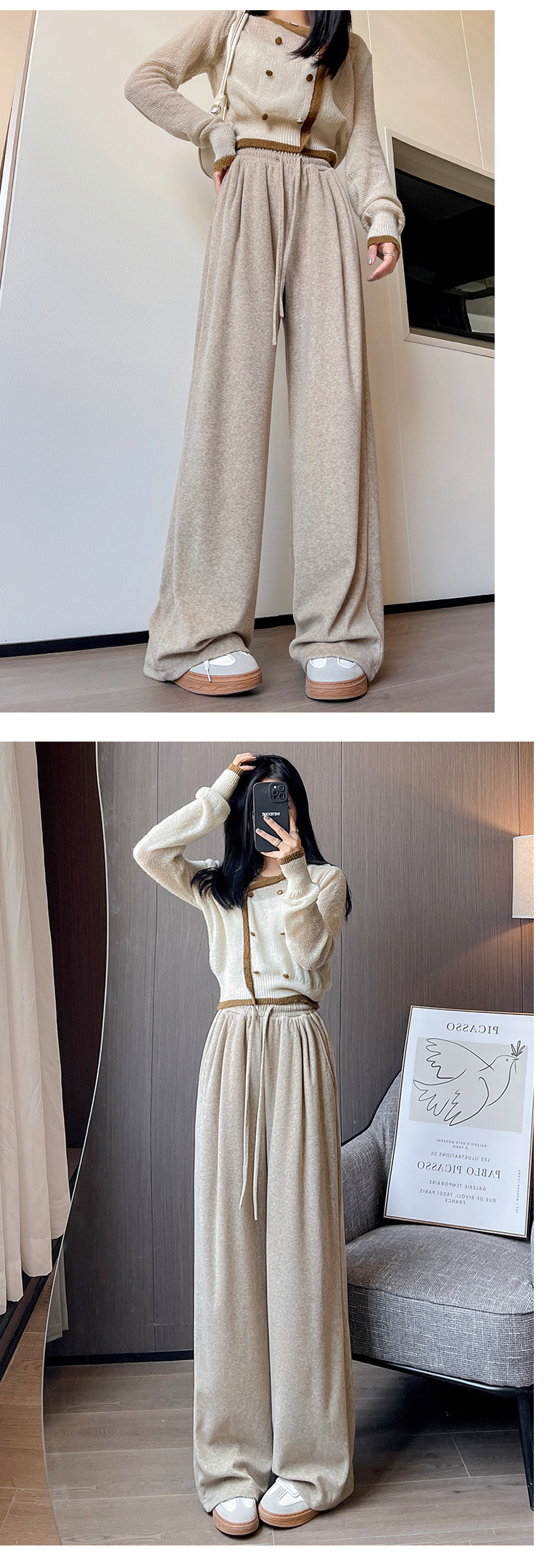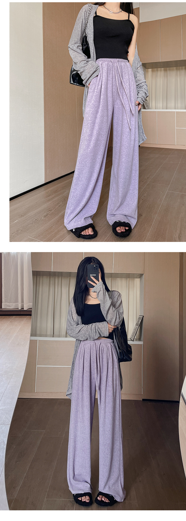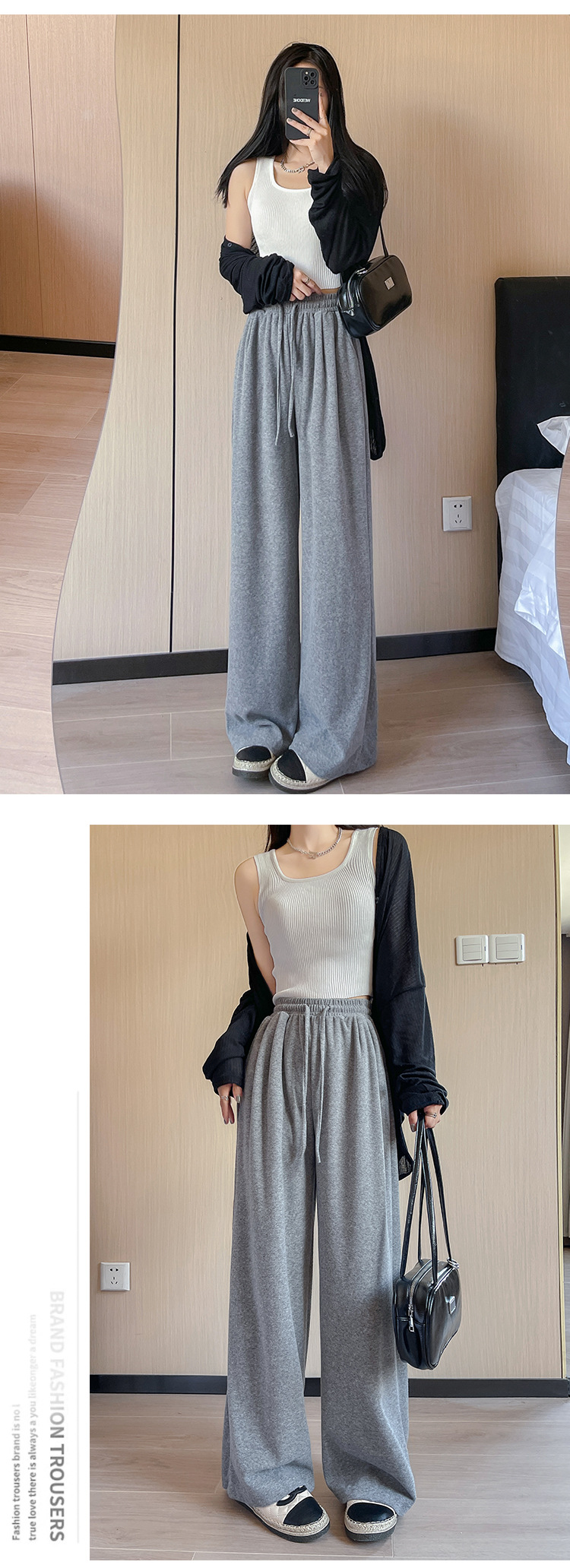 米白阔腿裤女秋季新款宽松垂感慵懒拖地裤软糯毛巾裤直筒休闲裤子