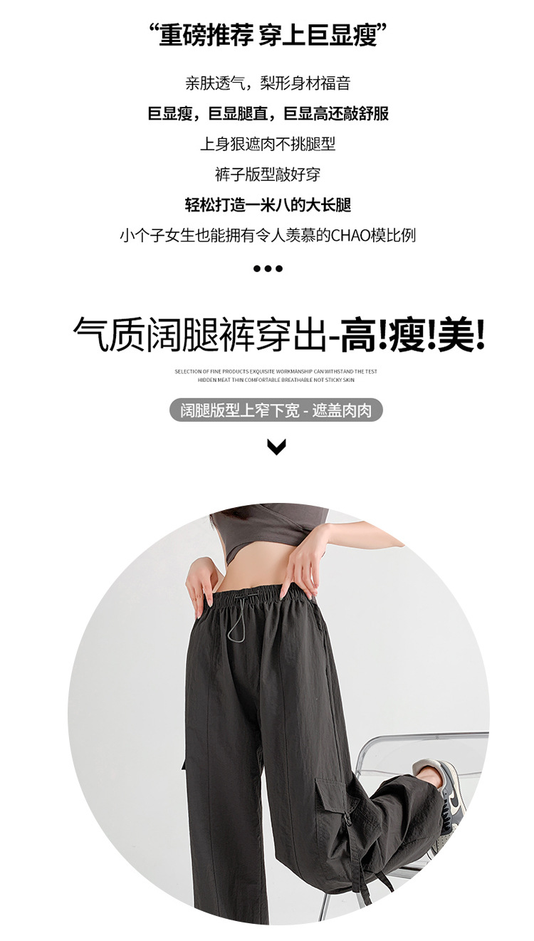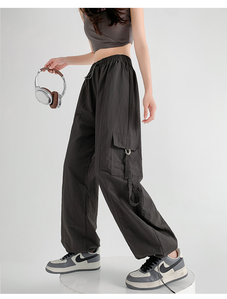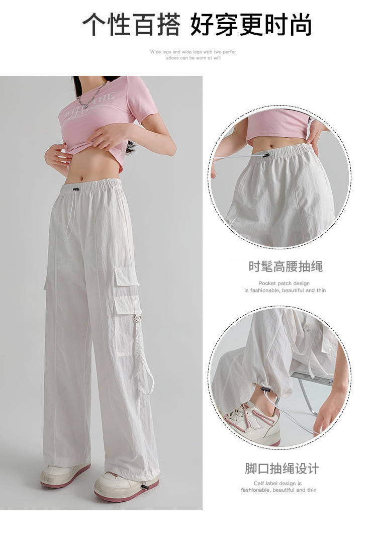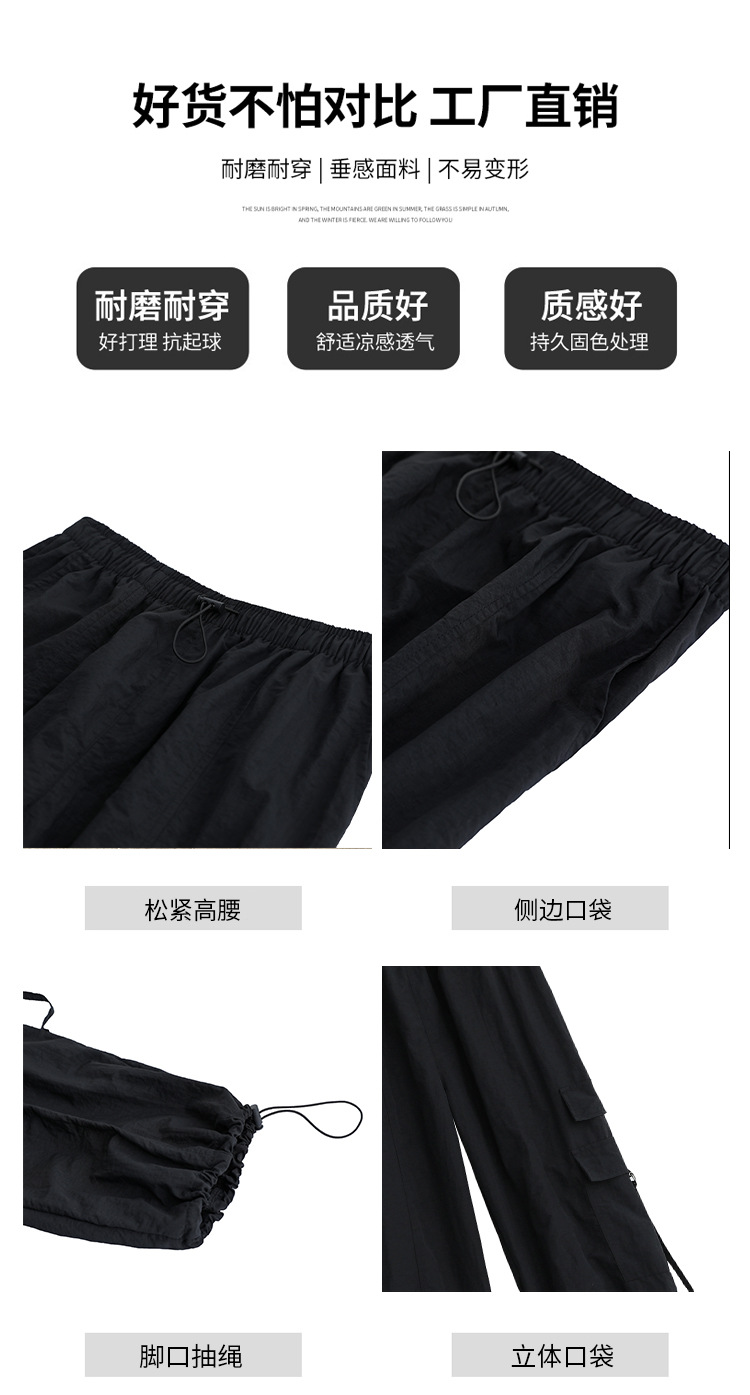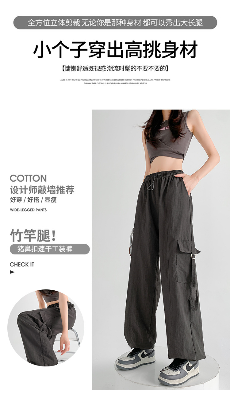 锦纶工装裤女裤子女款秋季新款高腰美式阔腿裤卫裤休闲速干运动裤