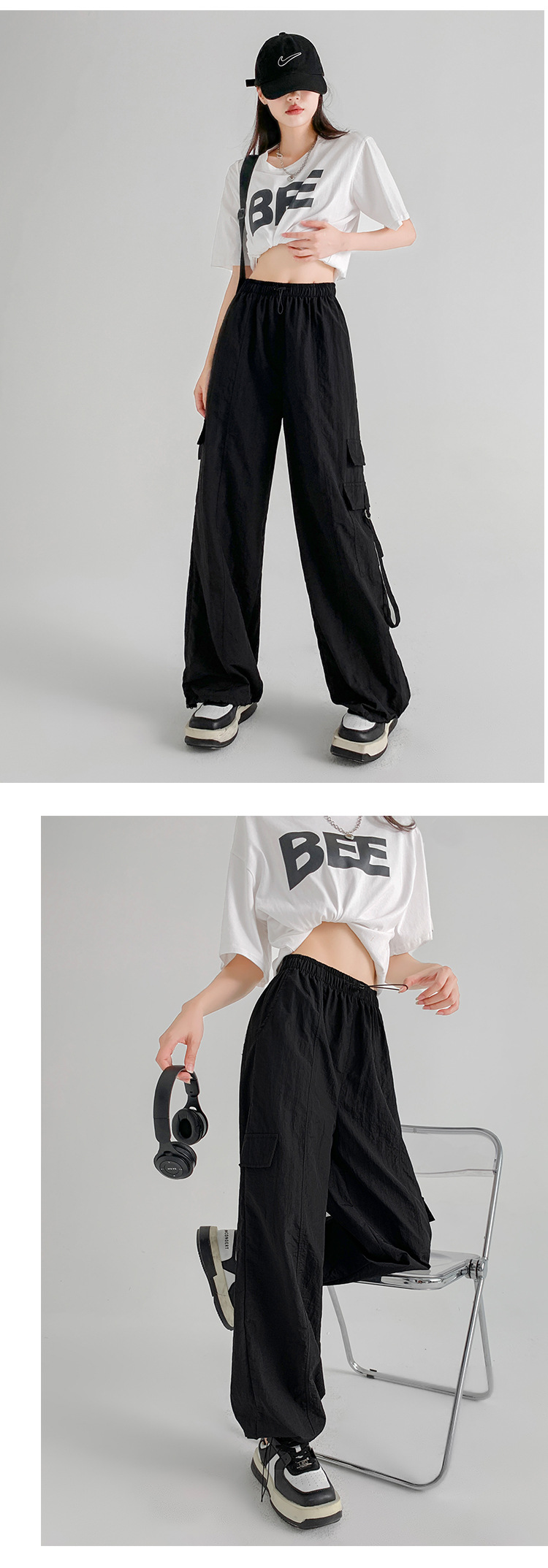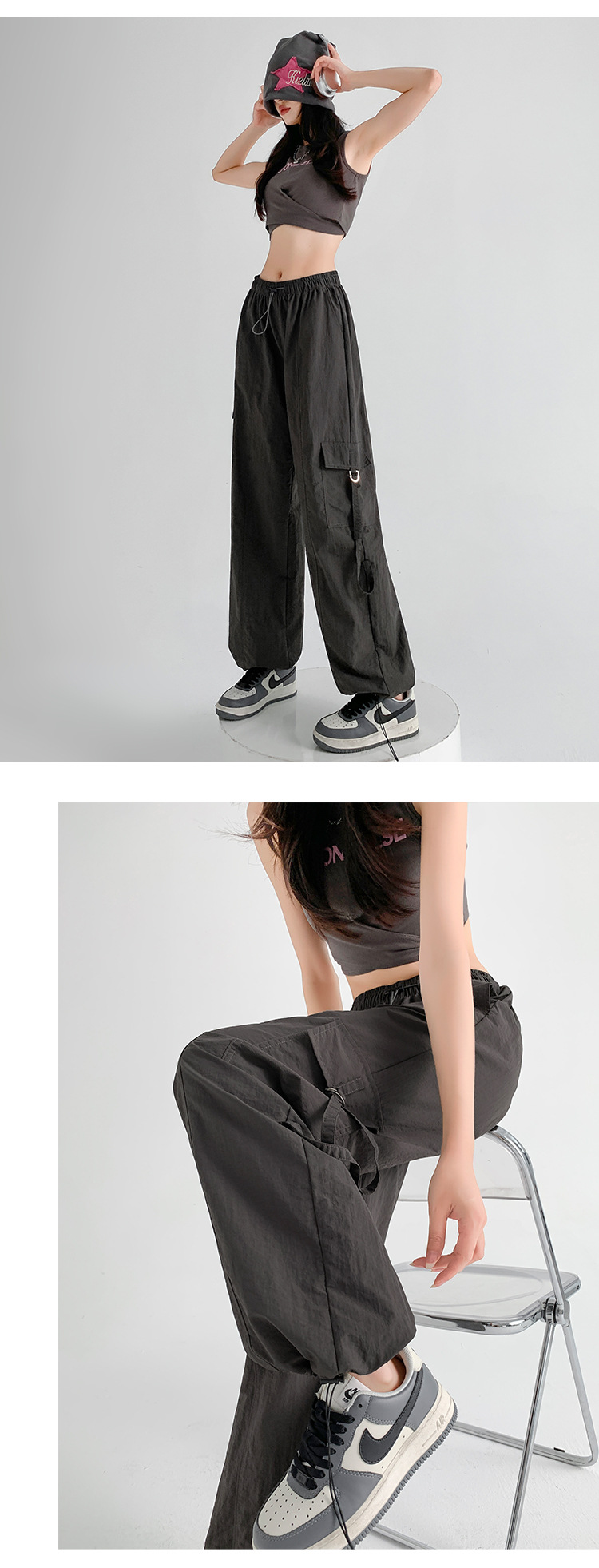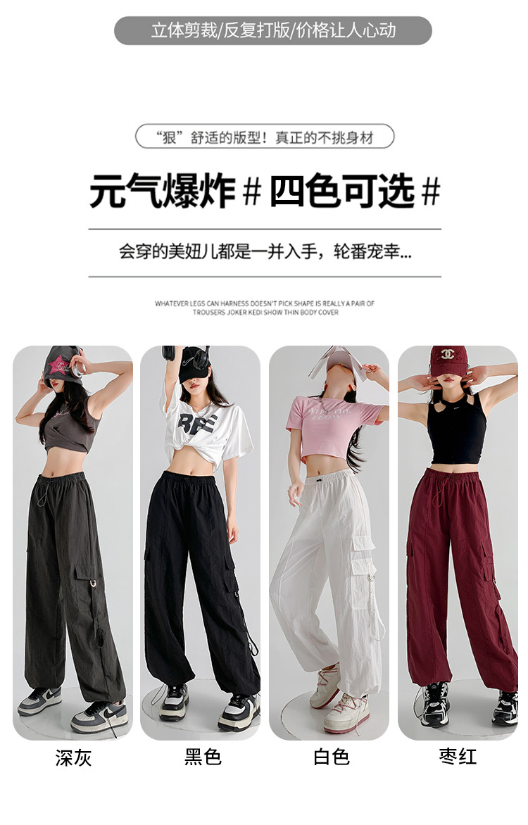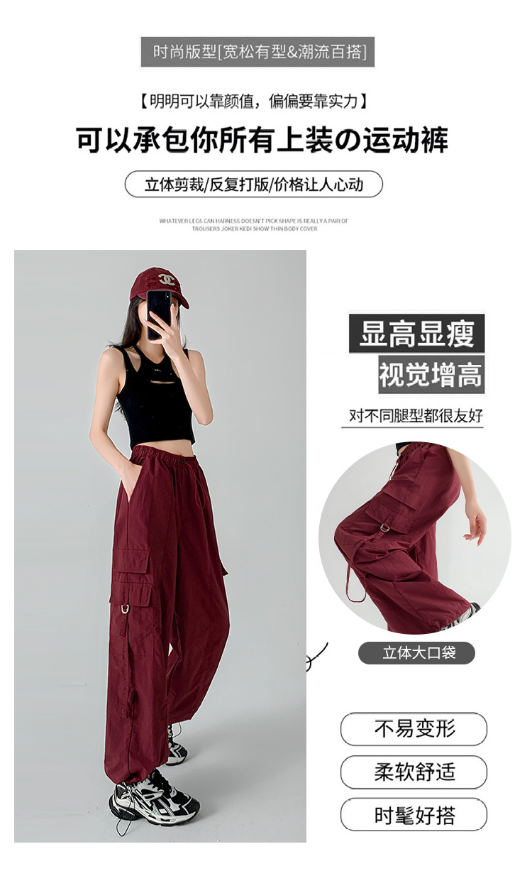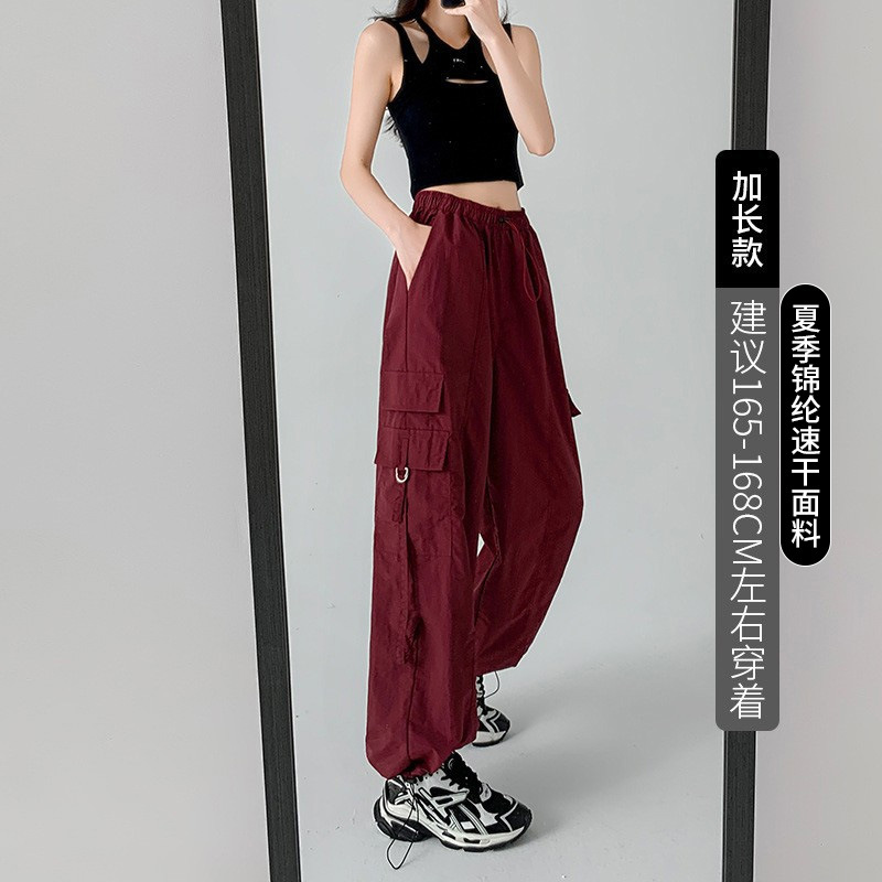 锦纶工装裤女裤子女款秋季新款高腰美式阔腿裤卫裤休闲速干运动裤
