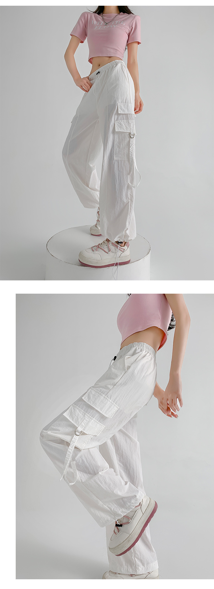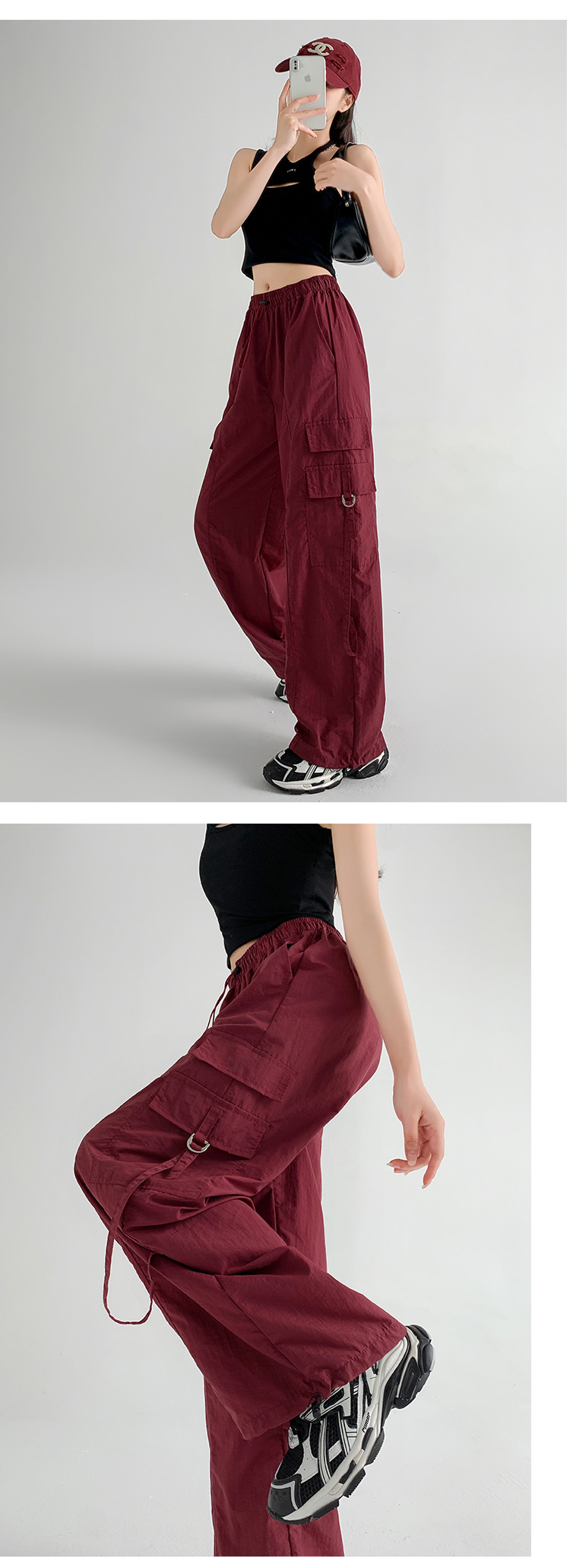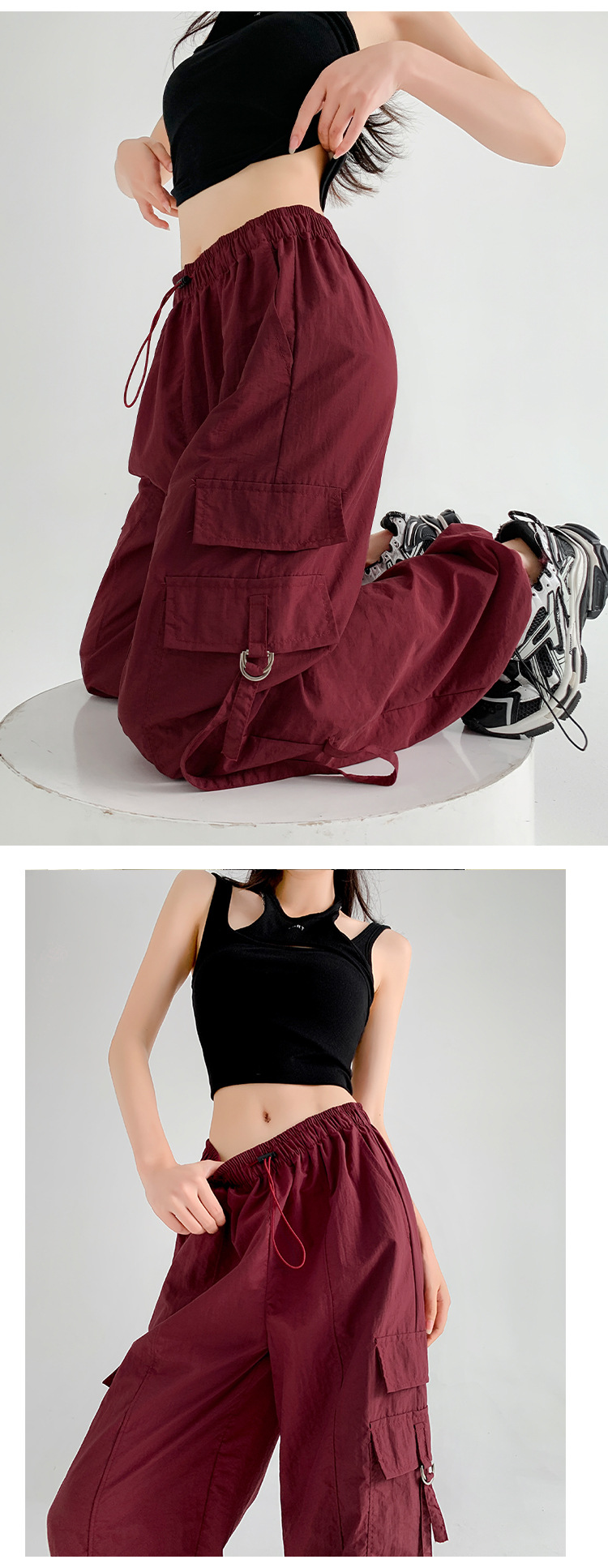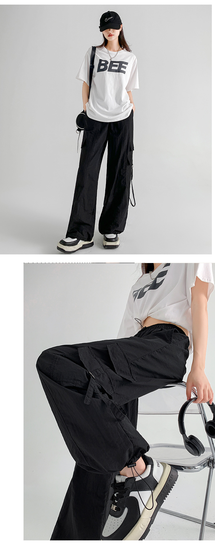 锦纶工装裤女裤子女款秋季新款高腰美式阔腿裤卫裤休闲速干运动裤