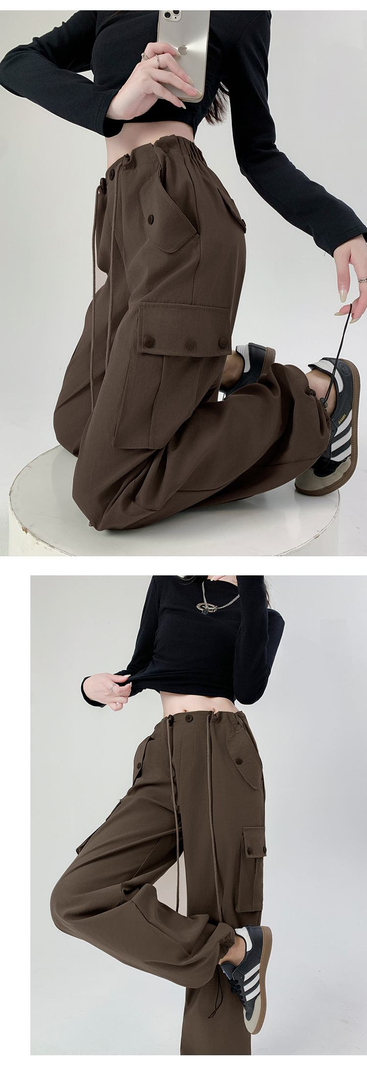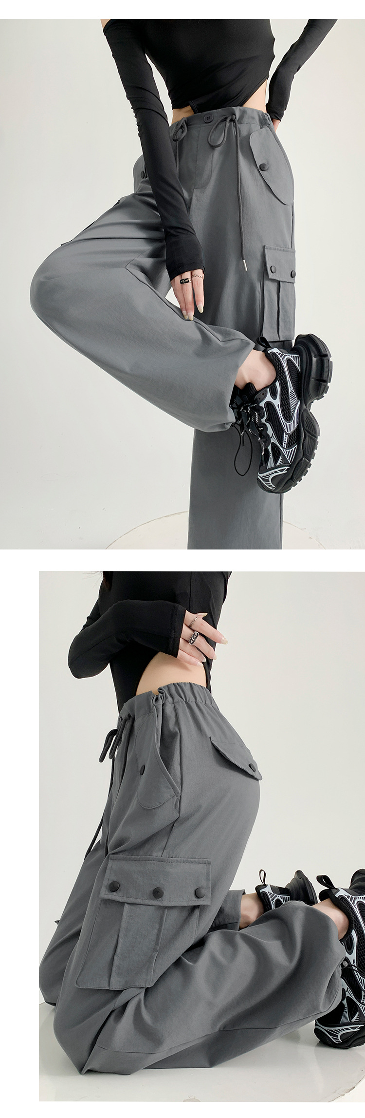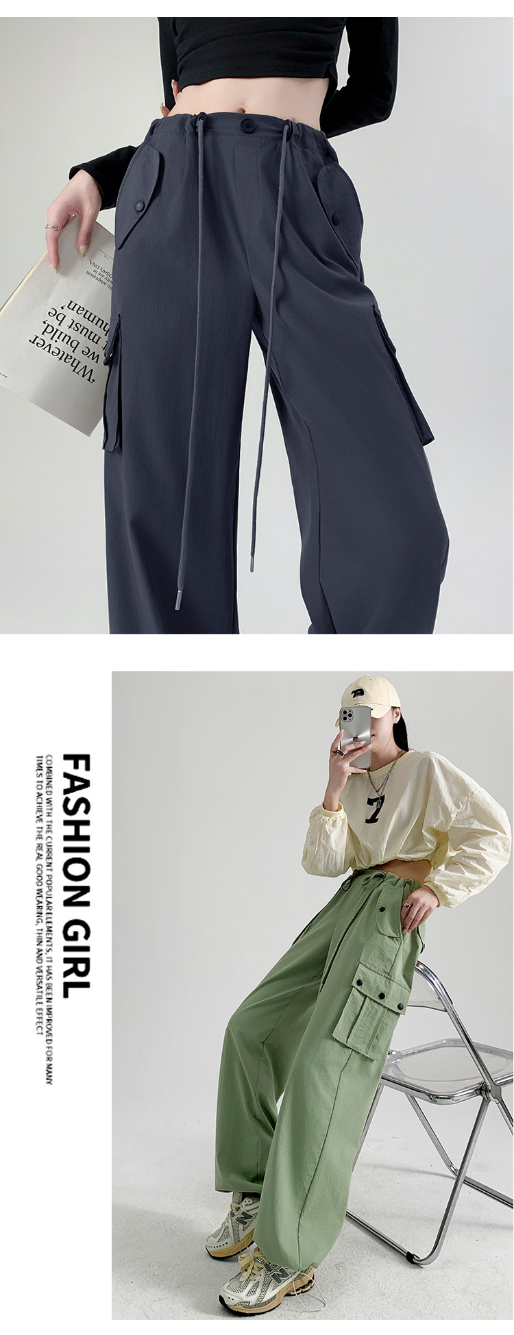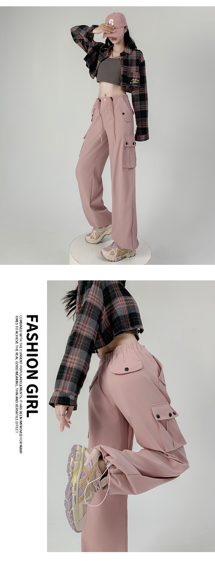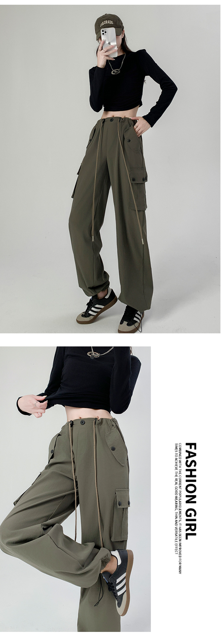 工装裤女装裤子女秋季女裤辣妹休闲直筒卫裤显瘦美式宽松运动裤