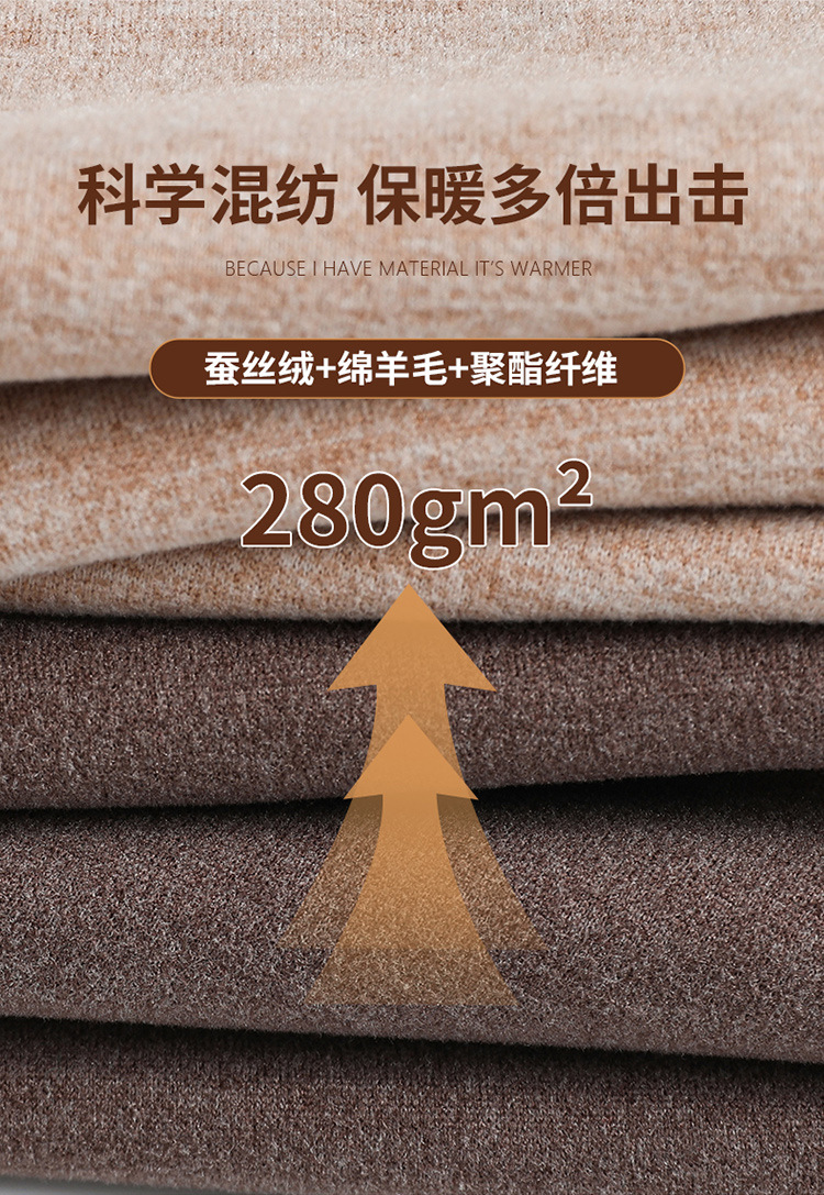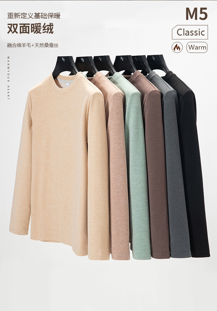 2023年秋季新款男士羊毛蚕丝保暖内衣秋衣冬季发热防寒上衣打底衫