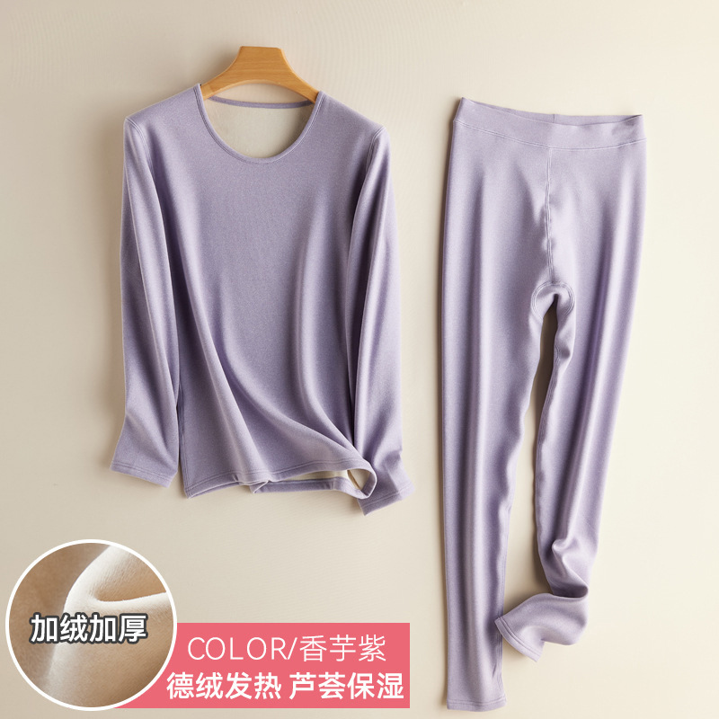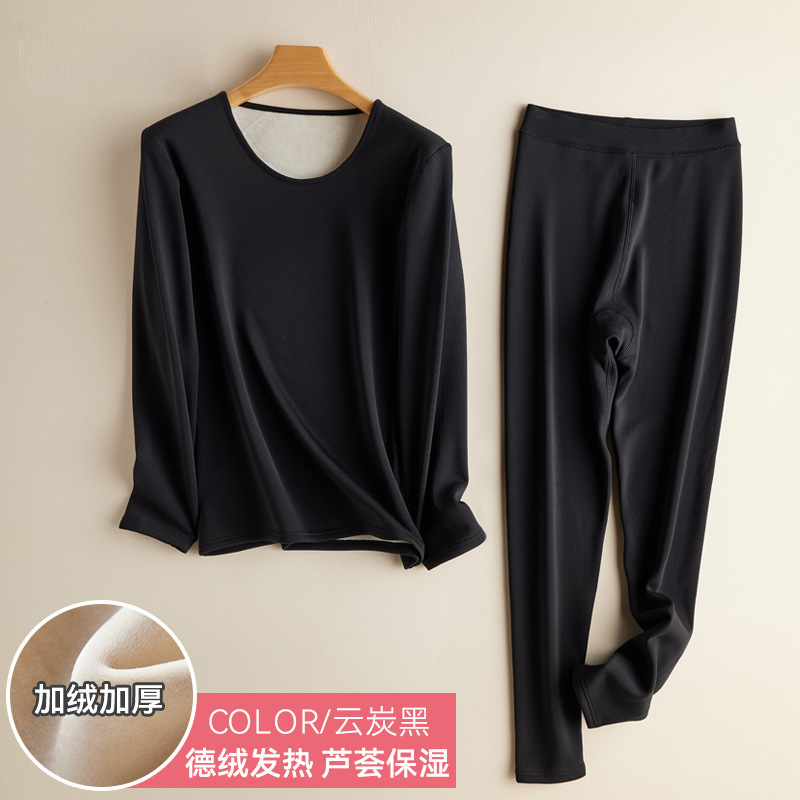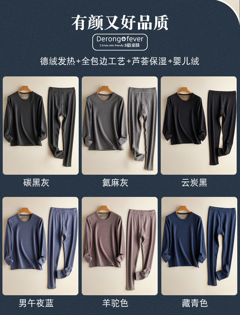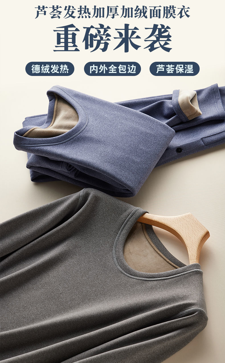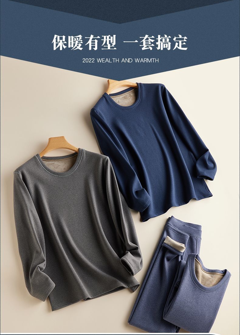 冬季男士加绒保暖内衣套装男圆领加绒加厚大码速热德绒秋衣秋裤